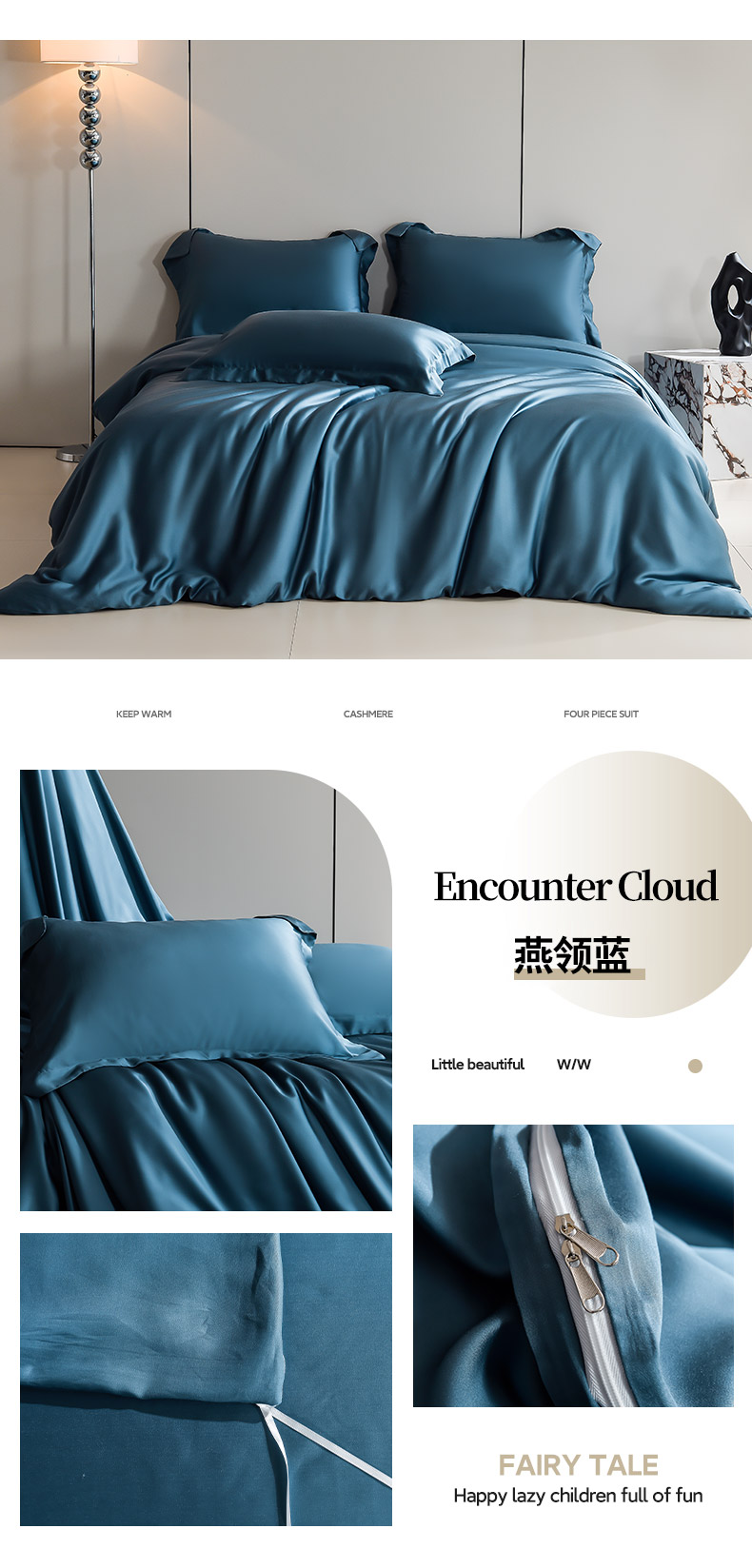 (总)简爱 2026新款水洗真丝夏被四件套,宝石蓝,冰清绿,粉玉,贵族白,孔雀绿,浪漫紫,深空灰,天空蓝,香槟郁,幽心兰