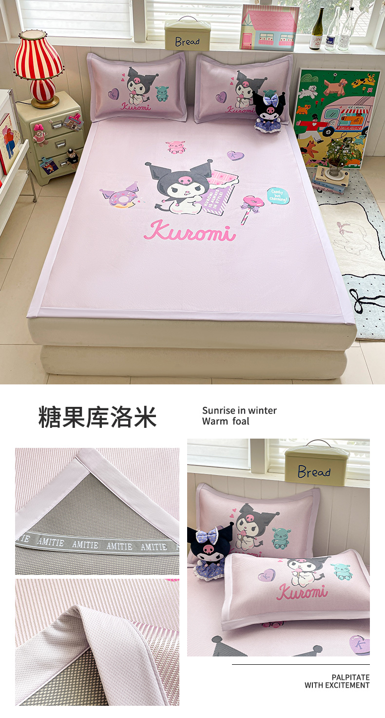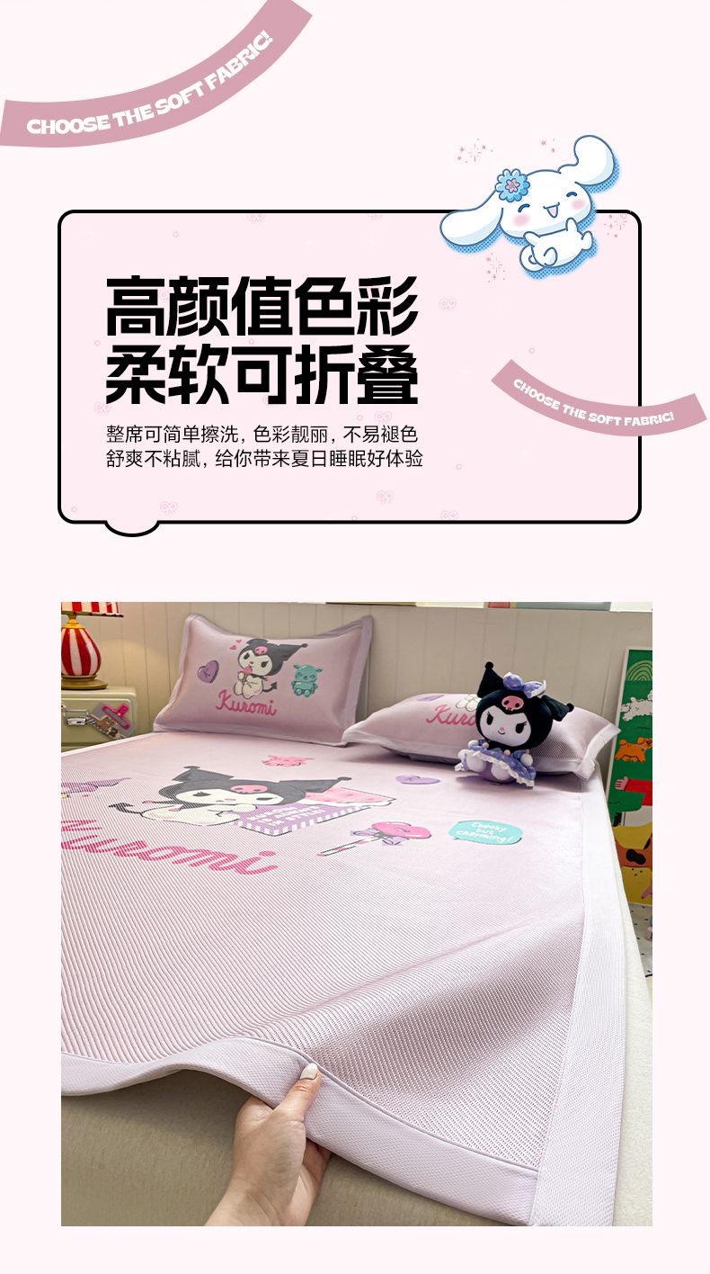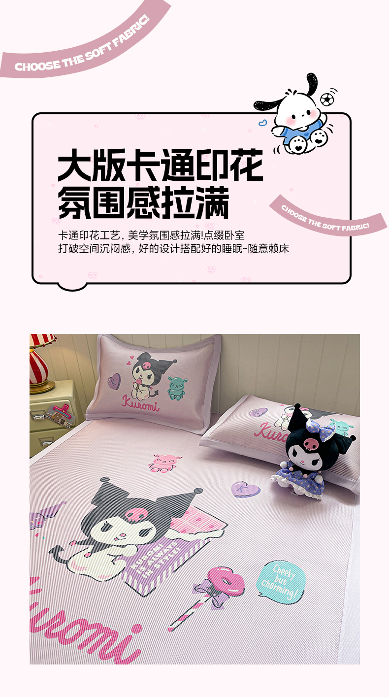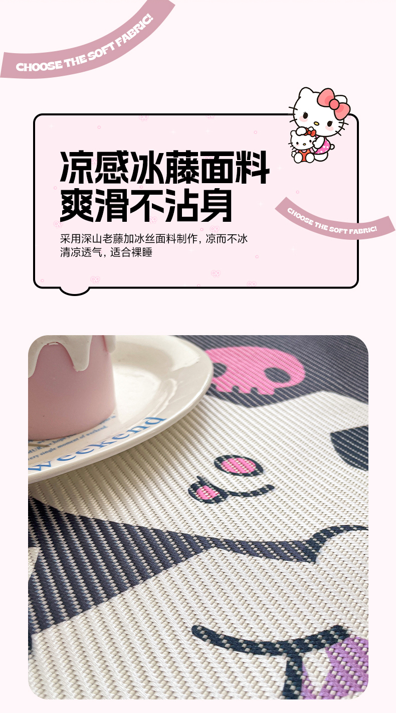 商品名称:蓝邻 2025春夏新款正版三丽鸥600D冰藤大版数码印花凉席-场景二 糖果库洛米