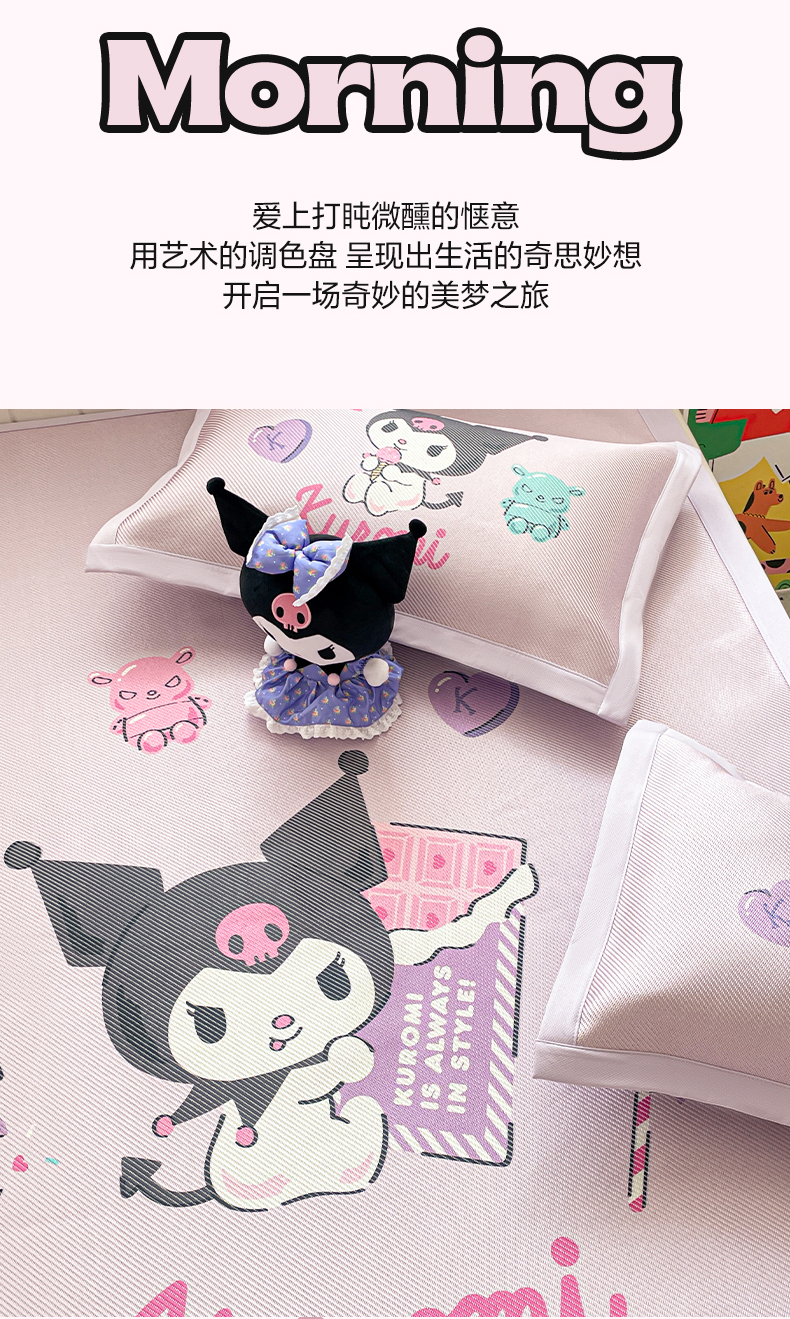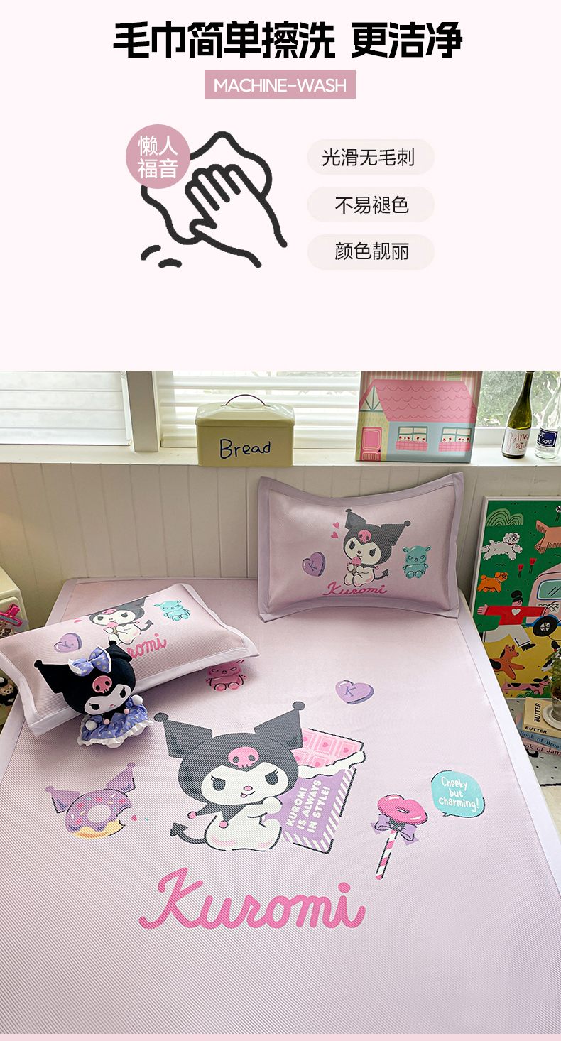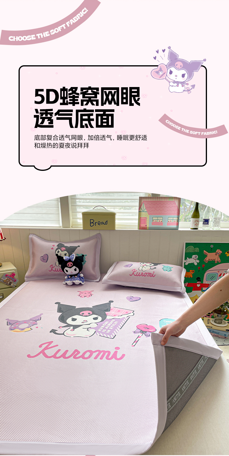 商品名称:蓝邻 2025春夏新款正版三丽鸥600D冰藤大版数码印花凉席-场景二 糖果库洛米