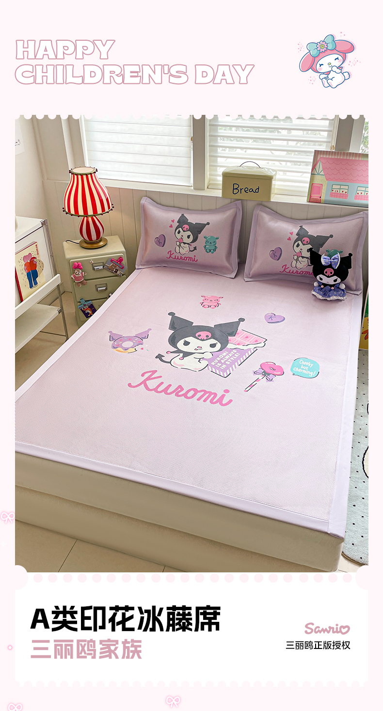 蓝邻 2025春夏新款正版三丽鸥600D冰藤大版数码印花凉席-场景二 糖果库洛米