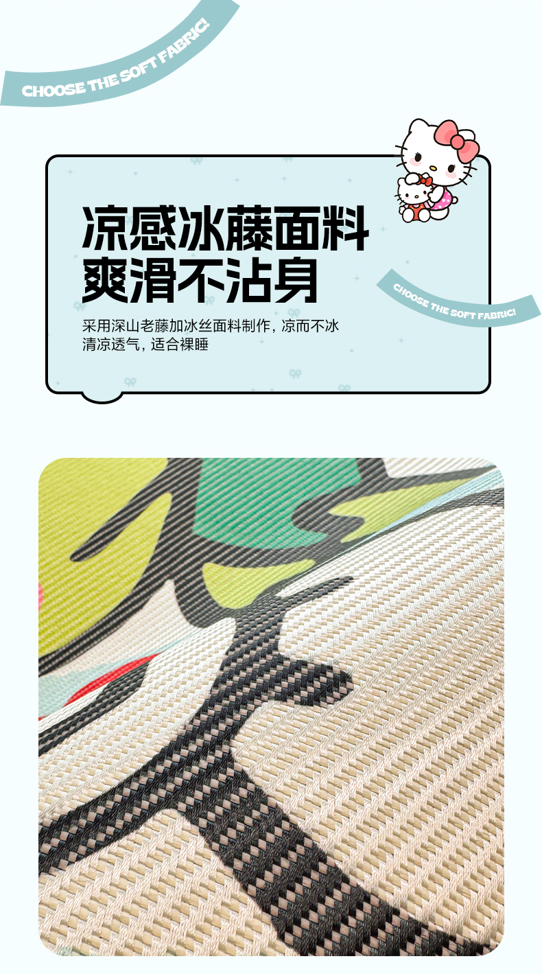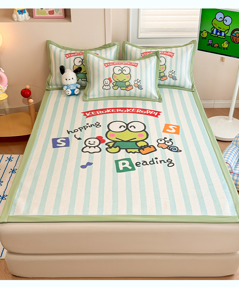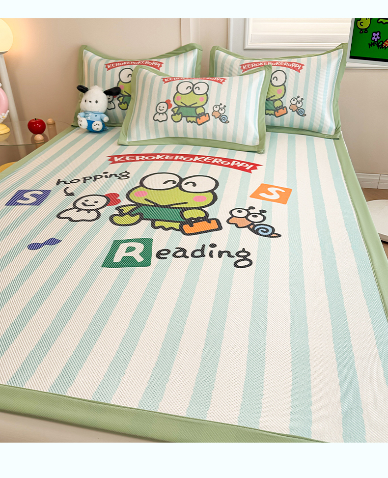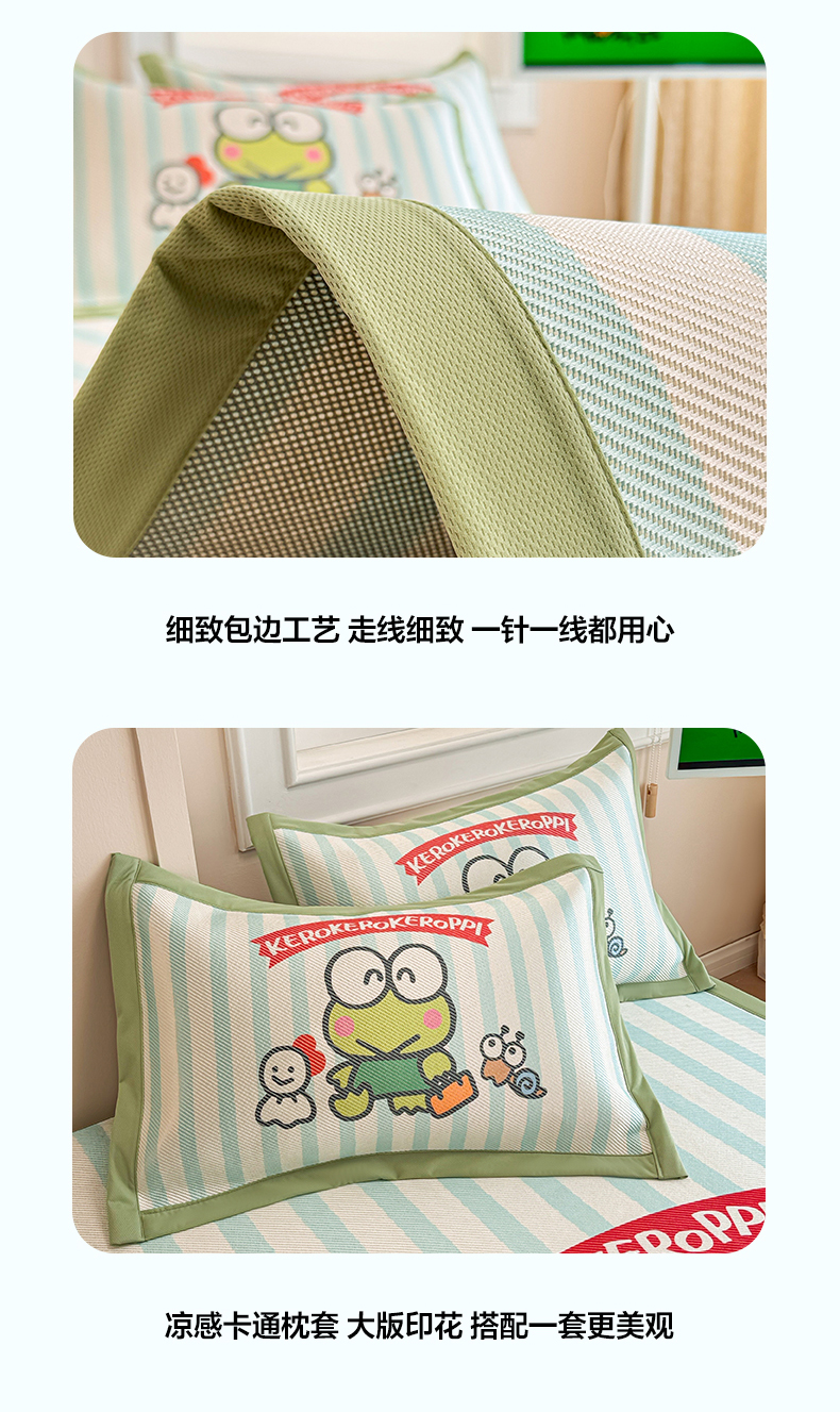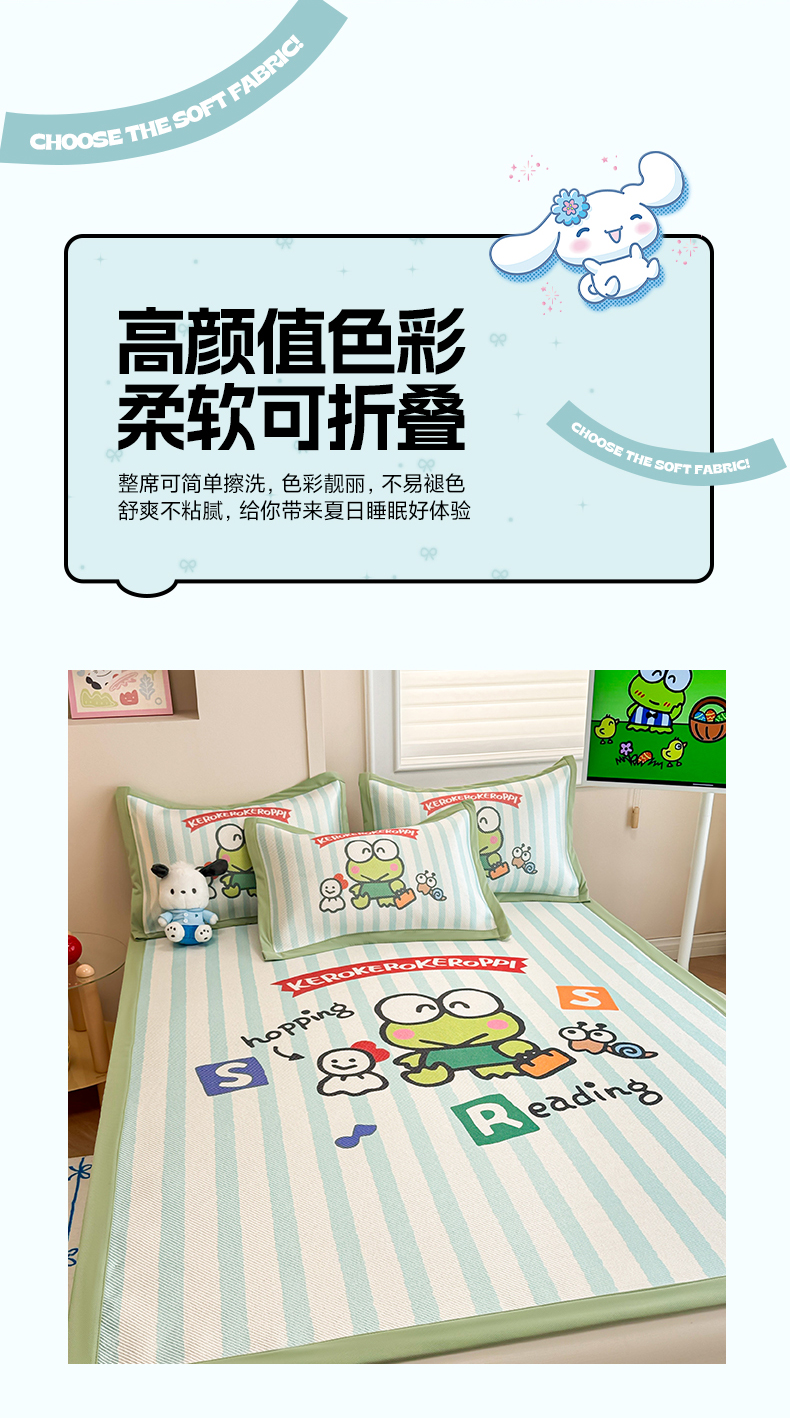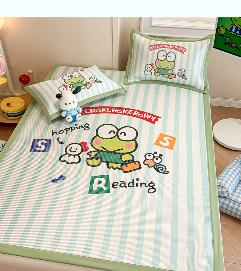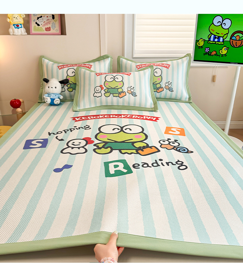 商品名称:蓝邻 2025春夏新款正版三丽鸥600D冰藤大版数码印花凉席-场景一 三眼蛙