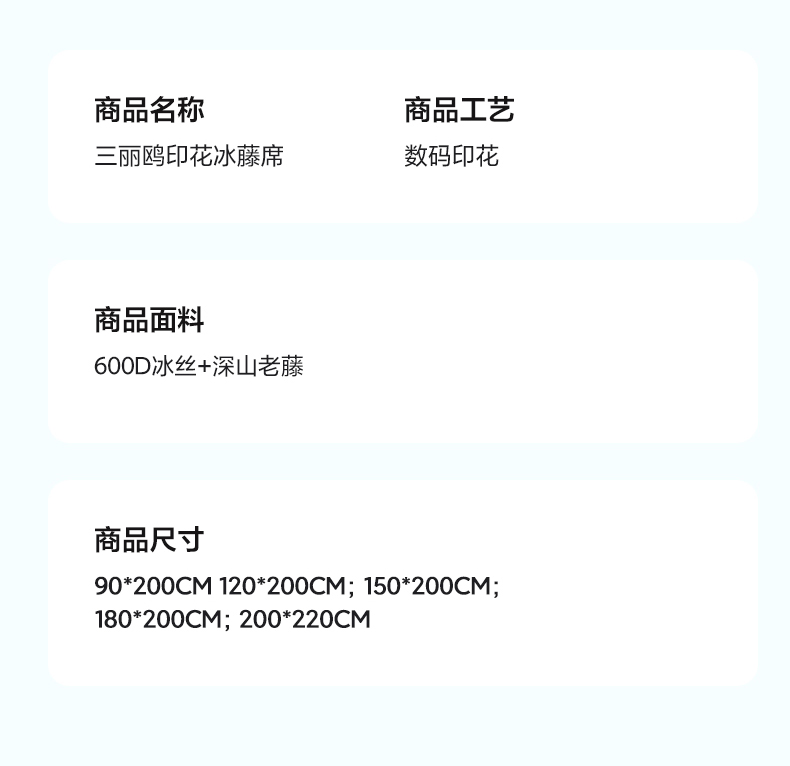 [{"sp_id":11,"sp_name":"\u989c\u8272\u5206\u7c7b","sp_format":2,"sp_list":[{"sp_value_id":640,"sp_value_name":"\u4e09\u773c\u86d9","sp_value_image":{"id":999,"path":"https:\/\/img3.91jf.com\/ghelp\/2025\/20250410\/a6b3abfa-ead2-4544-997d-d4f6360aaad020250410113457259.jpg_30_30.jpg"},"sp_value_video":{"id":0,"img":"","path":"","time":0,"download_num":0,"play_num":0},"price":"70.00","storage":500,"weight":"1.600","is_check_weight":0,"plus_price":"","sp_sort":9}]},{"sp_id":29,"sp_name":"\u9002\u7528\u5e8a\u5c3a\u5bf8","sp_format":1,"sp_list":[{"sp_value_id":353,"sp_value_name":" 0.9m\u51c9\u5e2d\u6b3e\u4e24\u4ef6\u5957","sp_value_image":{"id":0,"path":""},"sp_value_video":{"id":0,"img":"","path":"","time":0,"download_num":0,"play_num":0},"price":"70.00","storage":100,"weight":"1.600","is_check_weight":0,"plus_price":"","sp_sort":5},{"sp_value_id":354,"sp_value_name":"1.2m\u51c9\u5e2d\u6b3e\u4e24\u4ef6\u5957","sp_value_image":{"id":0,"path":""},"sp_value_video":{"id":0,"img":"","path":"","time":0,"download_num":0,"play_num":0},"price":"80.00","storage":100,"weight":"1.800","is_check_weight":0,"plus_price":"","sp_sort":6},{"sp_value_id":355,"sp_value_name":"1.5m\u51c9\u5e2d\u6b3e\u4e09\u4ef6\u5957","sp_value_image":{"id":0,"path":""},"sp_value_video":{"id":0,"img":"","path":"","time":0,"download_num":0,"play_num":0},"price":"100.00","storage":100,"weight":"2.000","is_check_weight":0,"plus_price":"","sp_sort":7},{"sp_value_id":356,"sp_value_name":"1.8m\u51c9\u5e2d\u6b3e\u4e09\u4ef6\u5957","sp_value_image":{"id":0,"path":""},"sp_value_video":{"id":0,"img":"","path":"","time":0,"download_num":0,"play_num":0},"price":"110.00","storage":100,"weight":"2.200","is_check_weight":0,"plus_price":"","sp_sort":8},{"sp_value_id":357,"sp_value_name":"2.0m\u51c9\u5e2d\u6b3e\u4e09\u4ef6\u5957","sp_value_image":{"id":0,"path":""},"sp_value_video":{"id":0,"img":"","path":"","time":0,"download_num":0,"play_num":0},"price":"120.00","storage":100,"weight":"2.400","is_check_weight":0,"plus_price":"","sp_sort":9}]}]