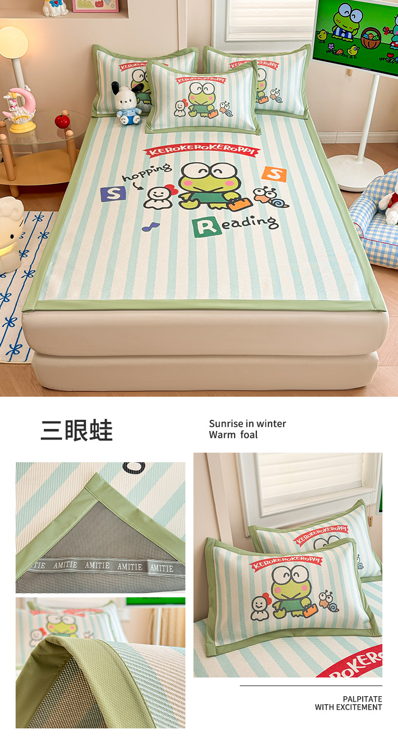 蓝邻 2025春夏新款正版三丽鸥600D冰藤大版数码印花凉席-场景一 三眼蛙