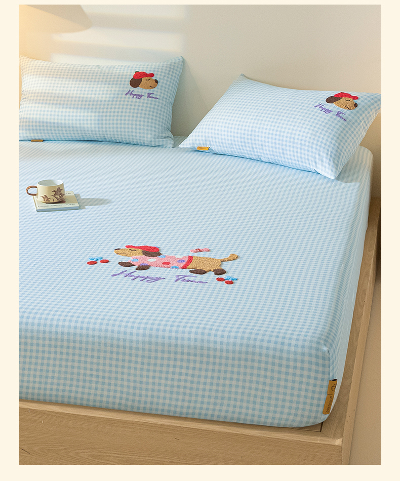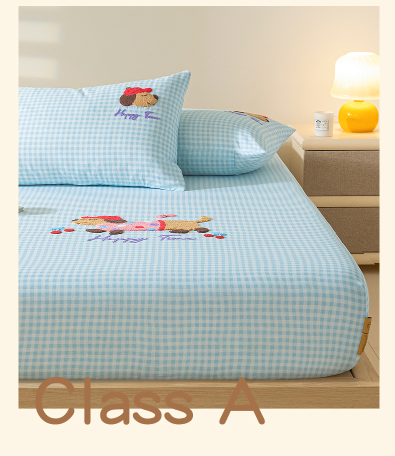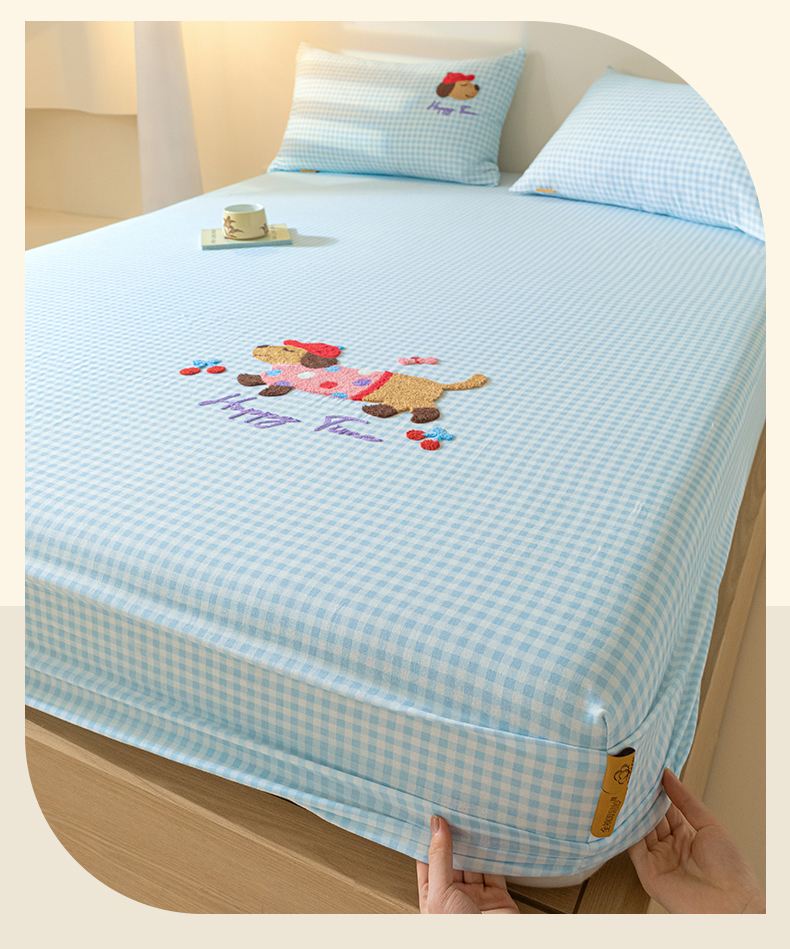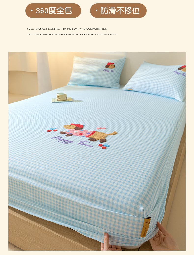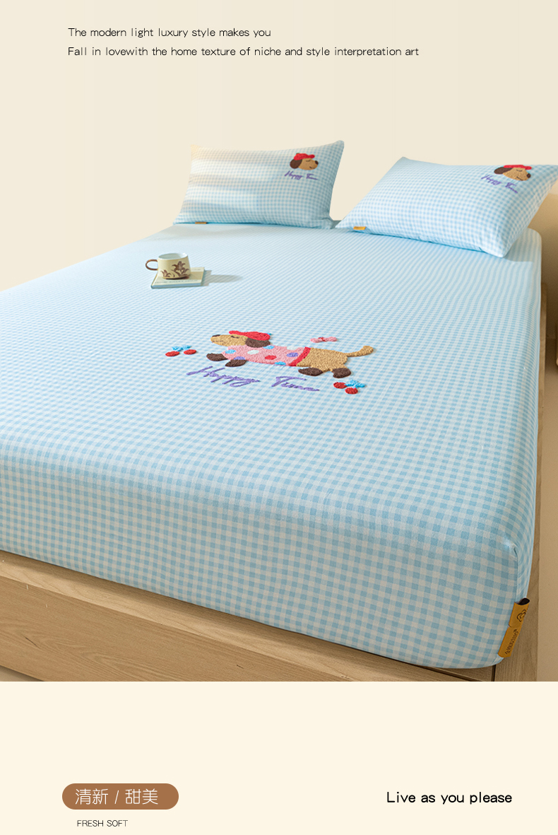 (总)居眠 2025新款A类母婴级卡通毛巾绣天丝床笠,假期小狗-天蓝,卡皮巴拉-水果绿,噗噗猫-肉粉,小树苗-奶昔白,小熊-姜黄