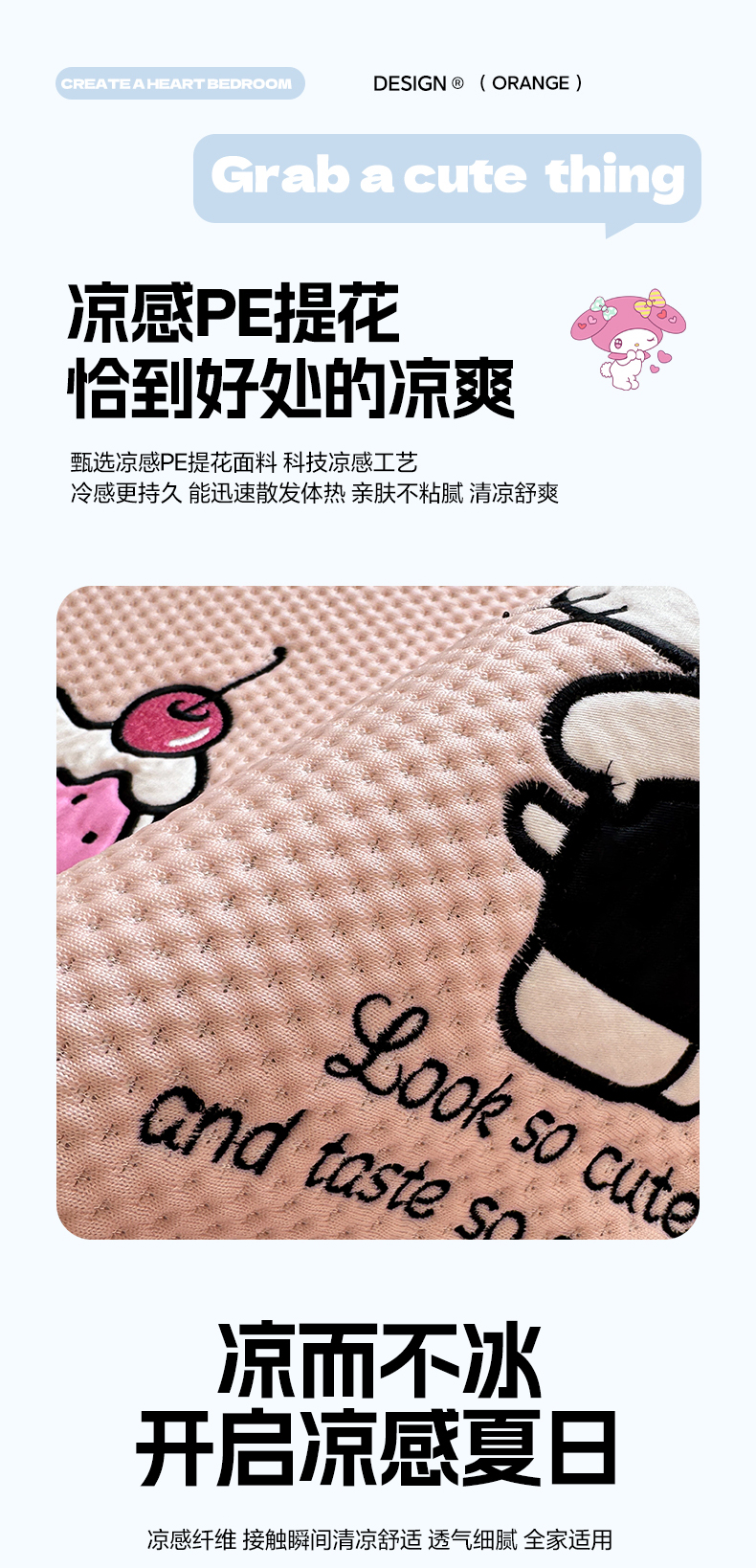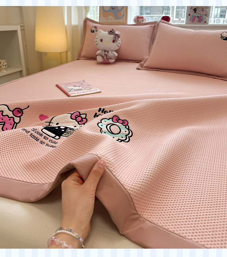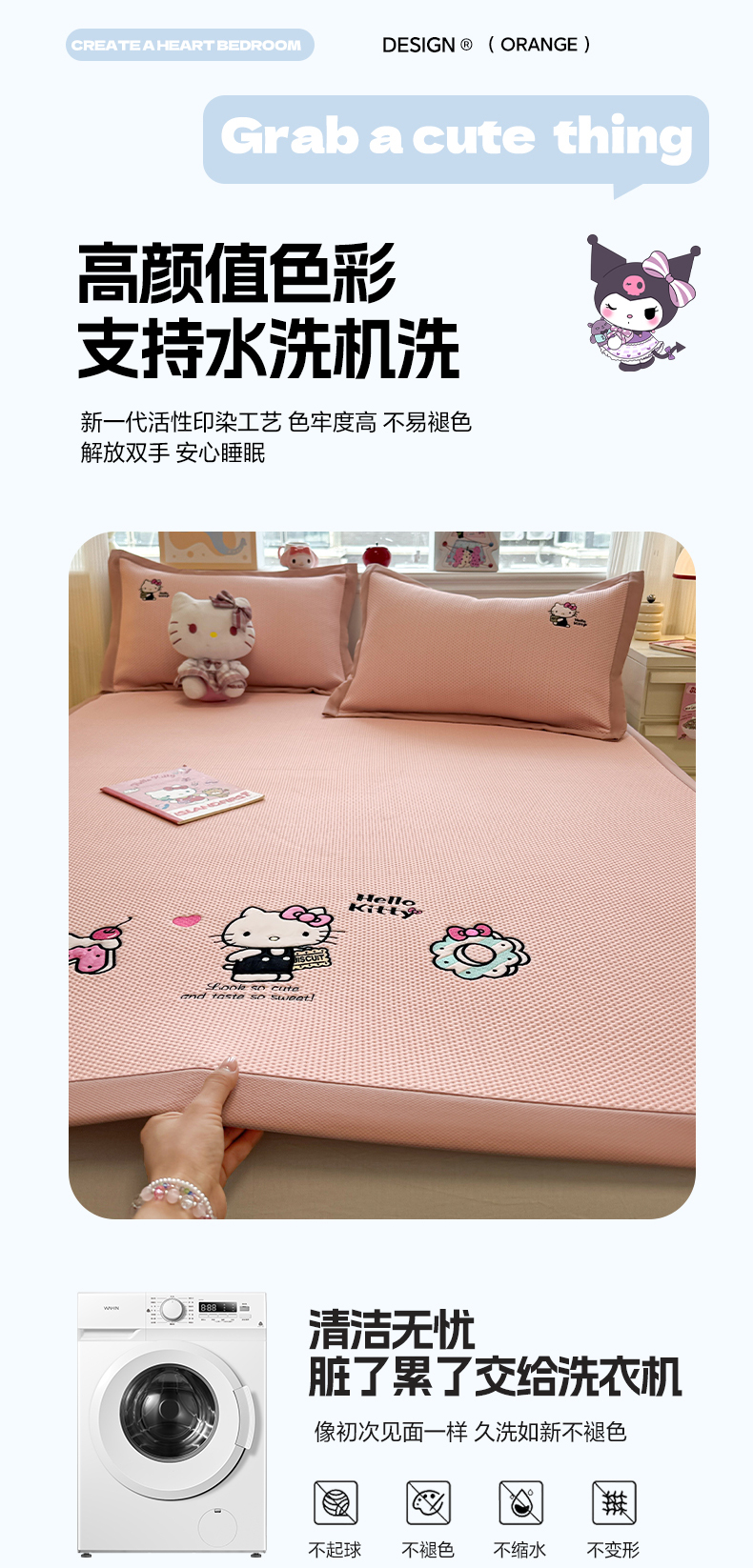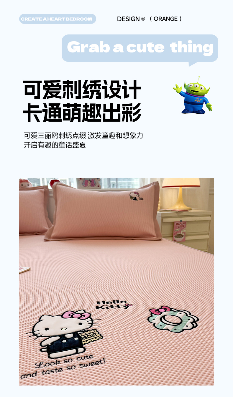 商品名称:蓝邻家纺 2025年新款PE提花正版三丽鸥刺绣凉席系列-场景二 魔法凯蒂猫