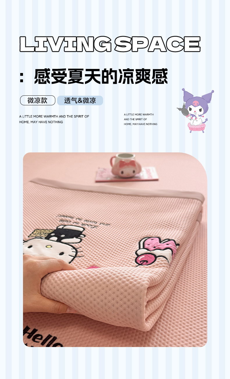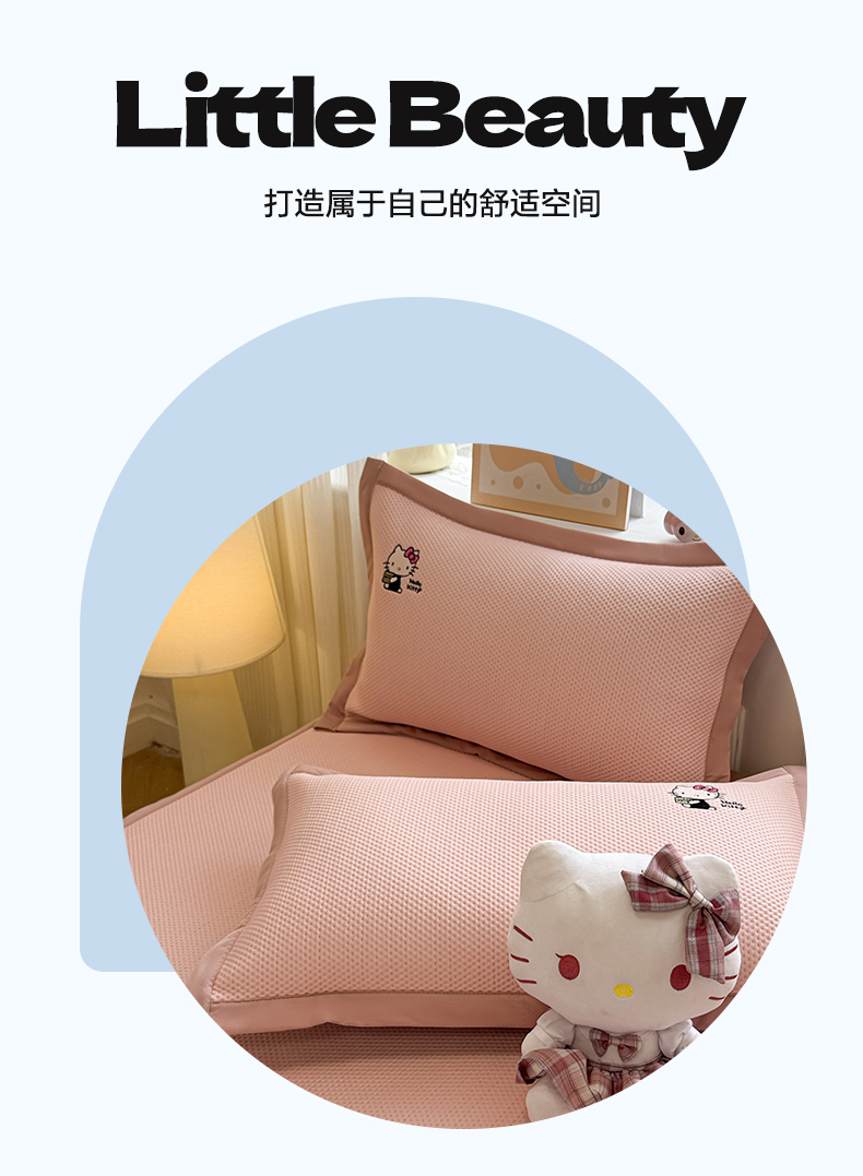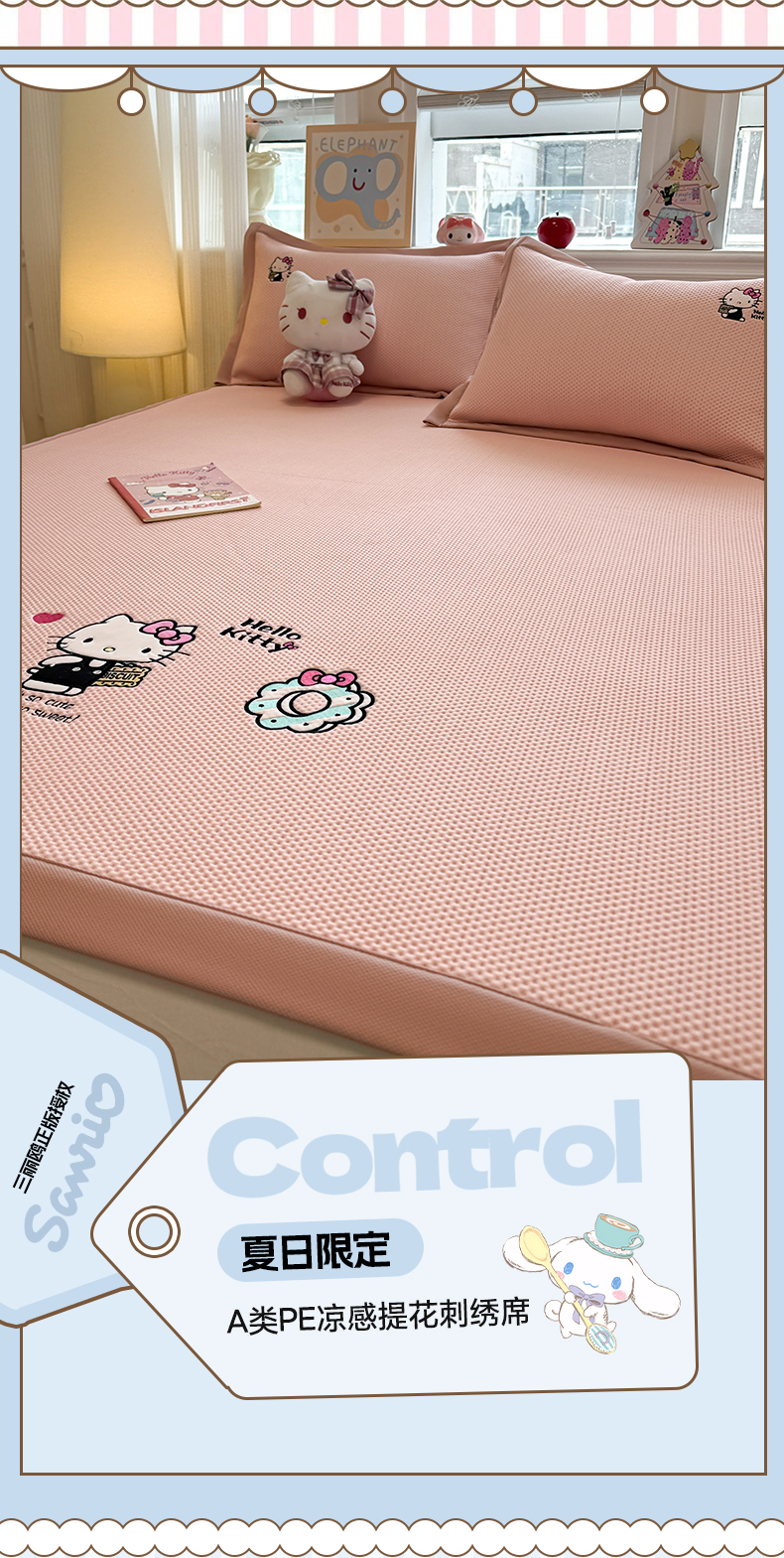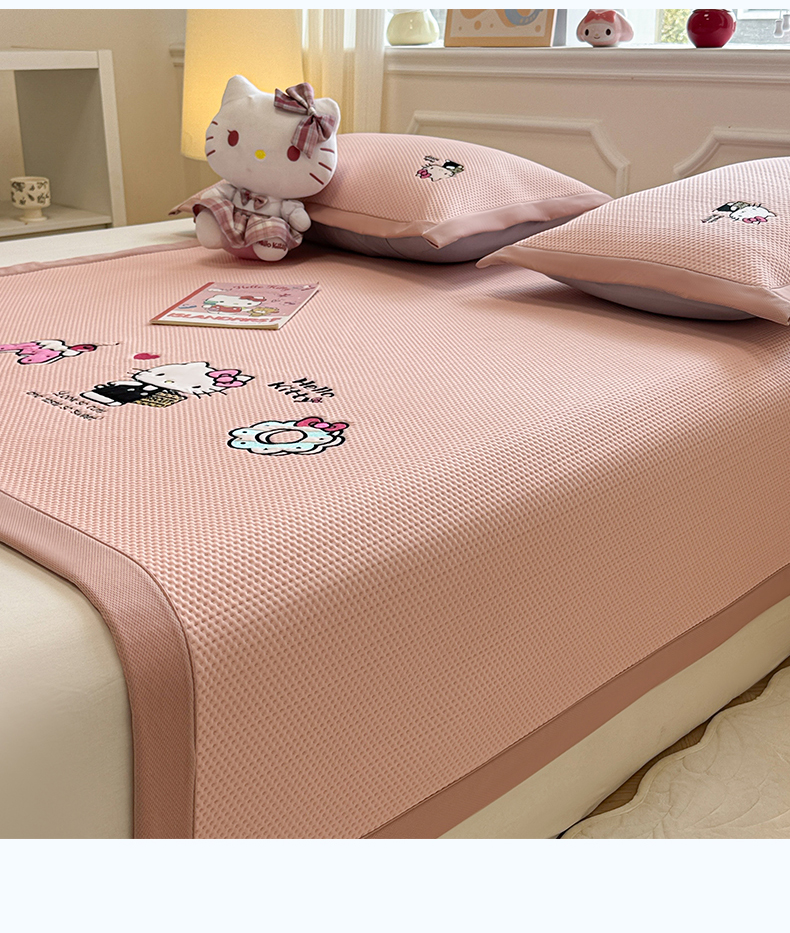 蓝邻家纺 2025年新款PE提花正版三丽鸥刺绣凉席系列-场景二 魔法凯蒂猫