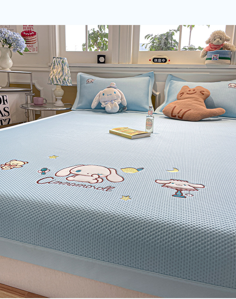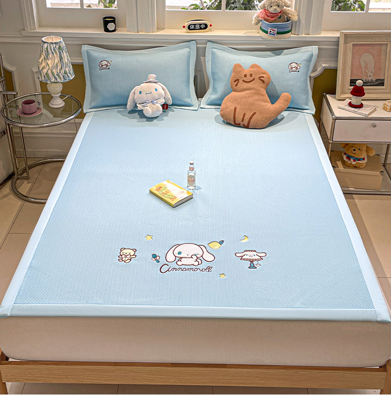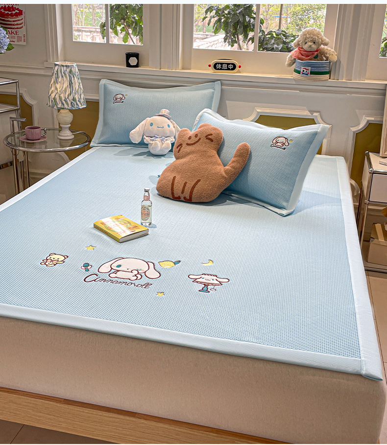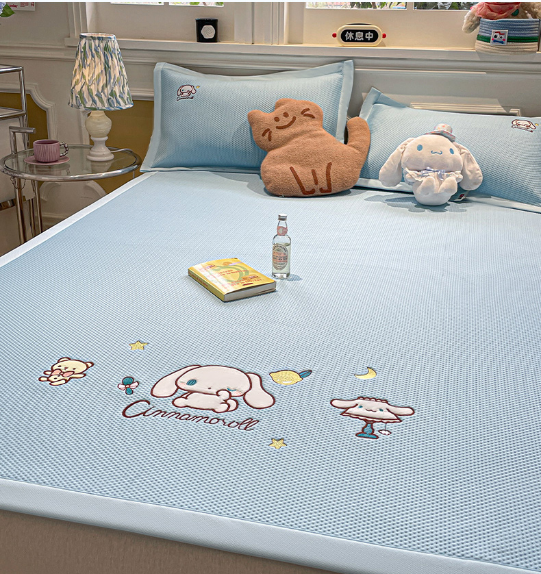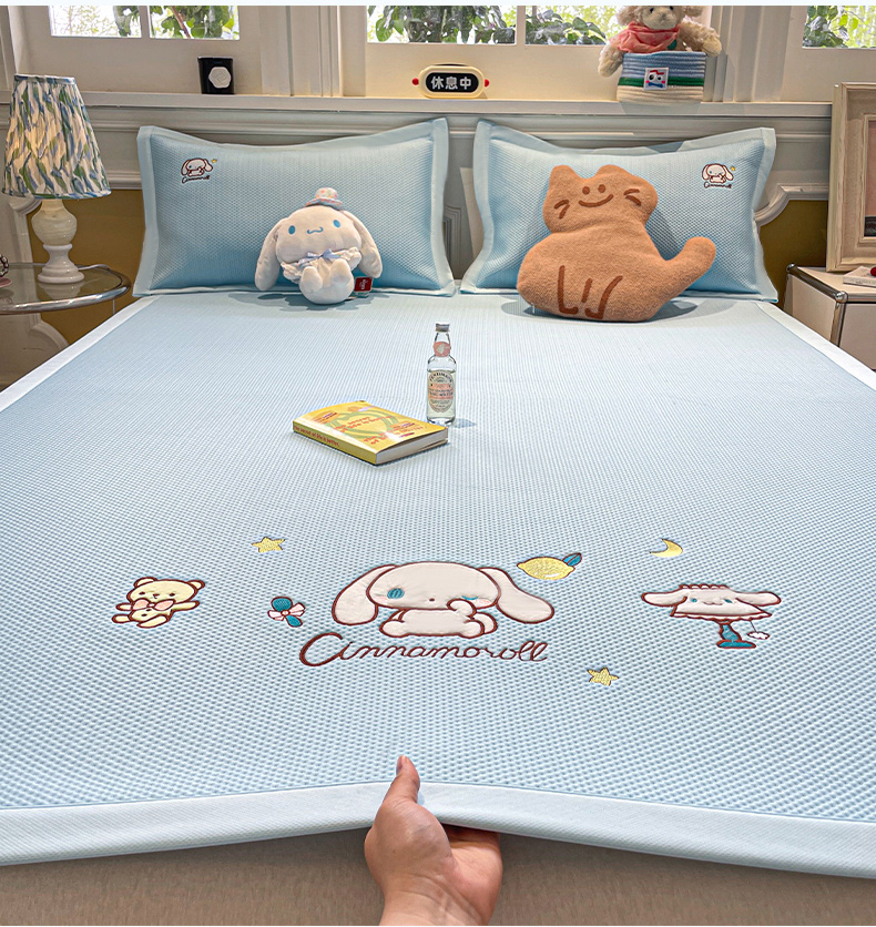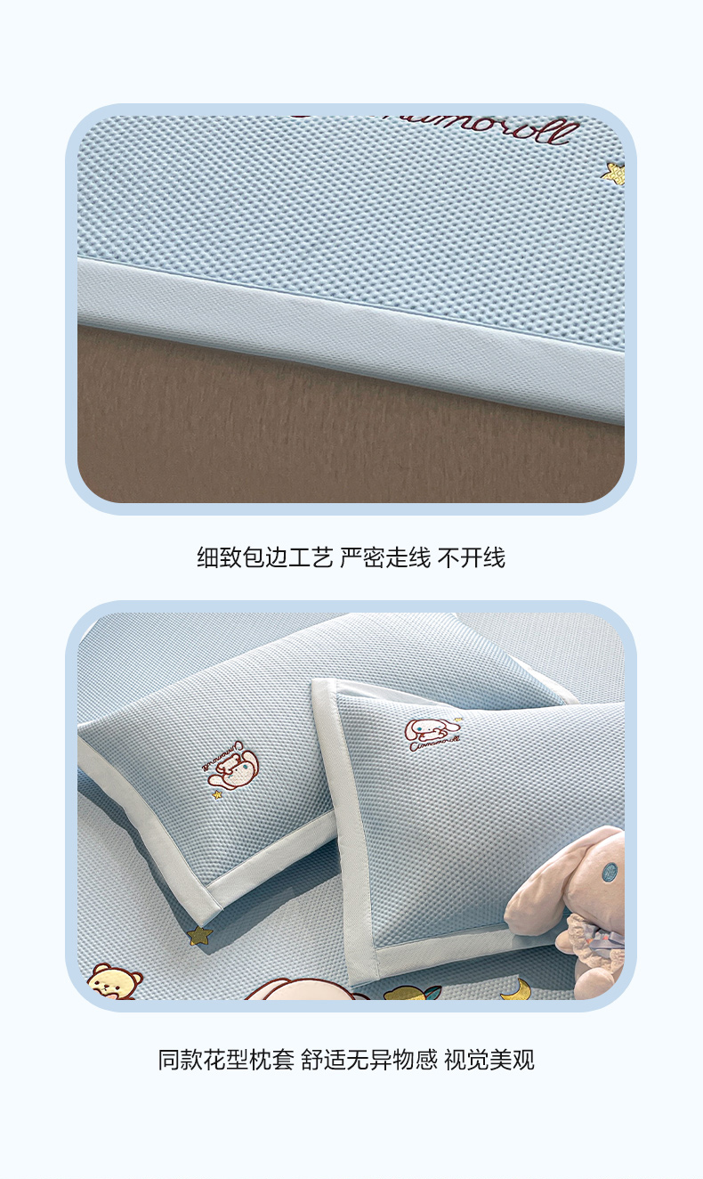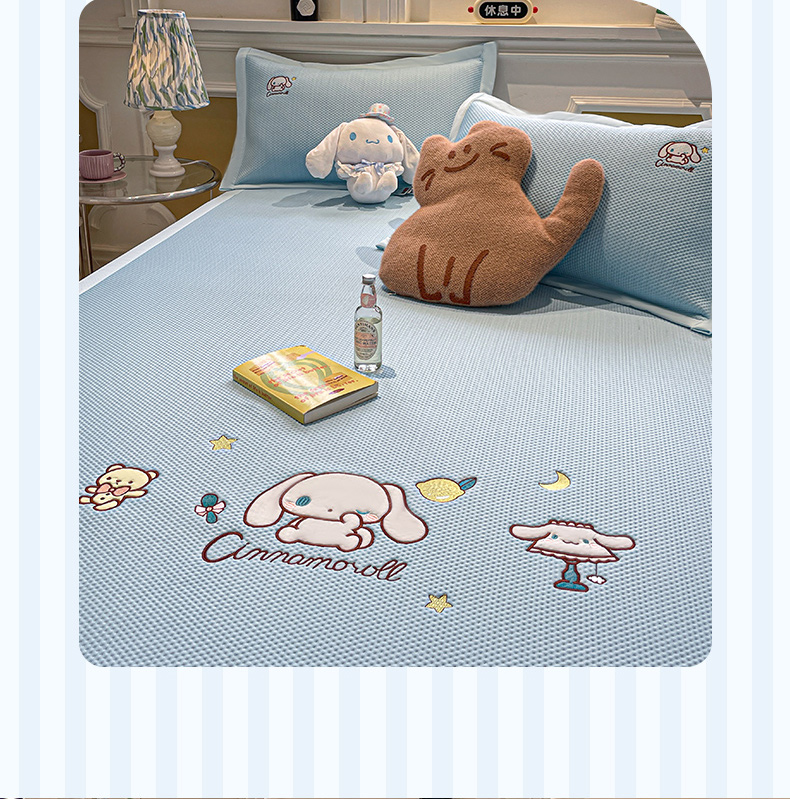 蓝邻家纺 2025年新款PE提花正版三丽鸥刺绣凉席系列-场景一 熊仔玉桂狗