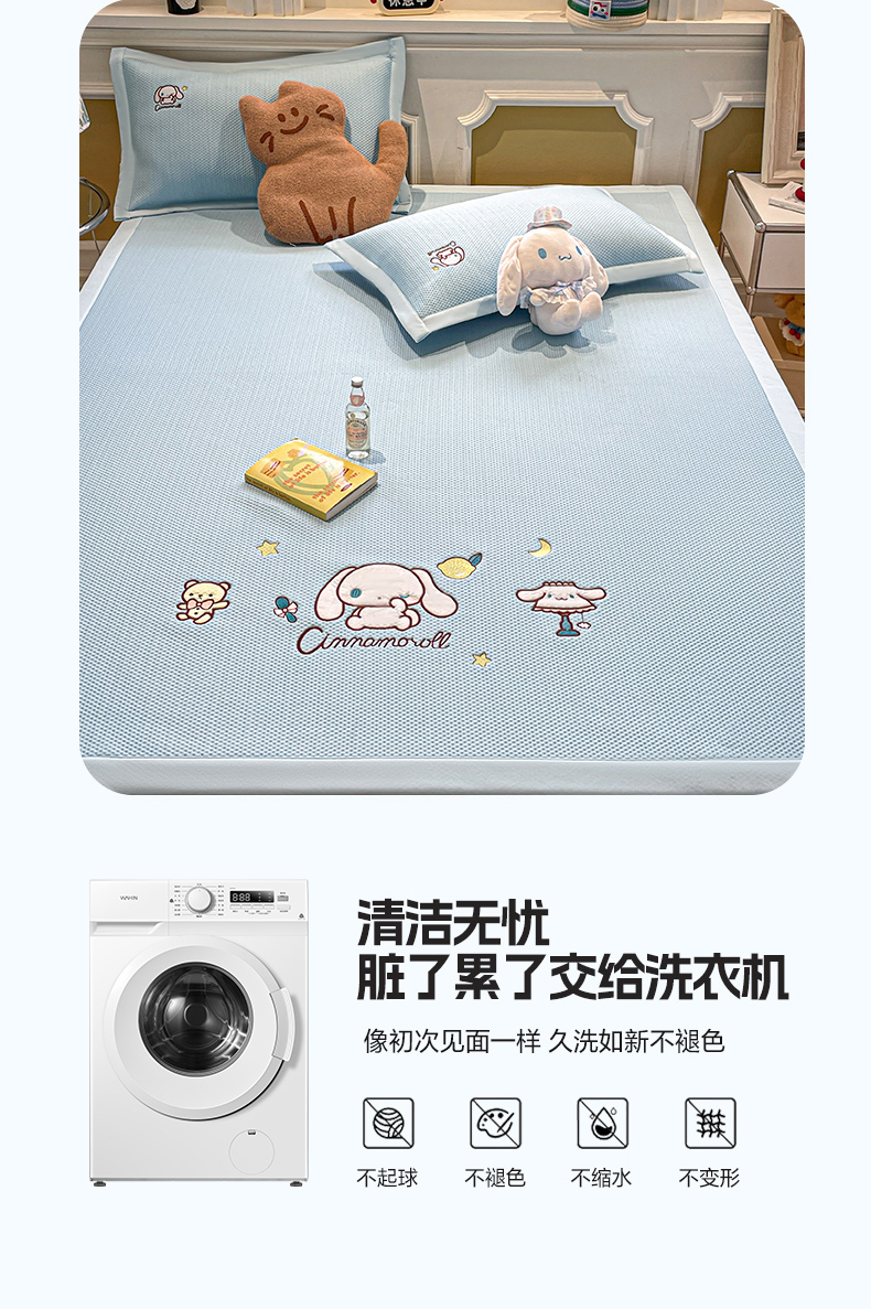 商品名称:蓝邻家纺 2025年新款PE提花正版三丽鸥刺绣凉席系列-场景一 熊仔玉桂狗