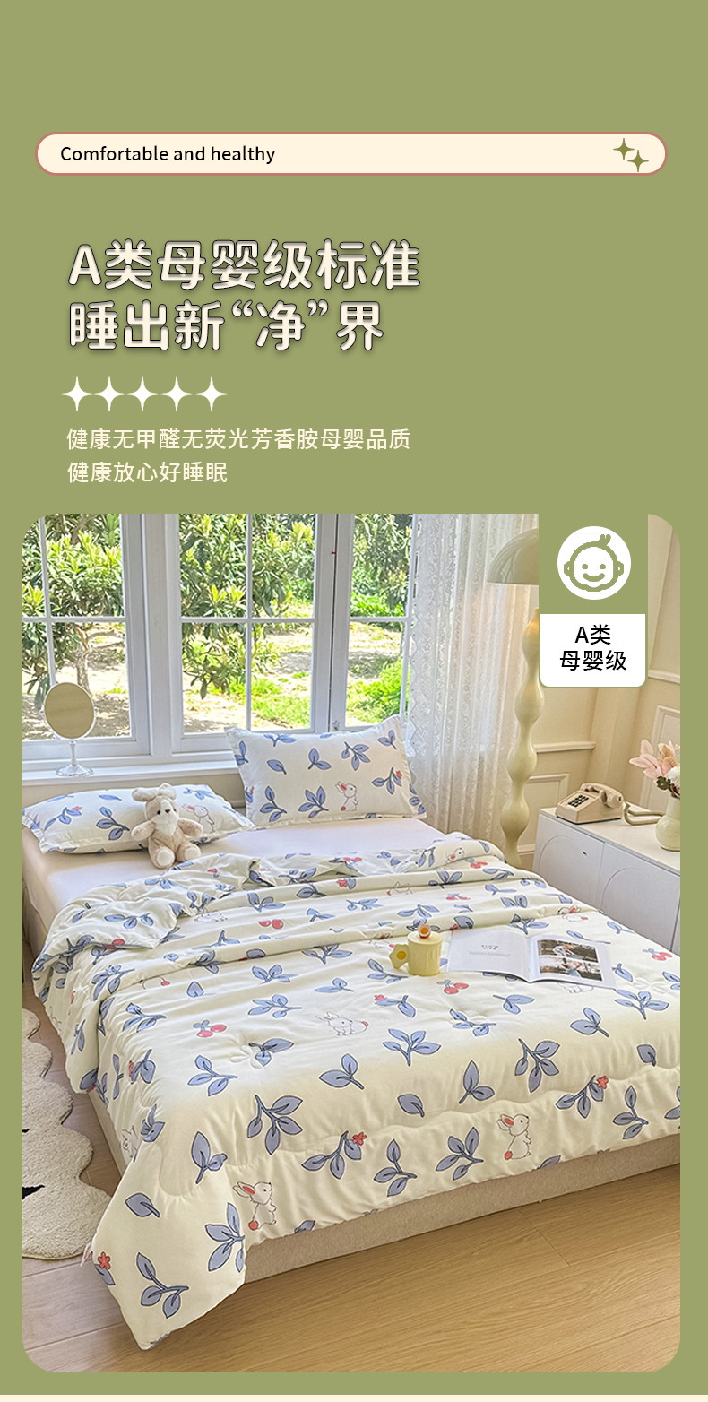 商品名称:友承家纺 2025新款A类母婴级大豆夏被夏凉被空调被 花园小兔