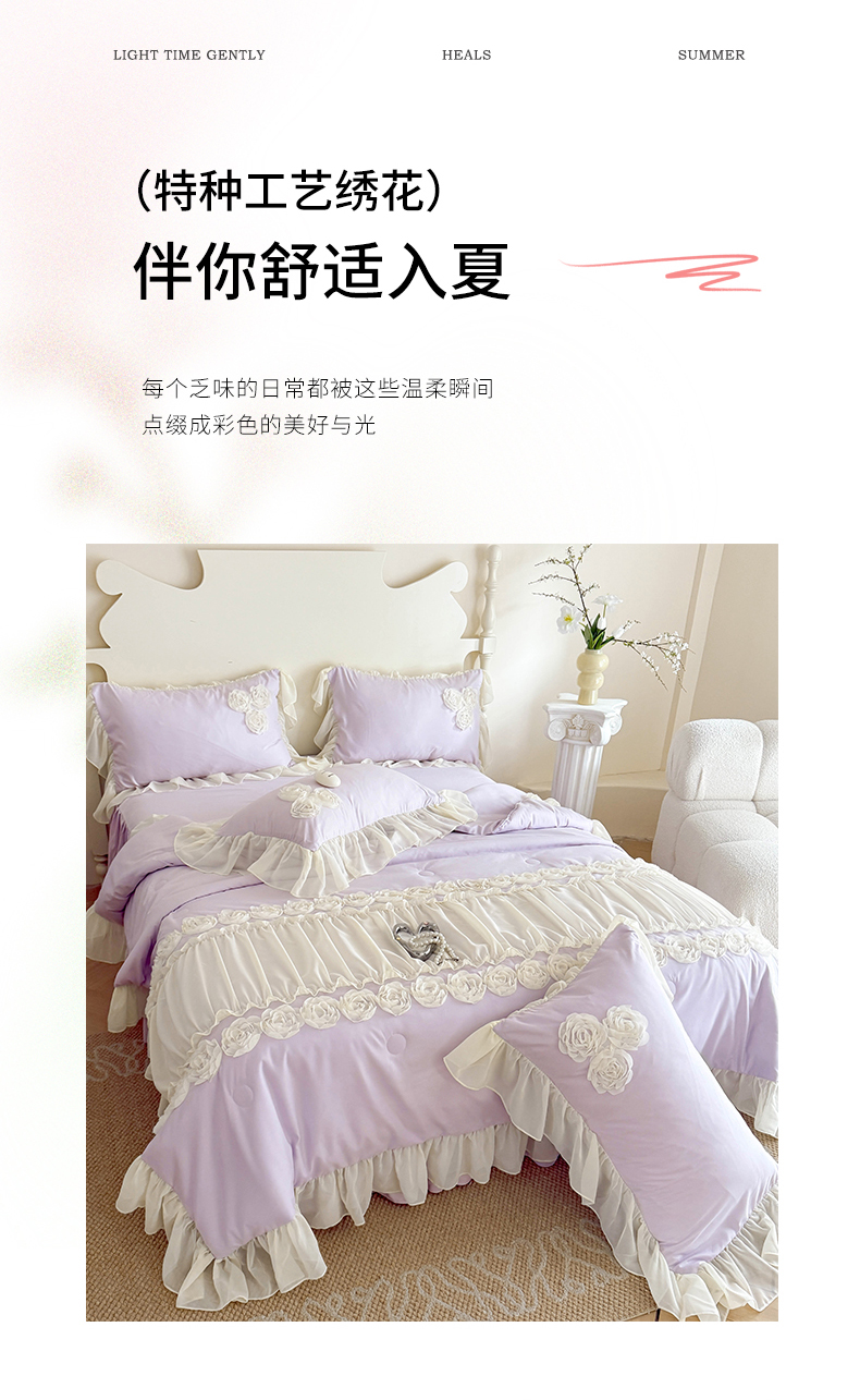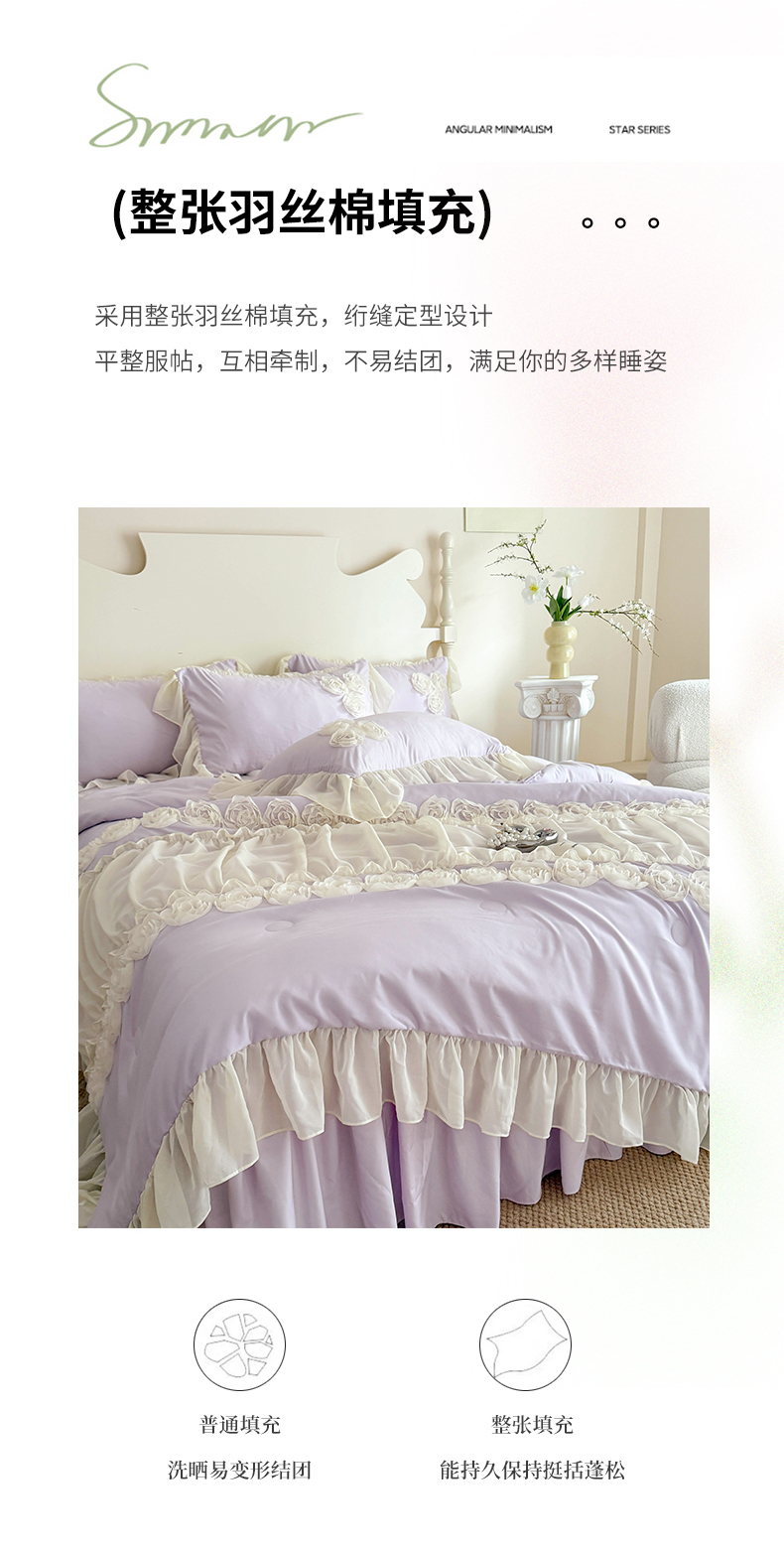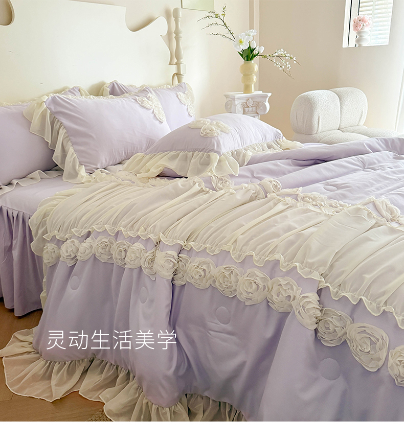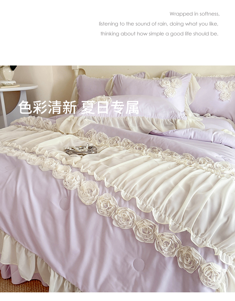 当前位置: 91家纺网 > 商品网购 > 床品套件 > 四件套 > 夏被四件套 > 富盛家纺 2025新款水洗亲肤棉盘花特种刺绣夏被夏凉被空调被床裙款四件套 甜蜜蜜-紫