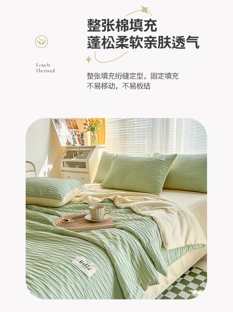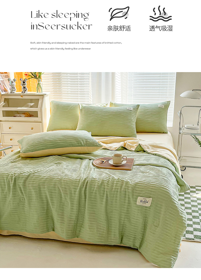 (总)斯卡诺家纺 2025新款直播爆款提花针织泡泡纱夏被四件套夏凉被空调被四件套,白灰色,白桔色,粉色,灰色,兰黄色,蓝色,绿加黄,紫色