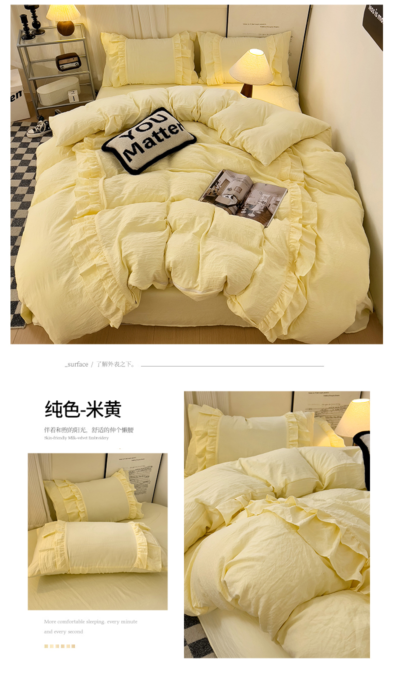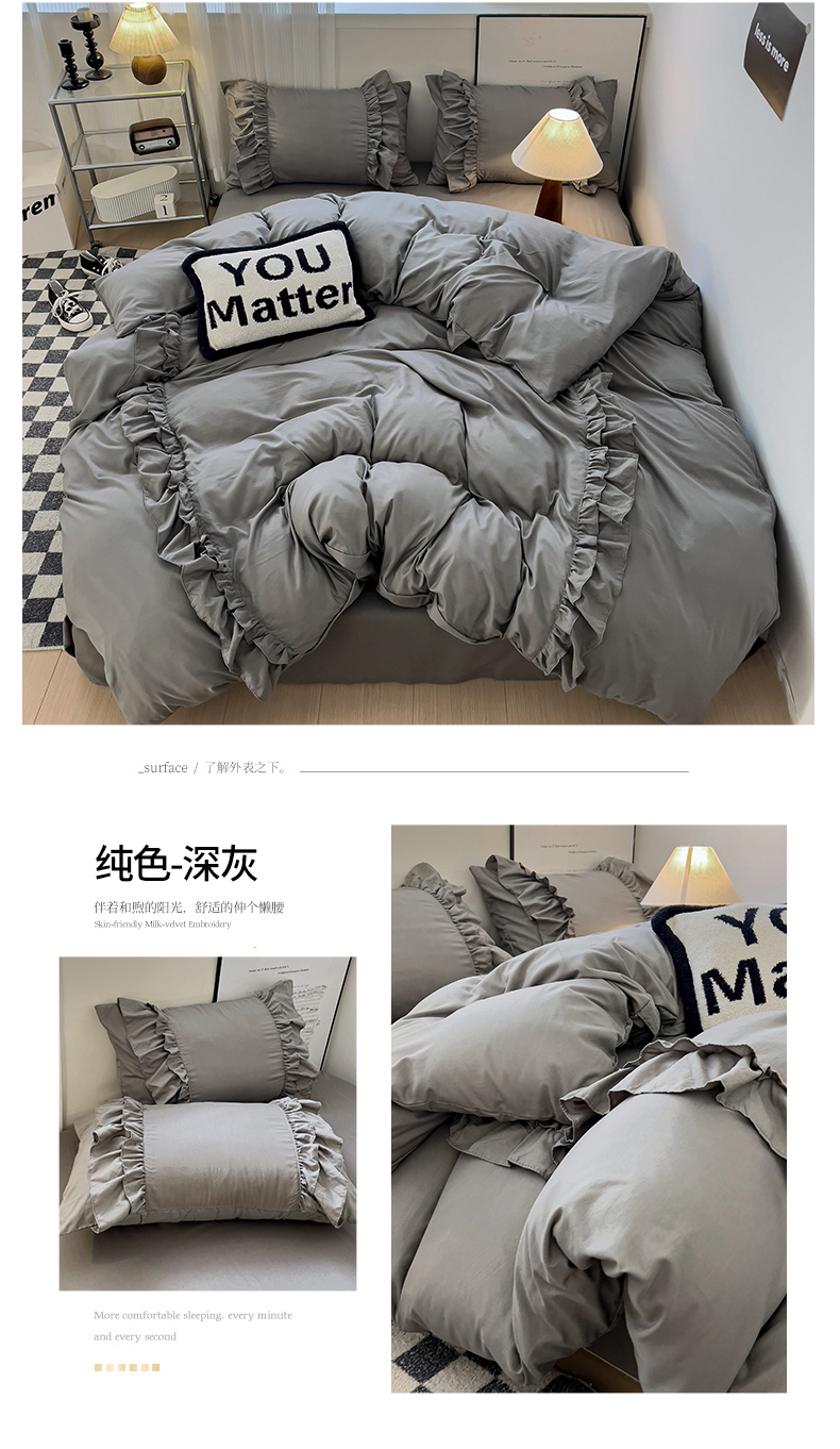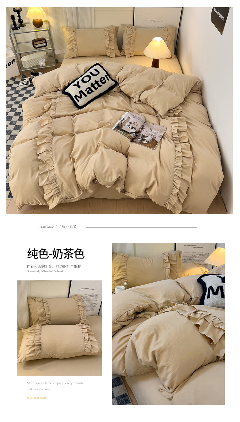 当前位置: 91家纺网 > 商品网购 > 床品套件 > 四件套 > 其它四件套 > 缦绣阁家纺 2025新款韩版花边水洗磨毛花边四件套床单款床笠款床裙款公主风四件套跨境外贸可定制 银灰拼奶茶