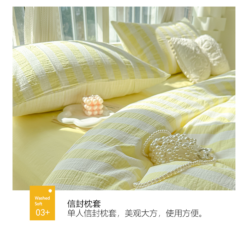 当前位置: 91家纺网 > 商品网购 > 床品套件 > 四件套 > 水洗棉四件套 > 缦绣阁家纺 2025新款水洗棉亲肤云朵条纹四件套小清新条纹床单款床笠款4件套学生宿舍三件套 云朵条纹奶黄