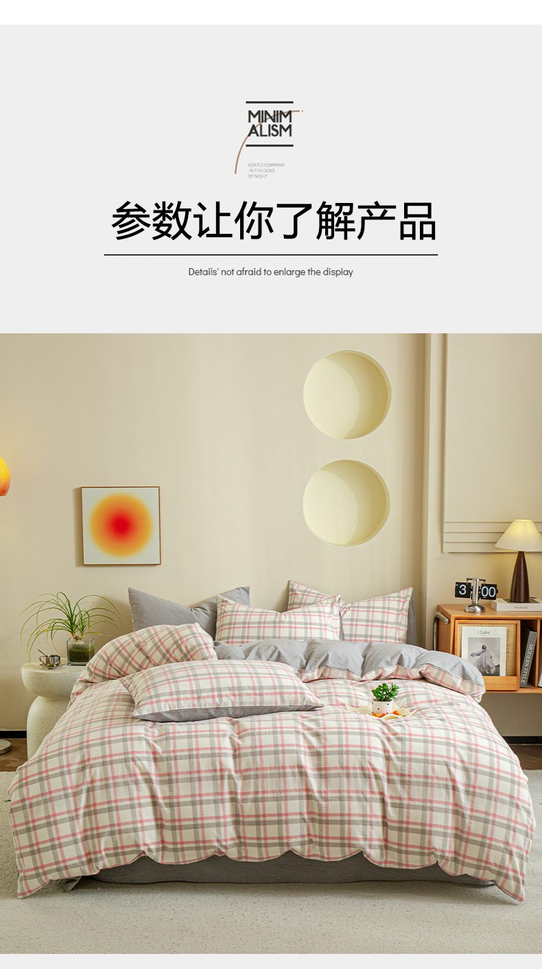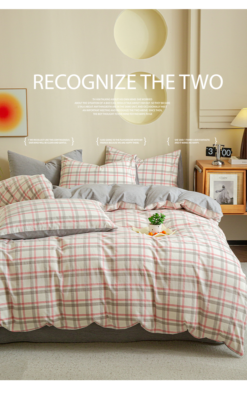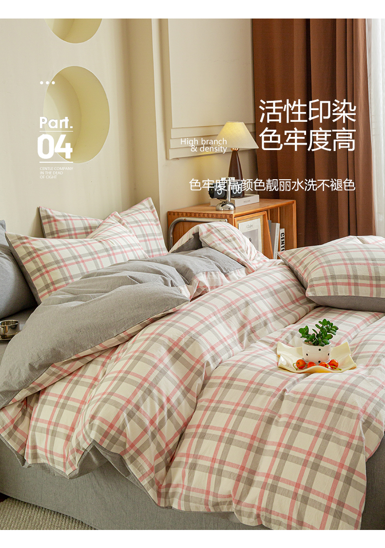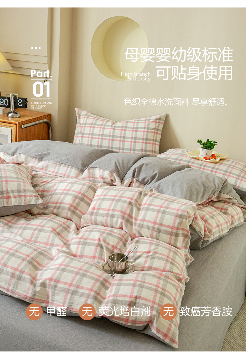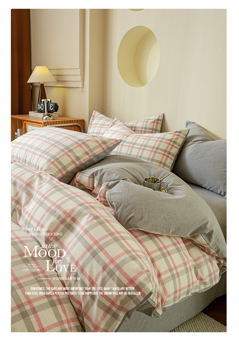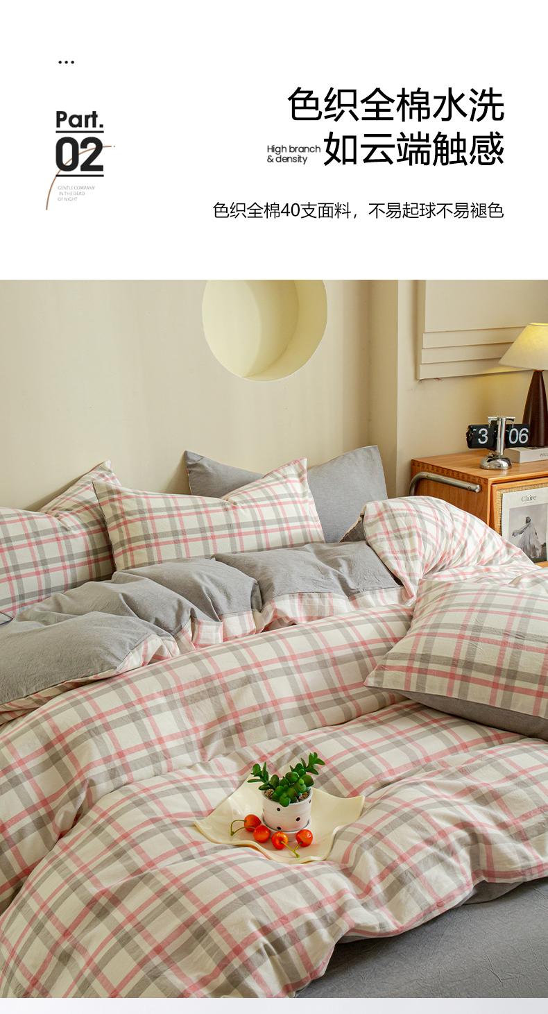 优米家纺 2025新款色织全棉纯棉40支水洗四件套及床单系列-四件套 桃花坞粉+灰