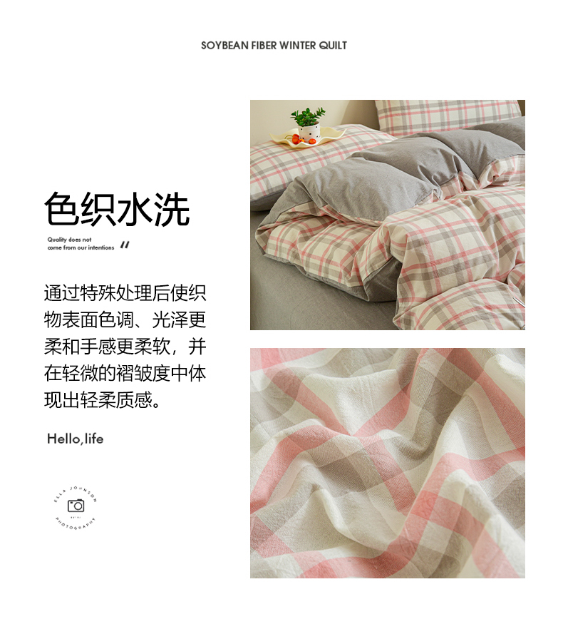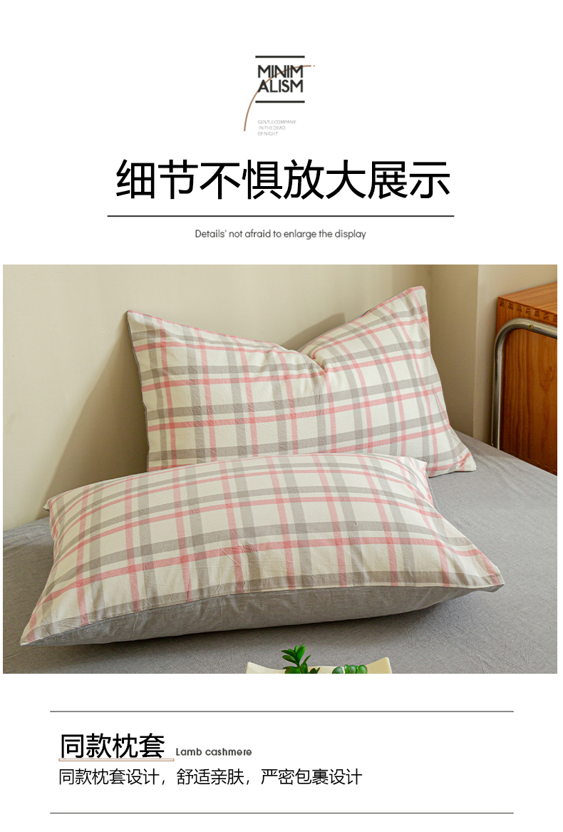 商品名称:优米家纺 2025新款色织全棉纯棉40支水洗四件套及床单系列-四件套 桃花坞粉+灰