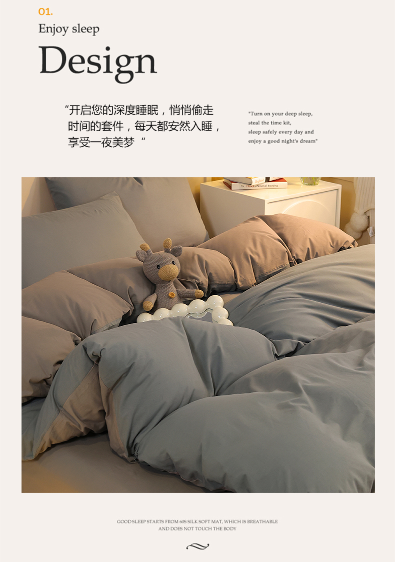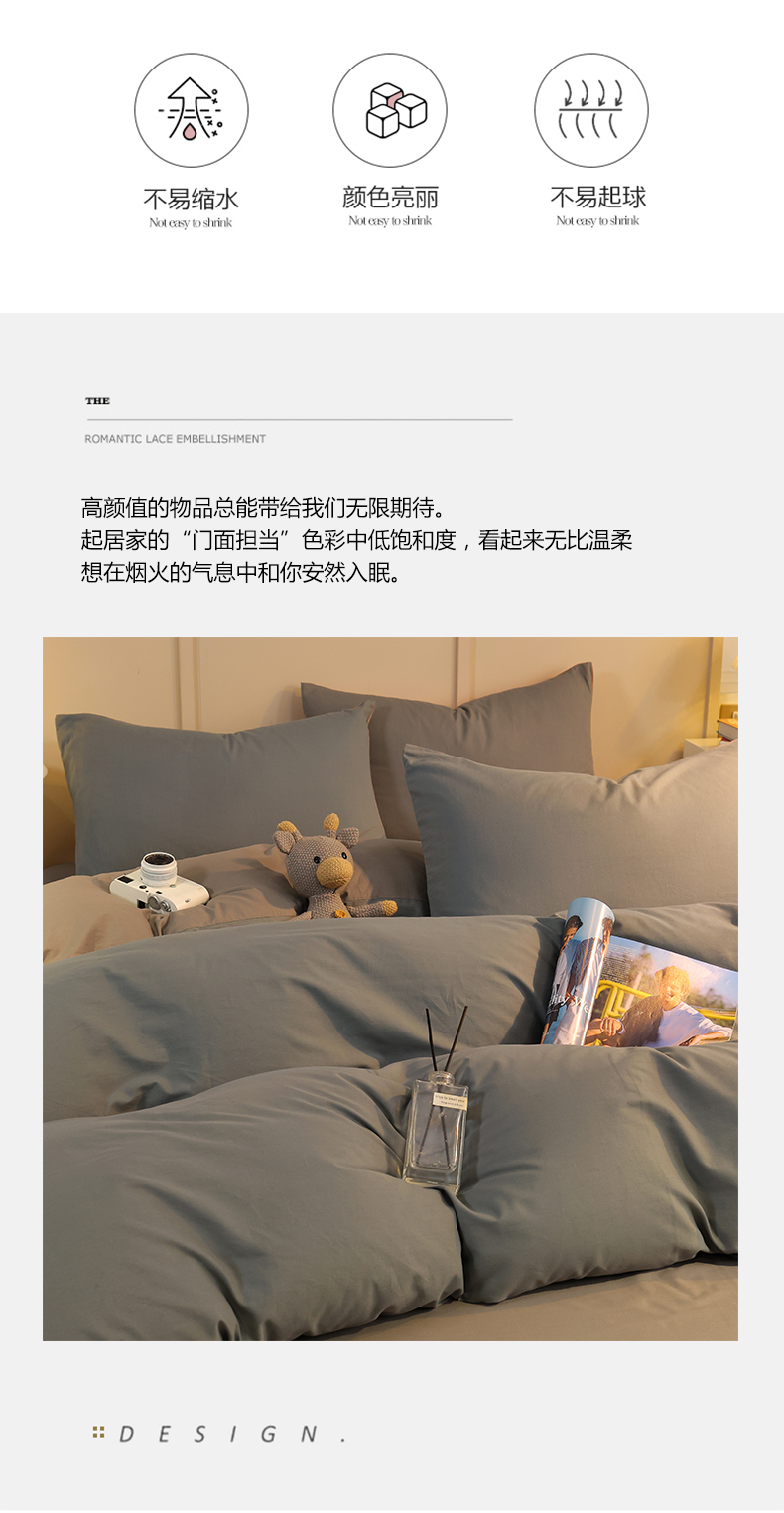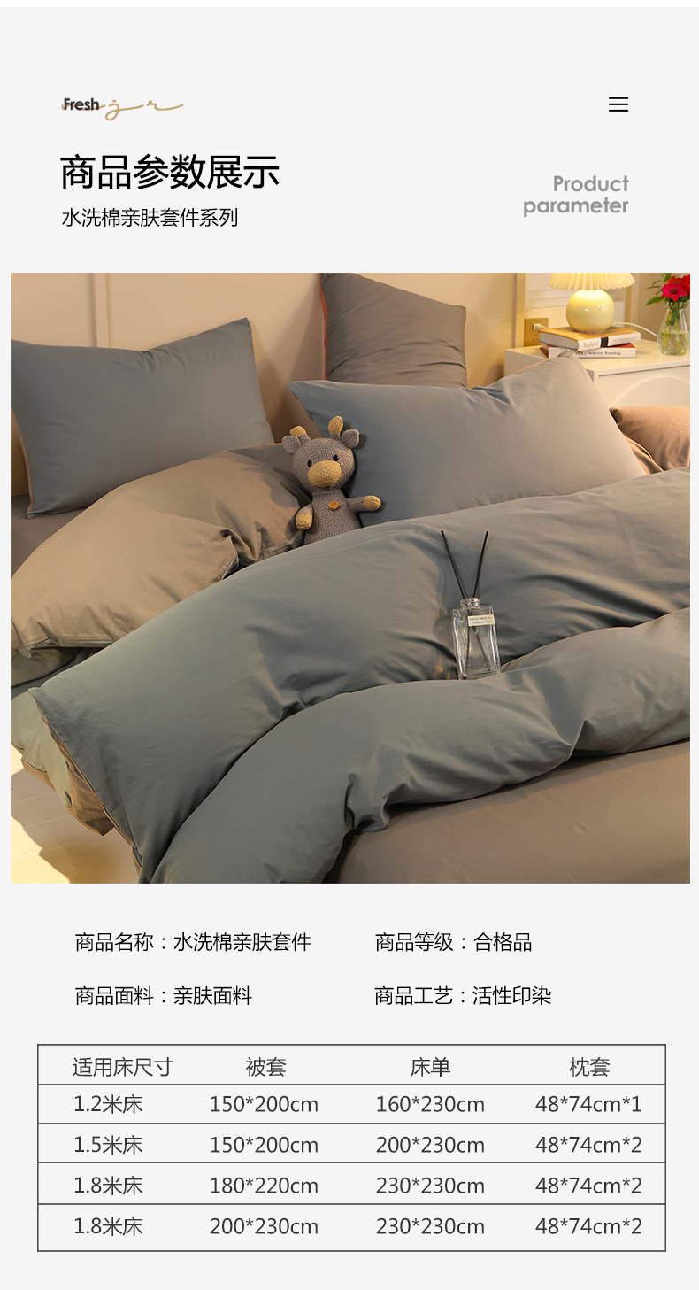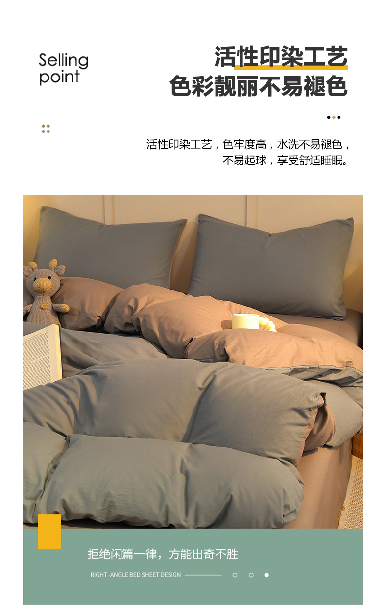 商品名称:缦绣阁家纺 2025新款亲肤水洗棉纯色双拼四件套简约风床单款床笠款四件套宿舍三件套 双拼中灰+浅灰