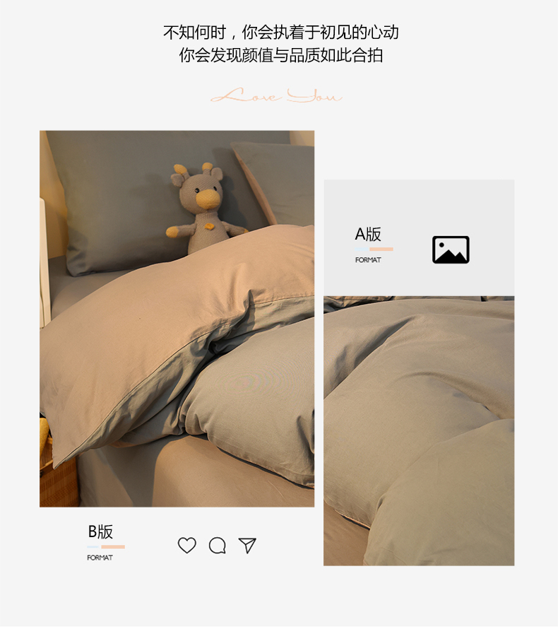 (总)缦绣阁家纺 2025新款亲肤水洗棉纯色双拼四件套简约风床单款床笠款四件套宿舍三件套,纯色酷黑,纯色奶白,纯色深咖,纯色水绿,双拼宝兰+酷黑,双拼豆沙+浅灰,双拼果绿+条纹绿,双拼玫粉+方格,双拼玫粉+酷黑,双拼奶白+黑,双拼浅兰灰+浅灰,双拼中灰+浅灰