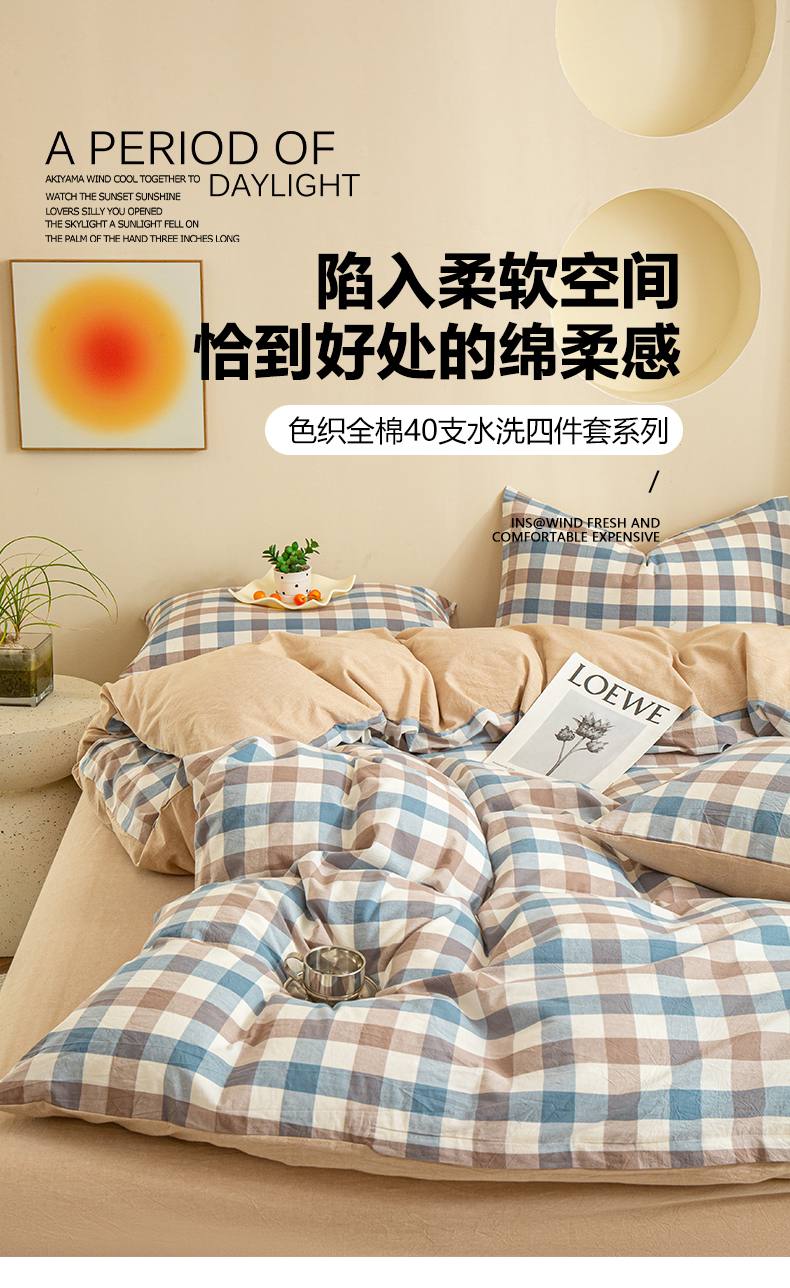 商品名称:优米家纺 2025新款色织全棉纯棉40支水洗四件套系列-单床单 麦丫咖