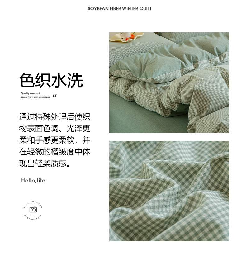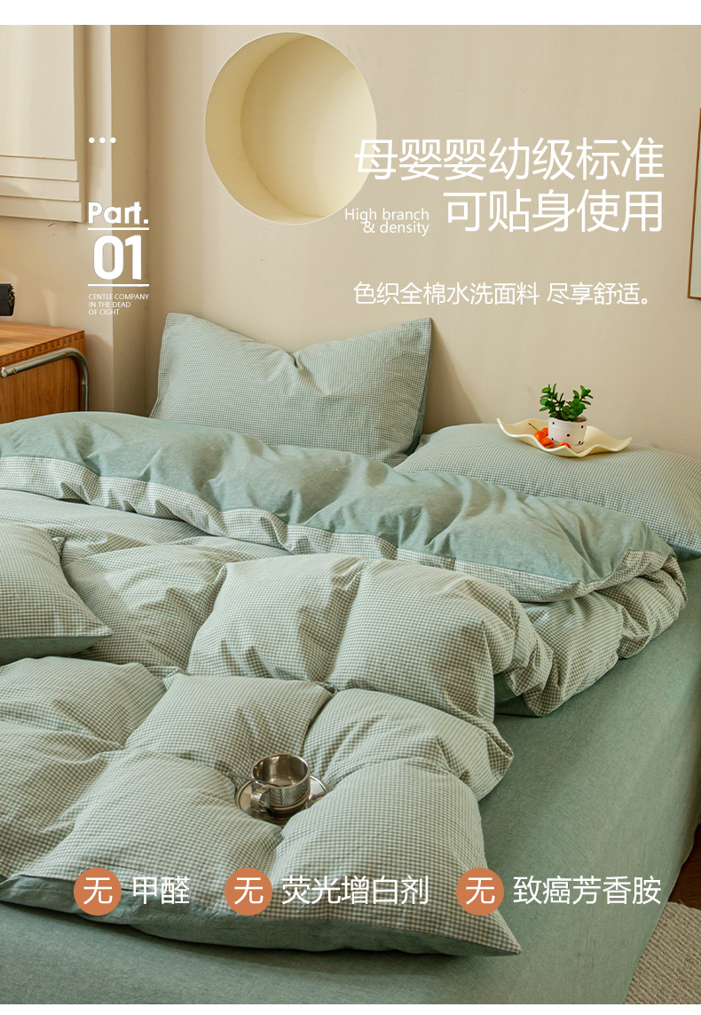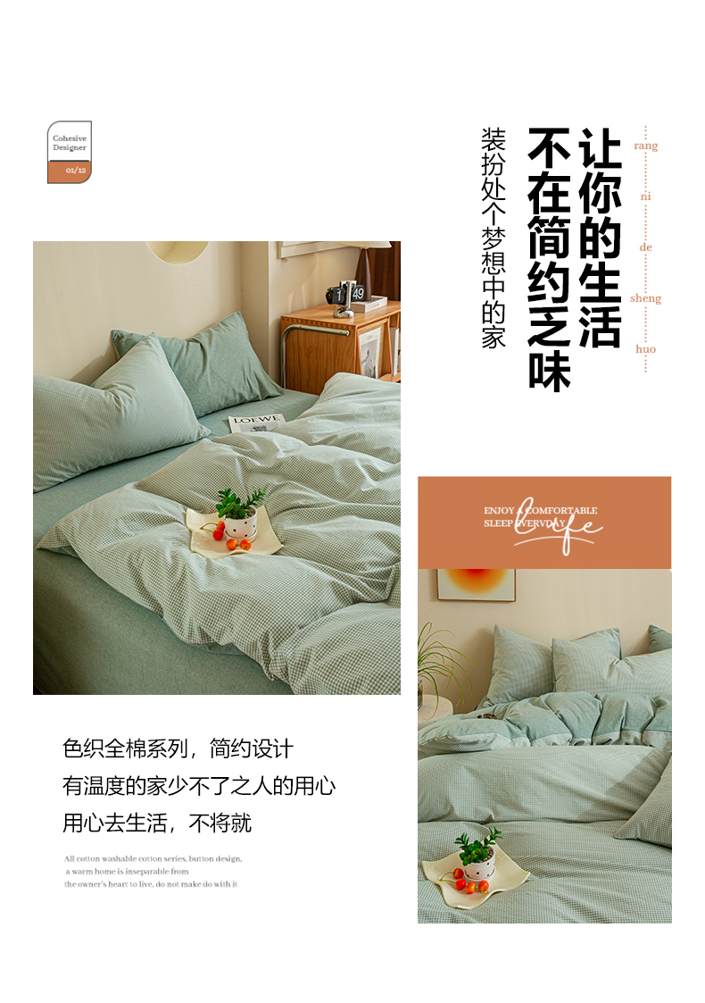 商品名称:优米家纺 2025新款色织全棉纯棉40支水洗四件套系列-单床单 绿小格
