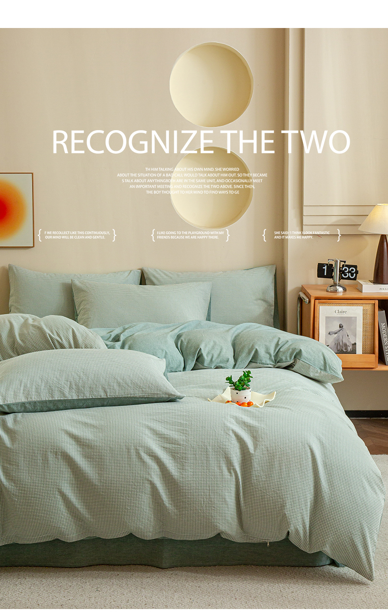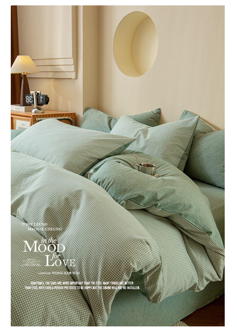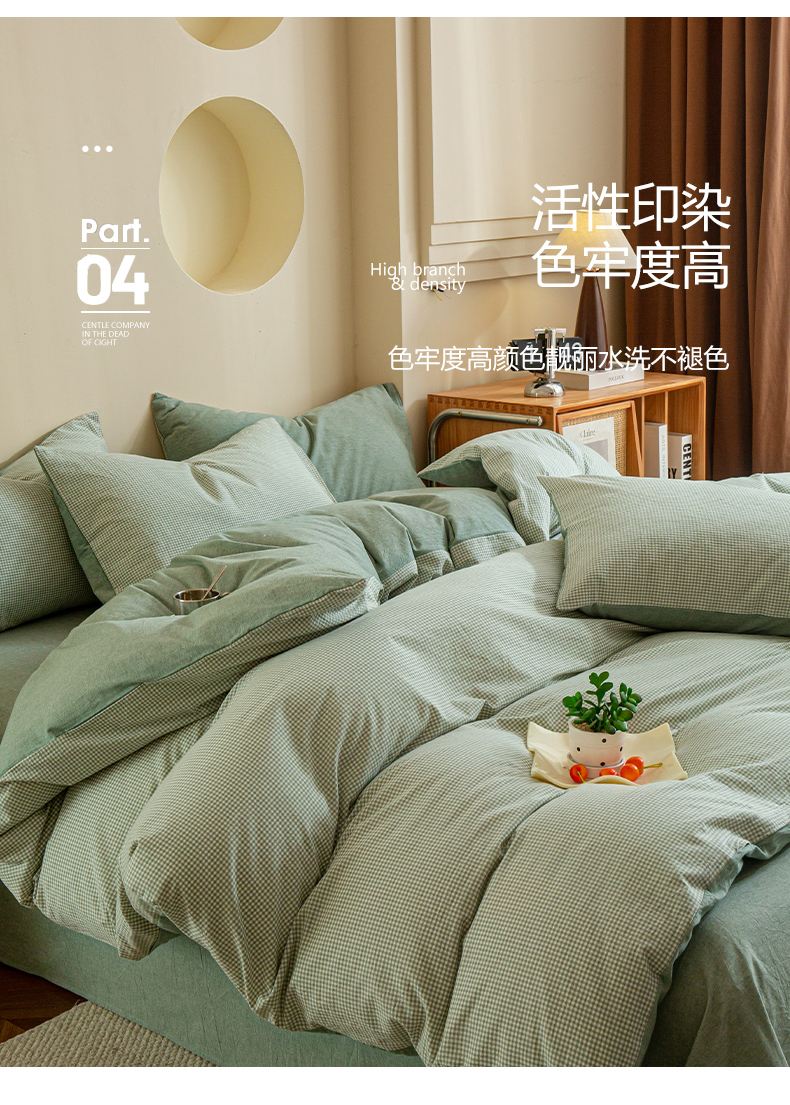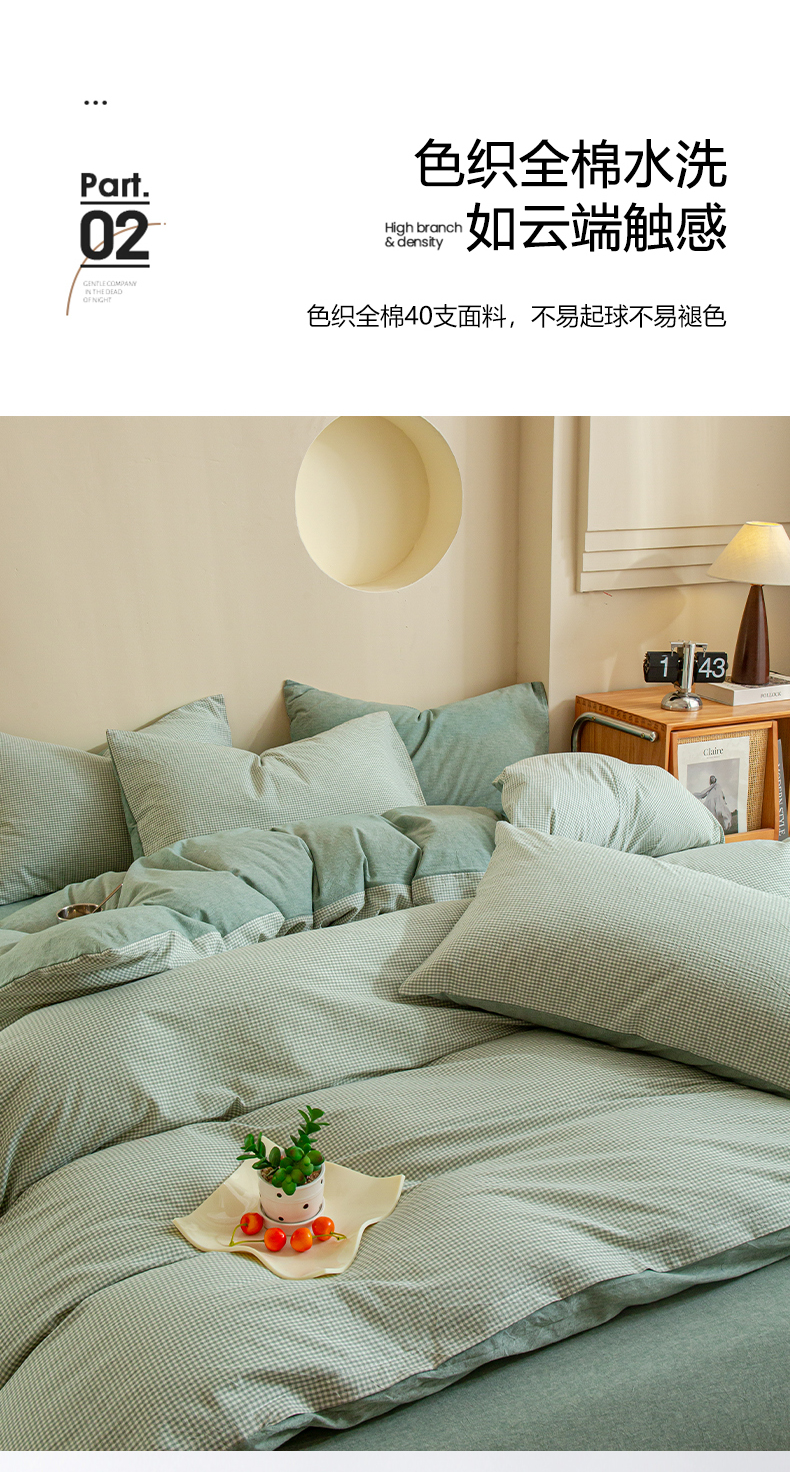 优米家纺 2025新款色织全棉纯棉40支水洗四件套系列-单床单 绿小格
