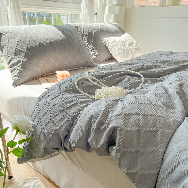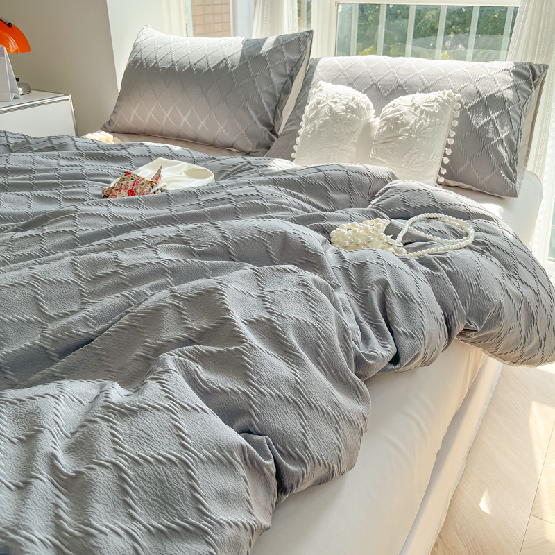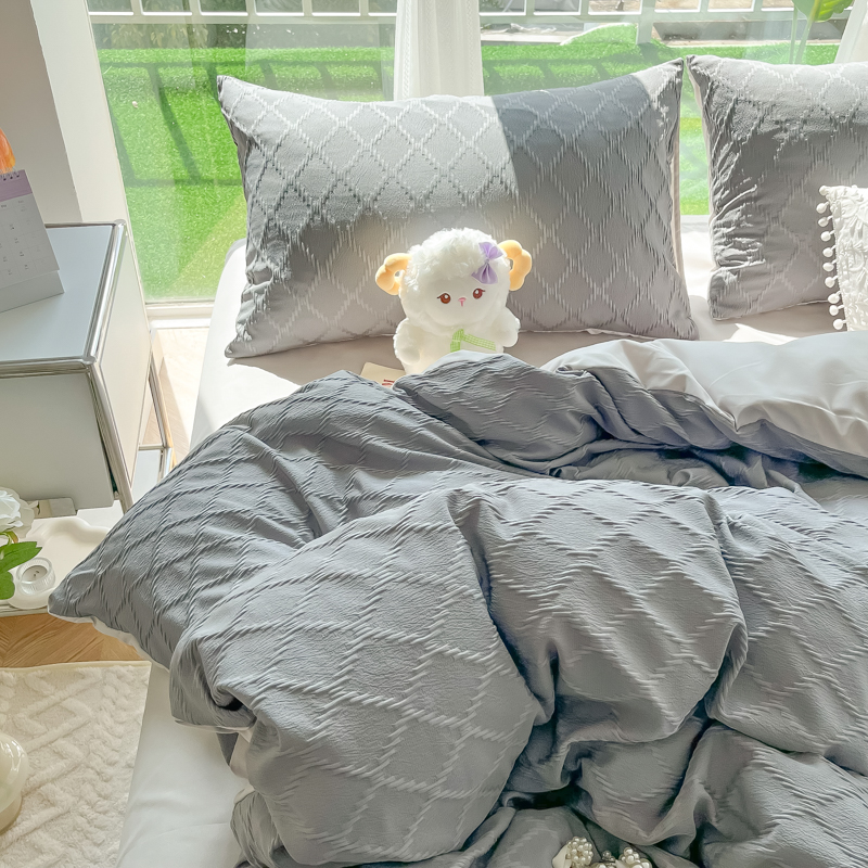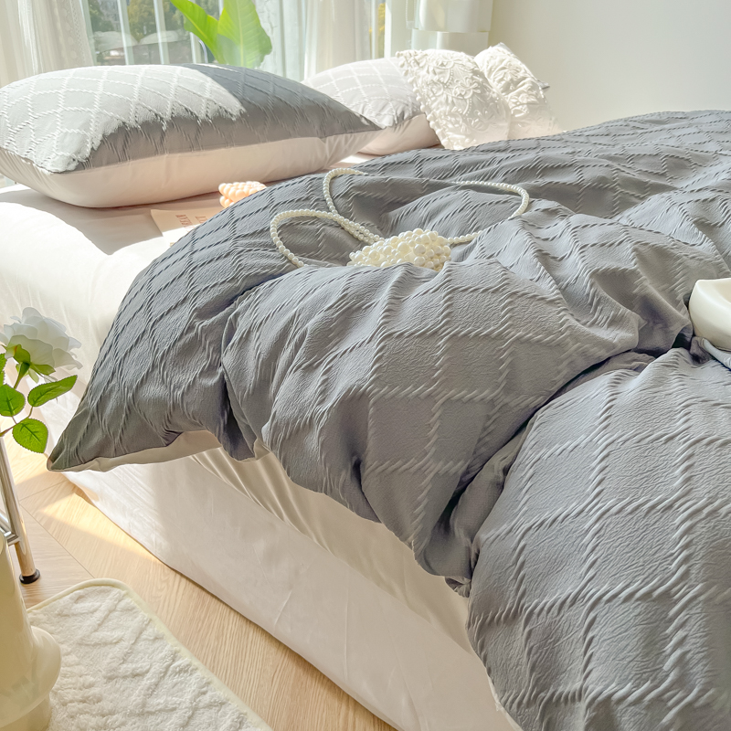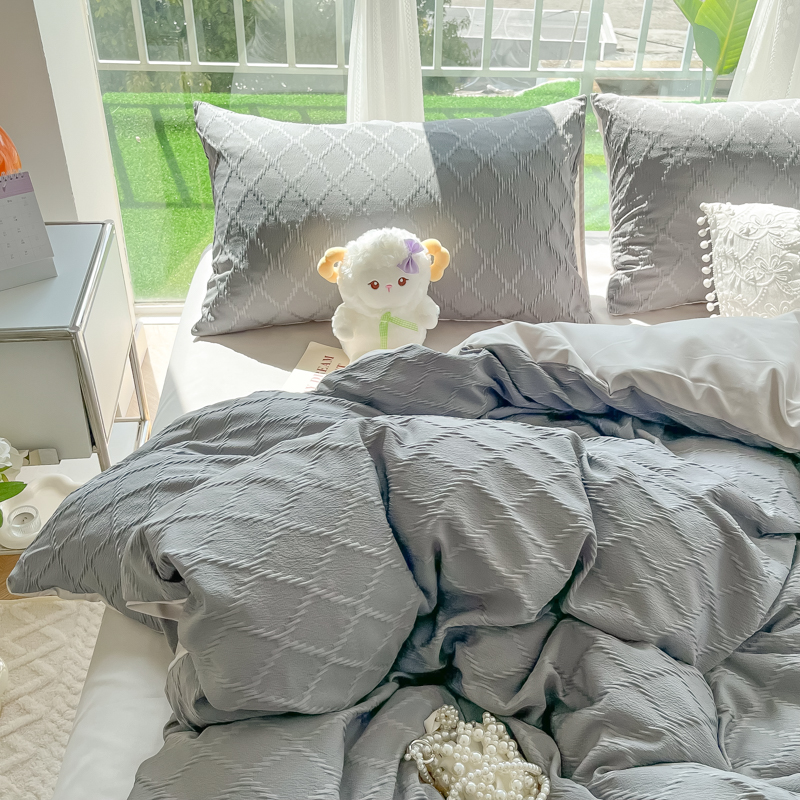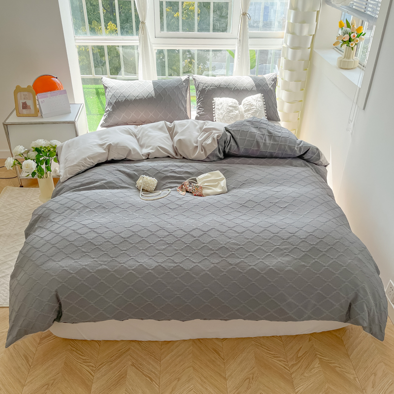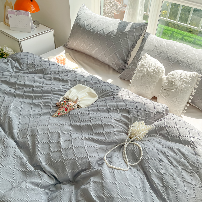 当前位置: 91家纺网 > 商品网购 > 床品套件 > 四件套 > 其它四件套 > 缦绣阁家纺 2025新款AB版菱形格简约提花四件套小清新床单款床笠款4件套生宿舍三件套 菱形格提花-深灰+卡其