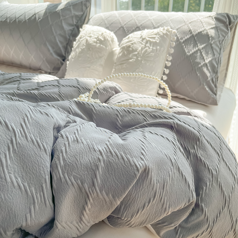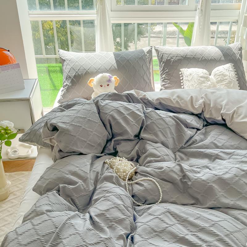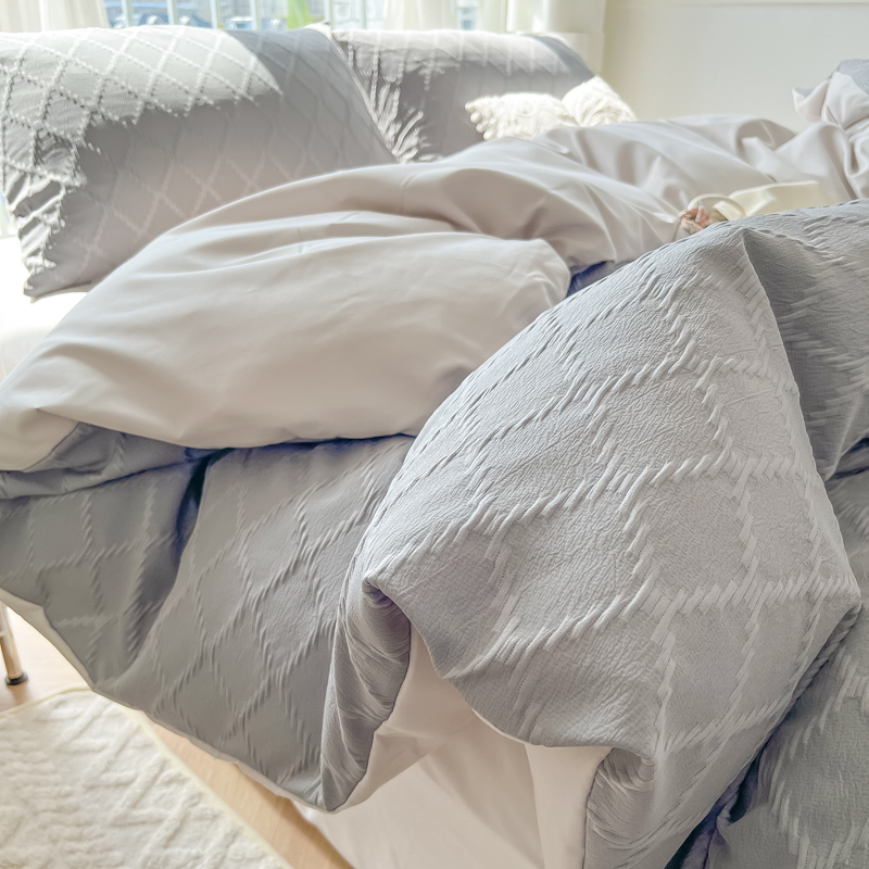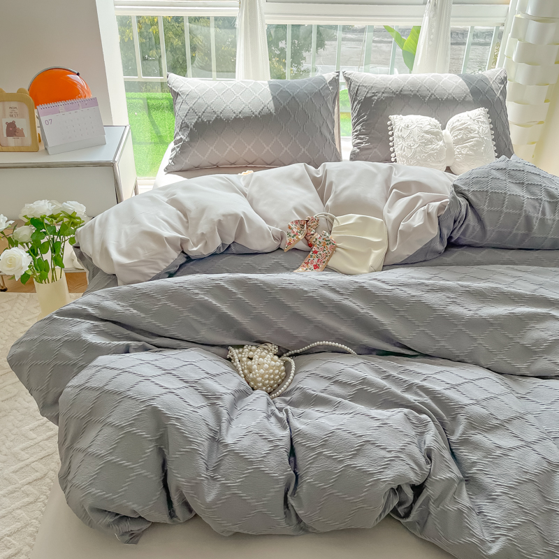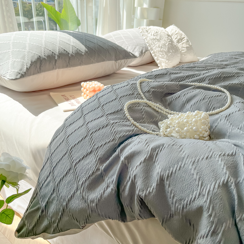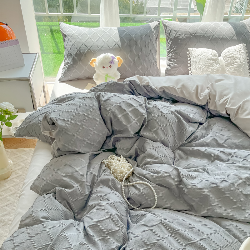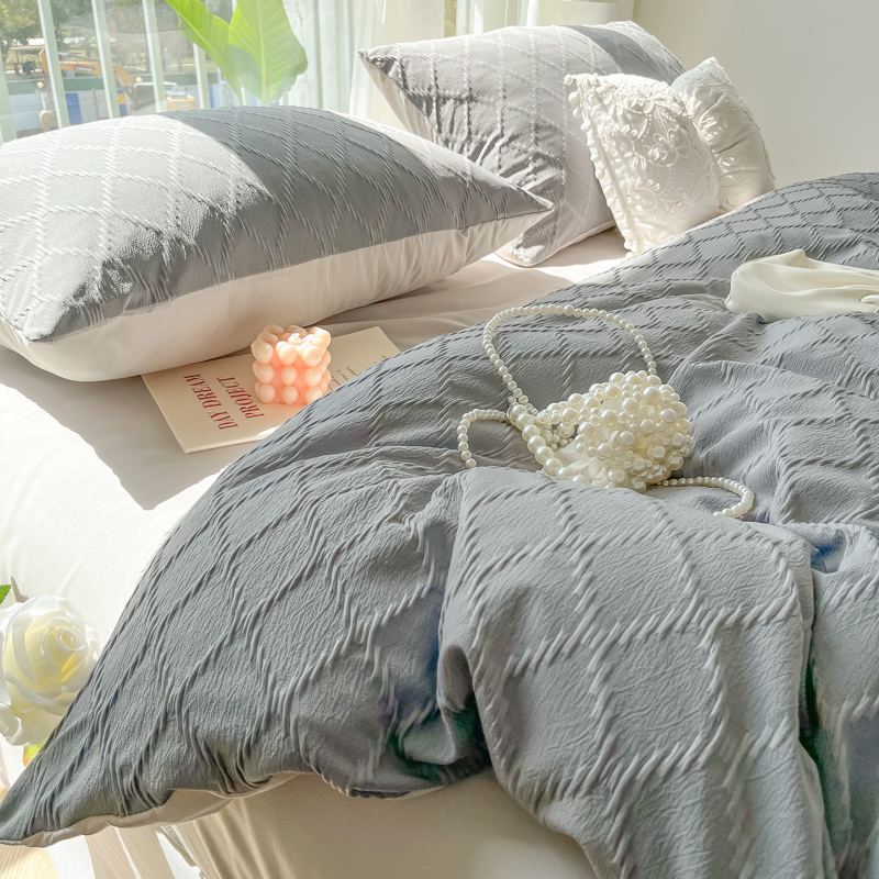 当前位置: 91家纺网 > 商品网购 > 床品套件 > 四件套 > 其它四件套 > 缦绣阁家纺 2025新款AB版菱形格简约提花四件套小清新床单款床笠款4件套生宿舍三件套 菱形格提花-深灰+卡其