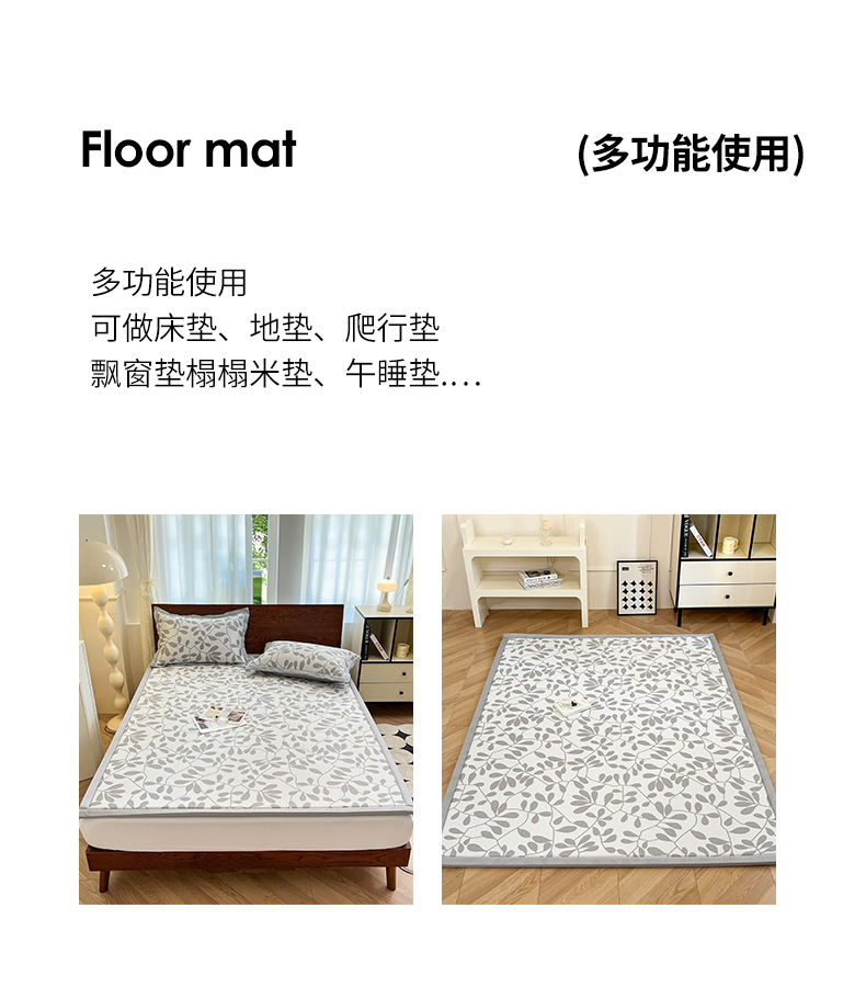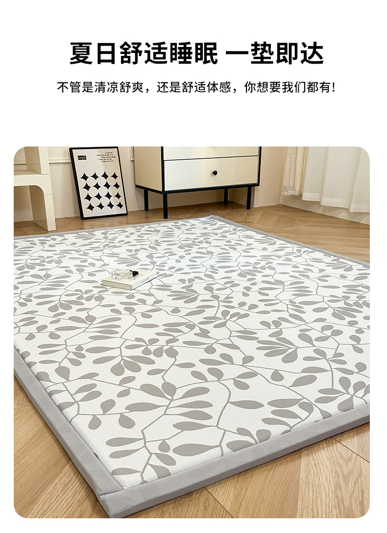 宜代光年 2025新款冷凝丝提花凉席多功能地垫 凉感叶繁床垫-灰