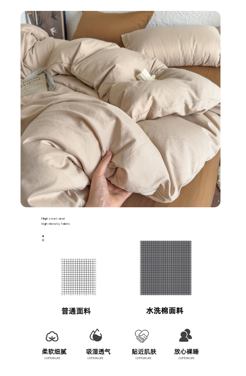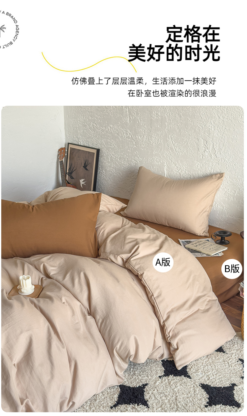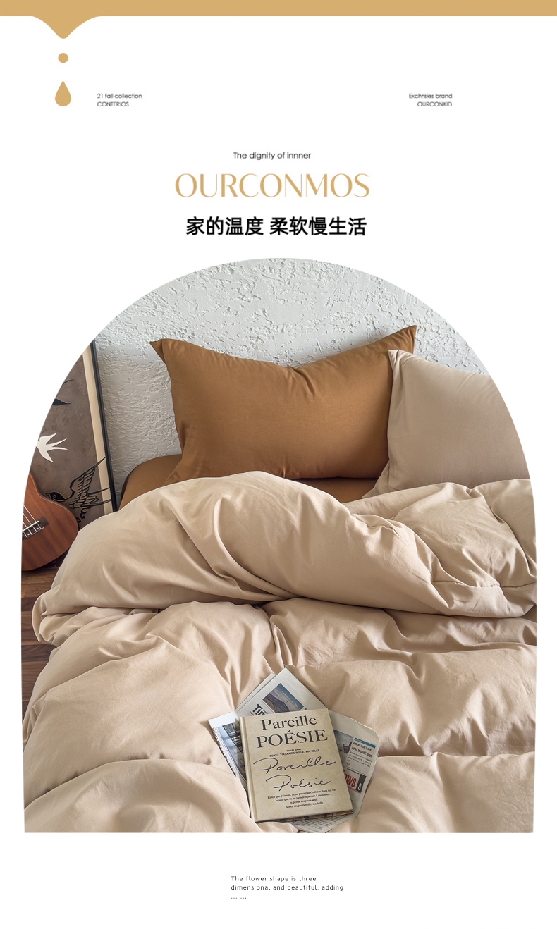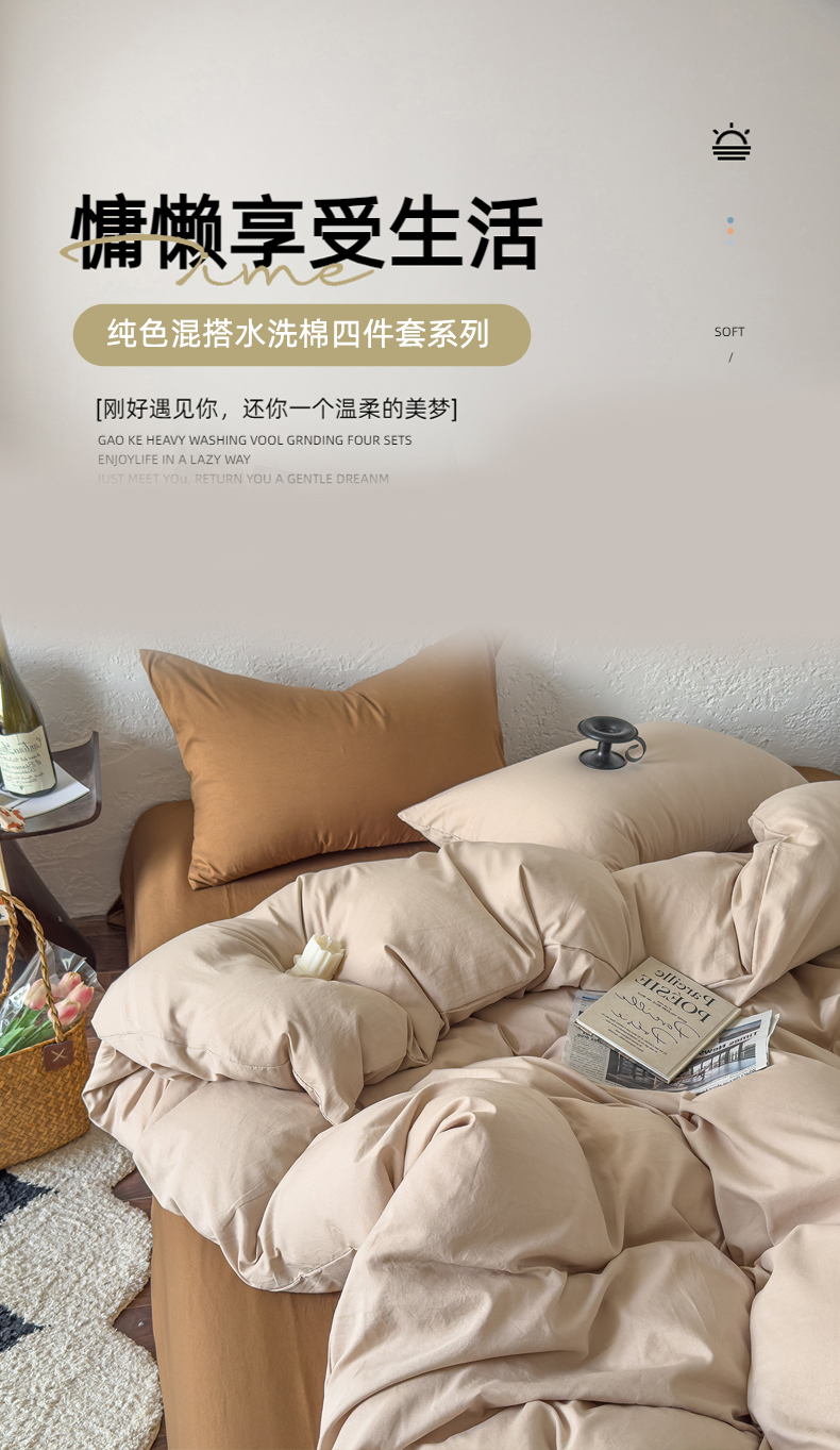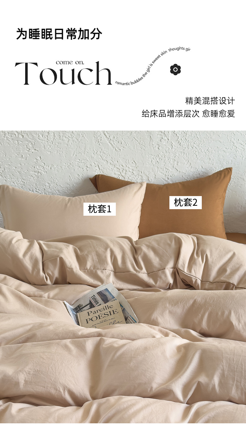 当前位置: 91家纺网 > 商品网购 > 床品套件 > 四件套 > 水洗棉四件套 > N先生+V 13814689556 发大图/买家秀 ins博主风纯色混搭水洗棉四件套(支持跨境电商定制尺寸) 浅驼+深咖
