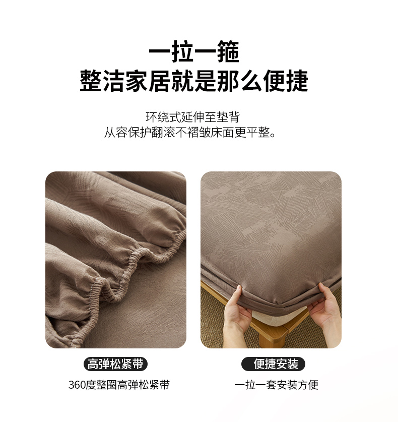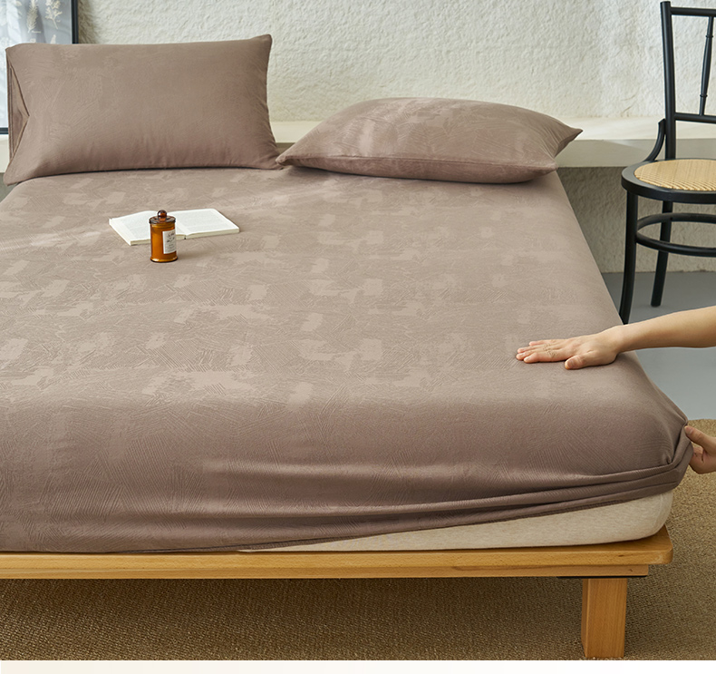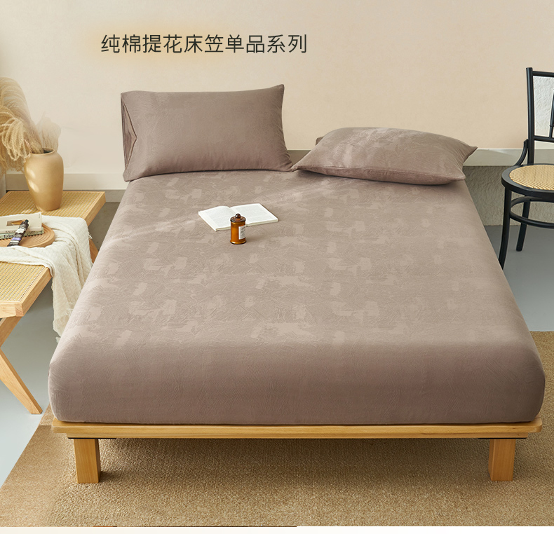 早晨家纺 2025新款肌理纹纯棉提花床笠 肌理纹床笠-中灰