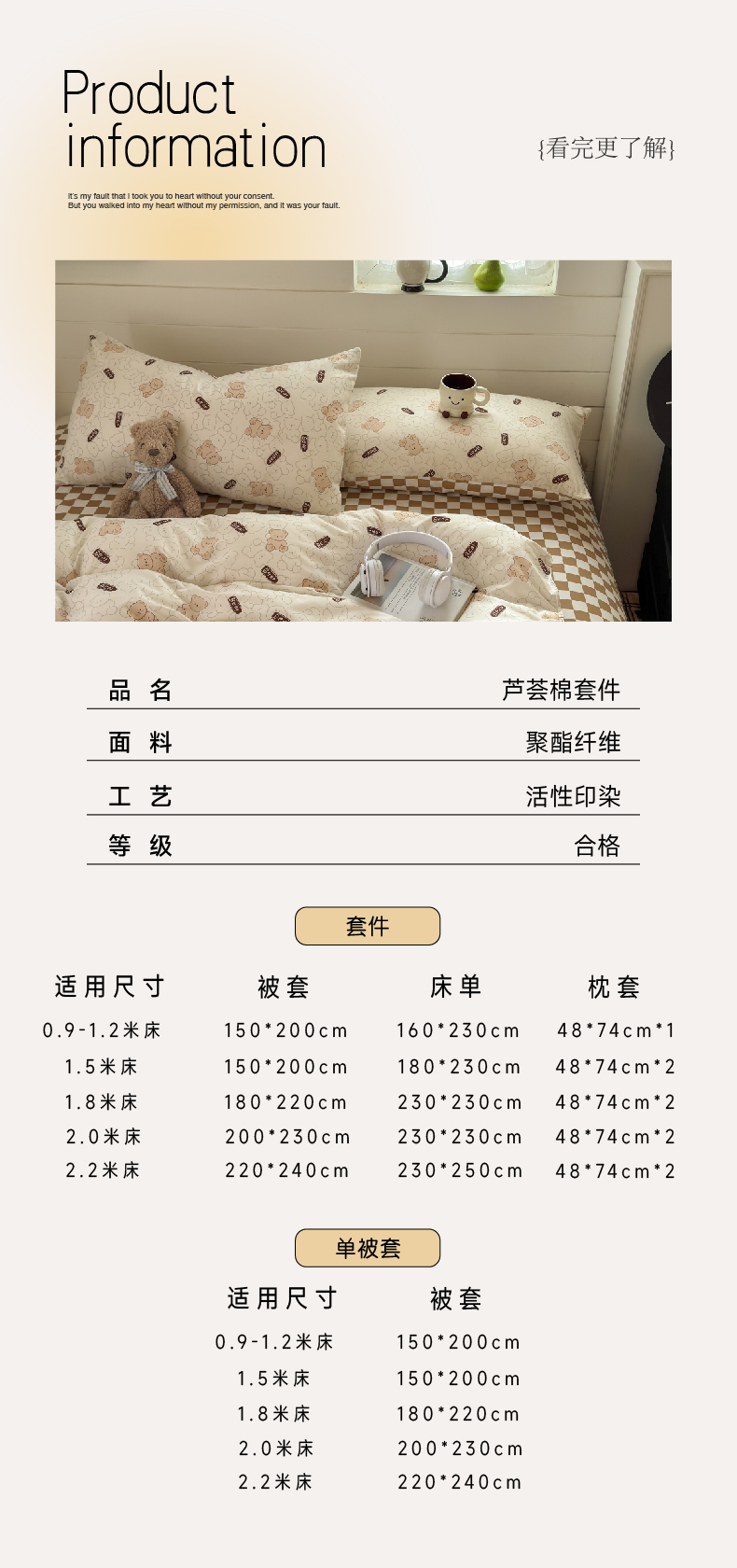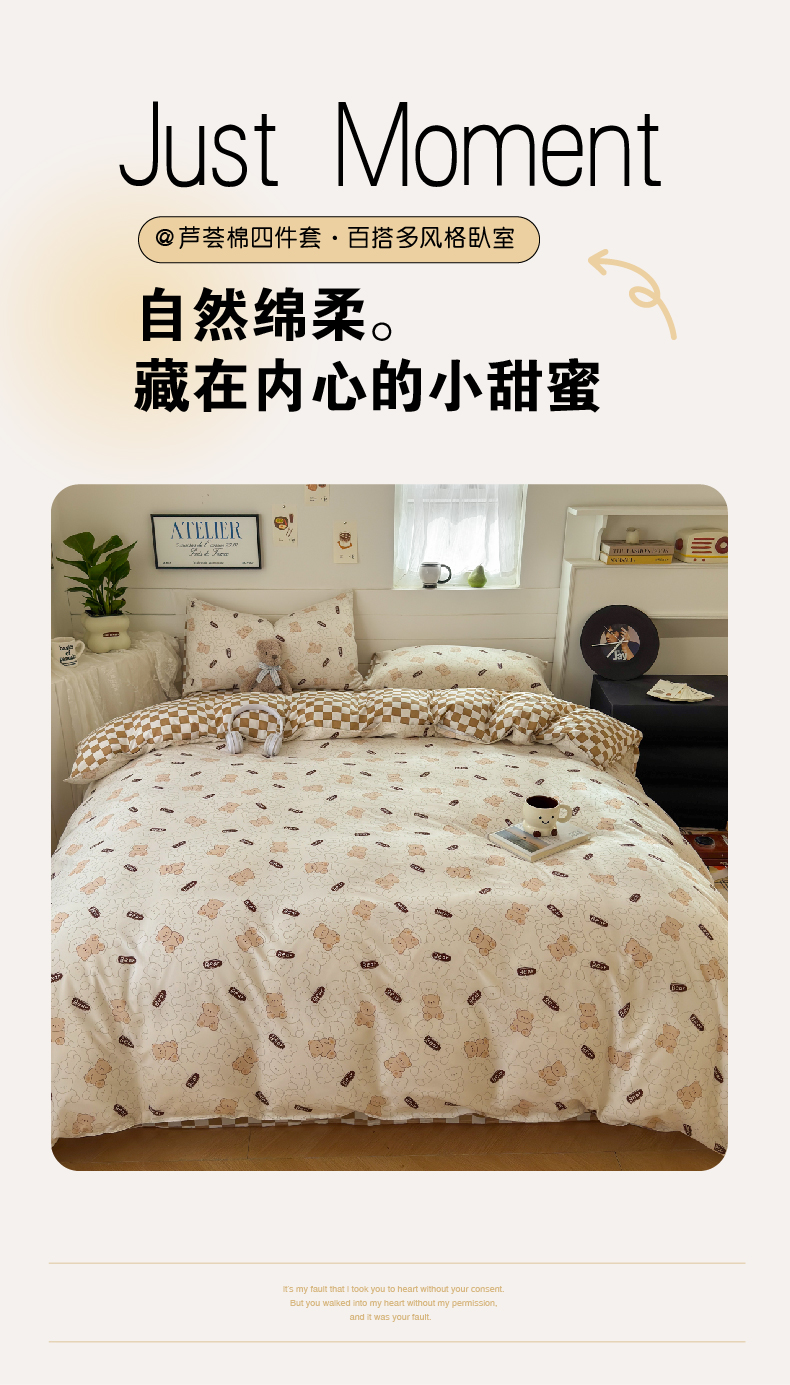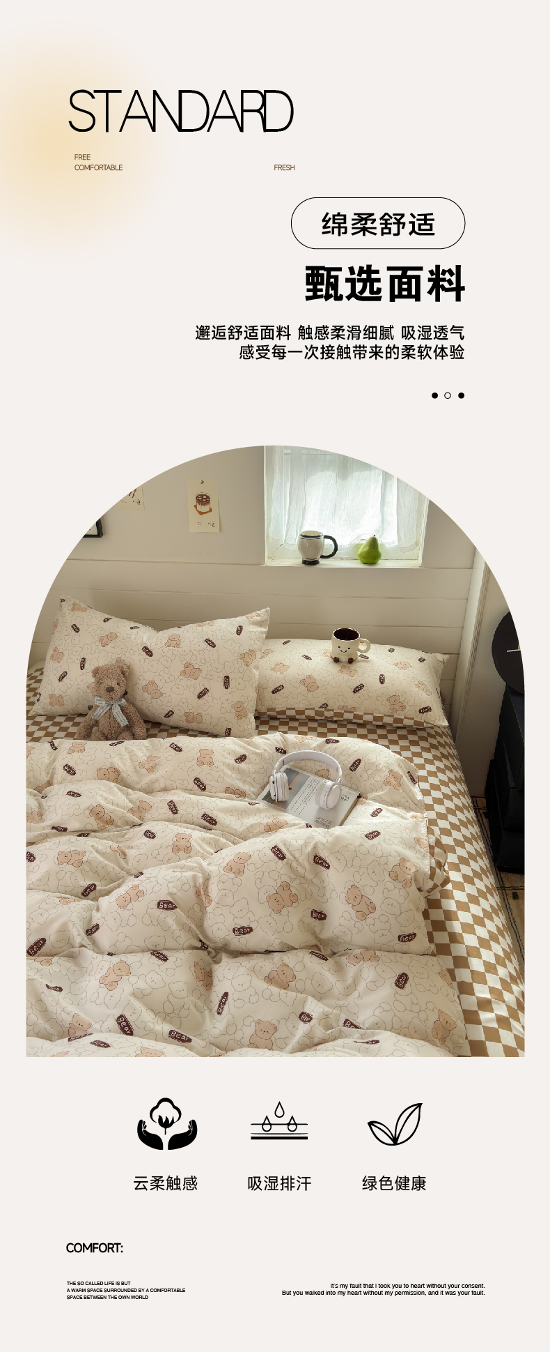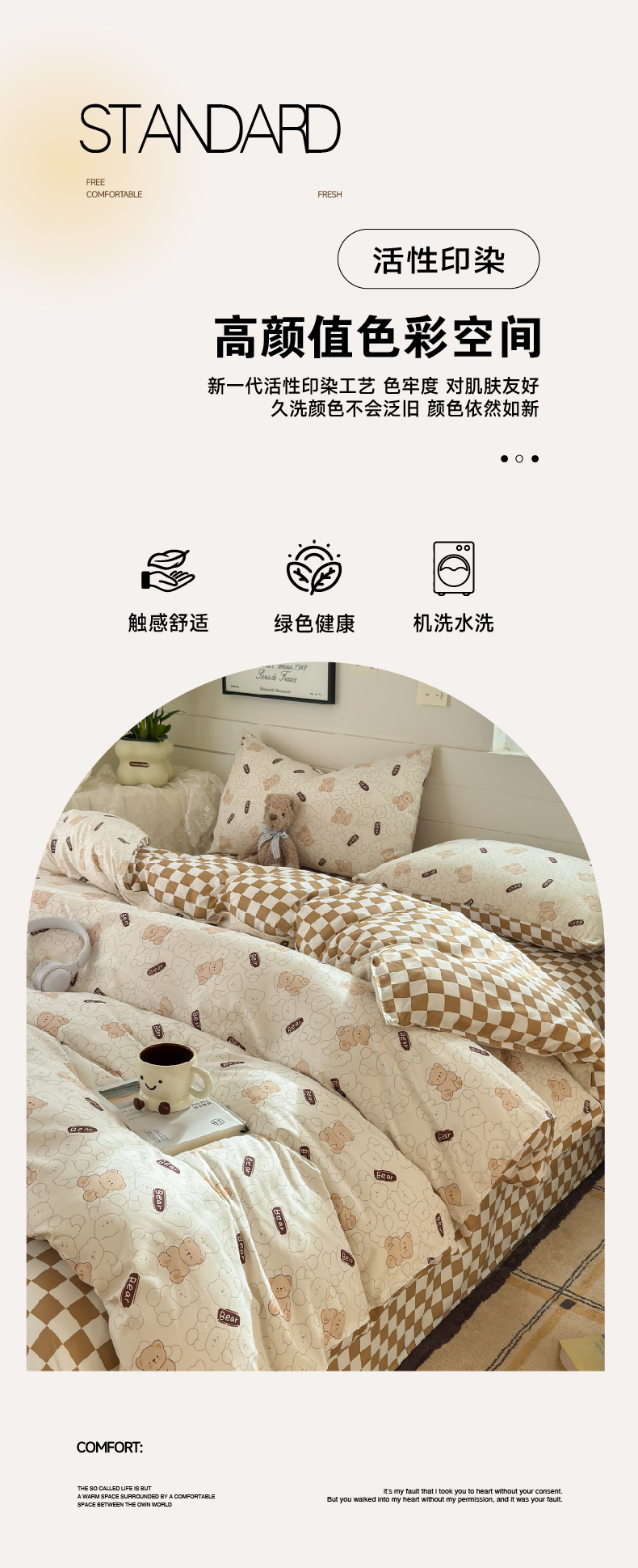 当前位置: 91家纺网 > 商品网购 > 床品套件 > 四件套 > 全棉普通四件套 > 可可家纺 2025新款印花卡通芦荟棉四件套亲肤床单被套三件套 Bear小熊