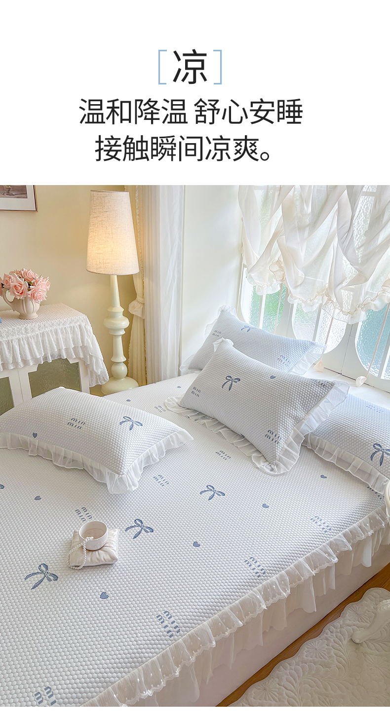 麒豆豆 2025新款床笠式床裙凉感豆豆凉席席子-小清新系列 甜心蝴蝶-蔚蓝