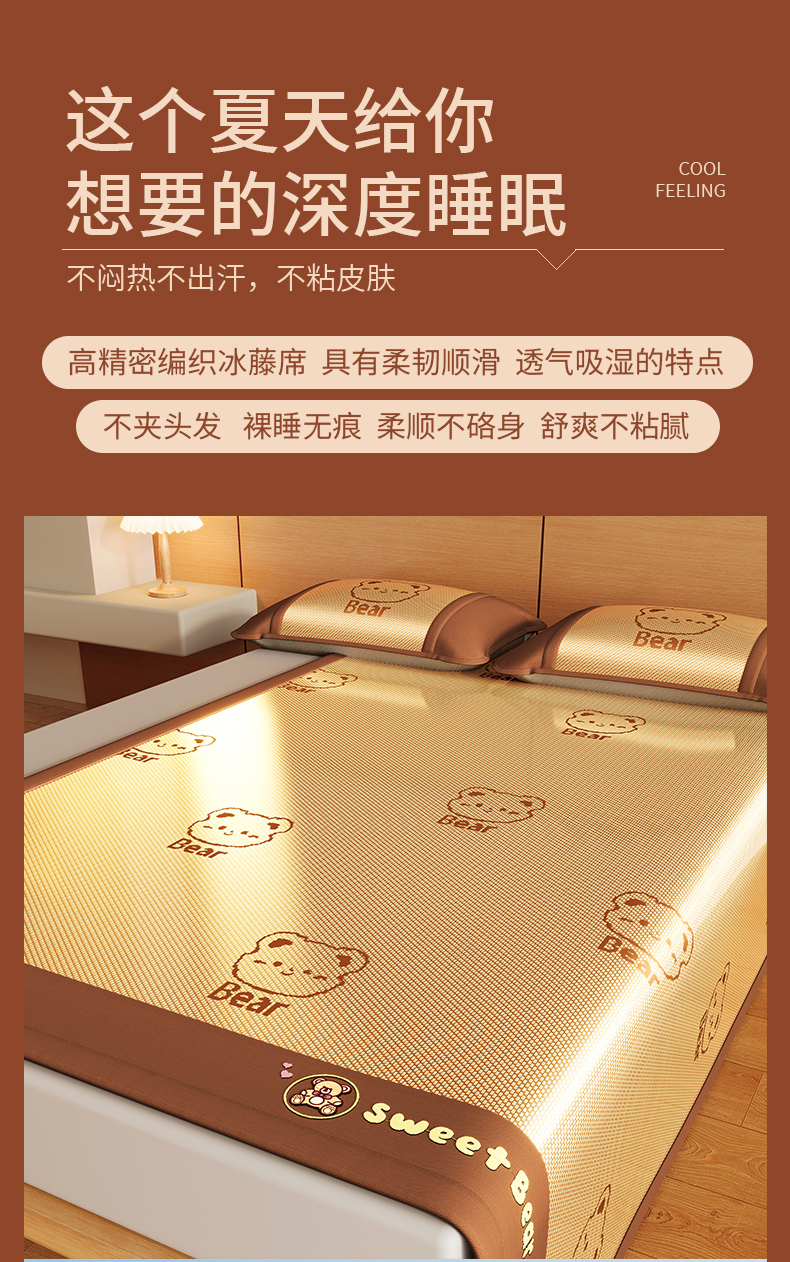 (总)阿牛席业 2025春夏新款抑菌冰藤席凉席席子-甜蜜熊