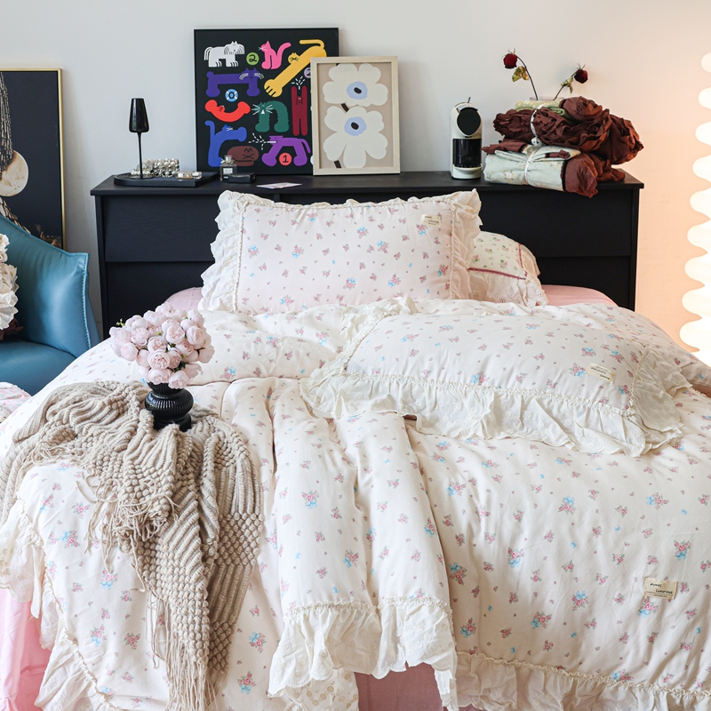 商品名称:紫碧螺家纺 2025新款A类全棉纯棉仙女双层纱大韩边四件套 雾漫玫瑰夜