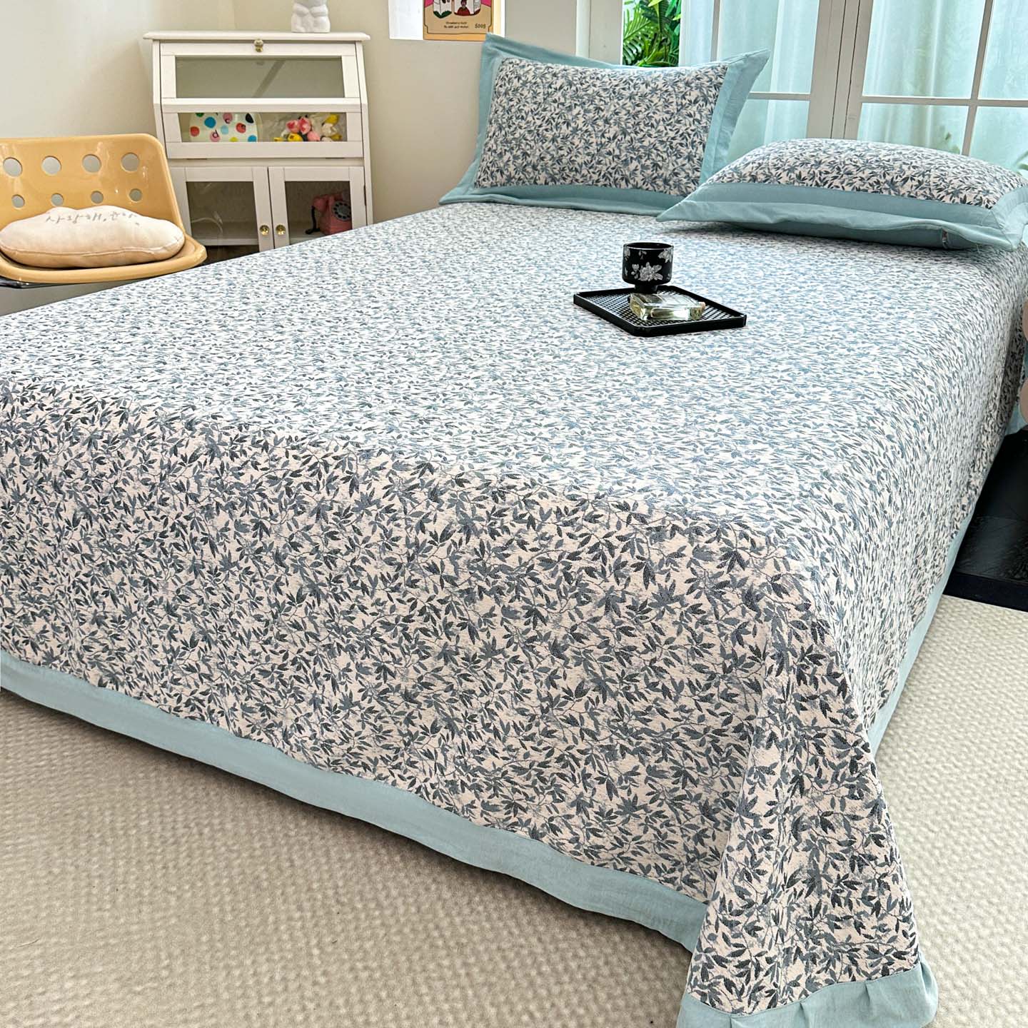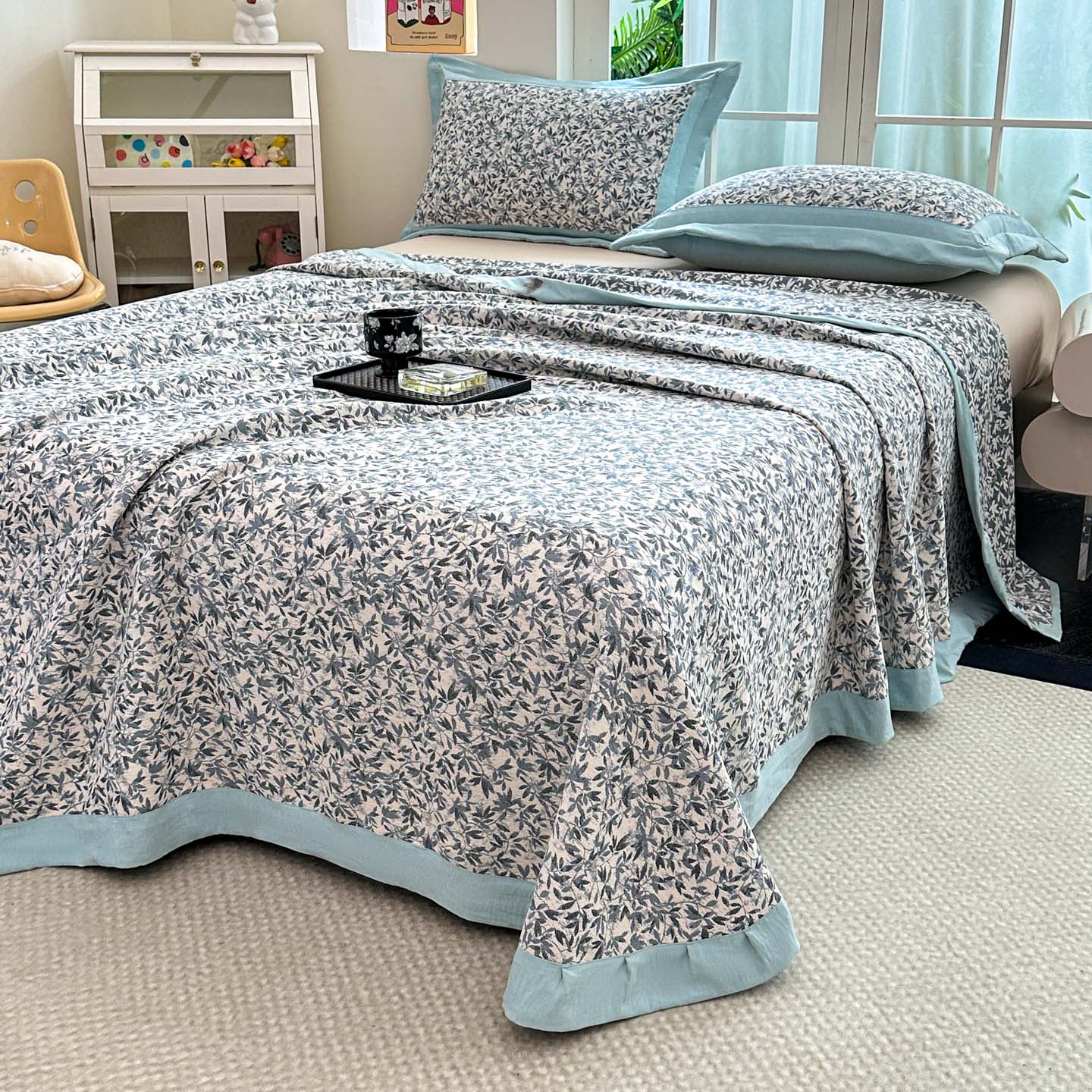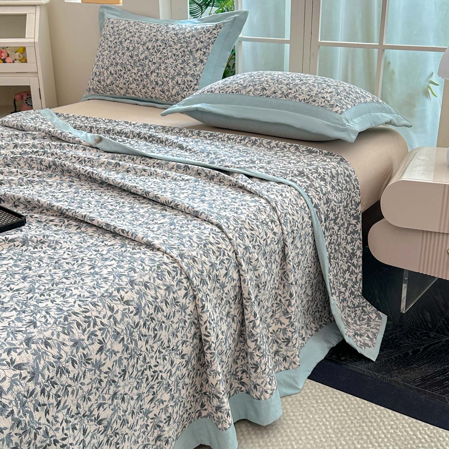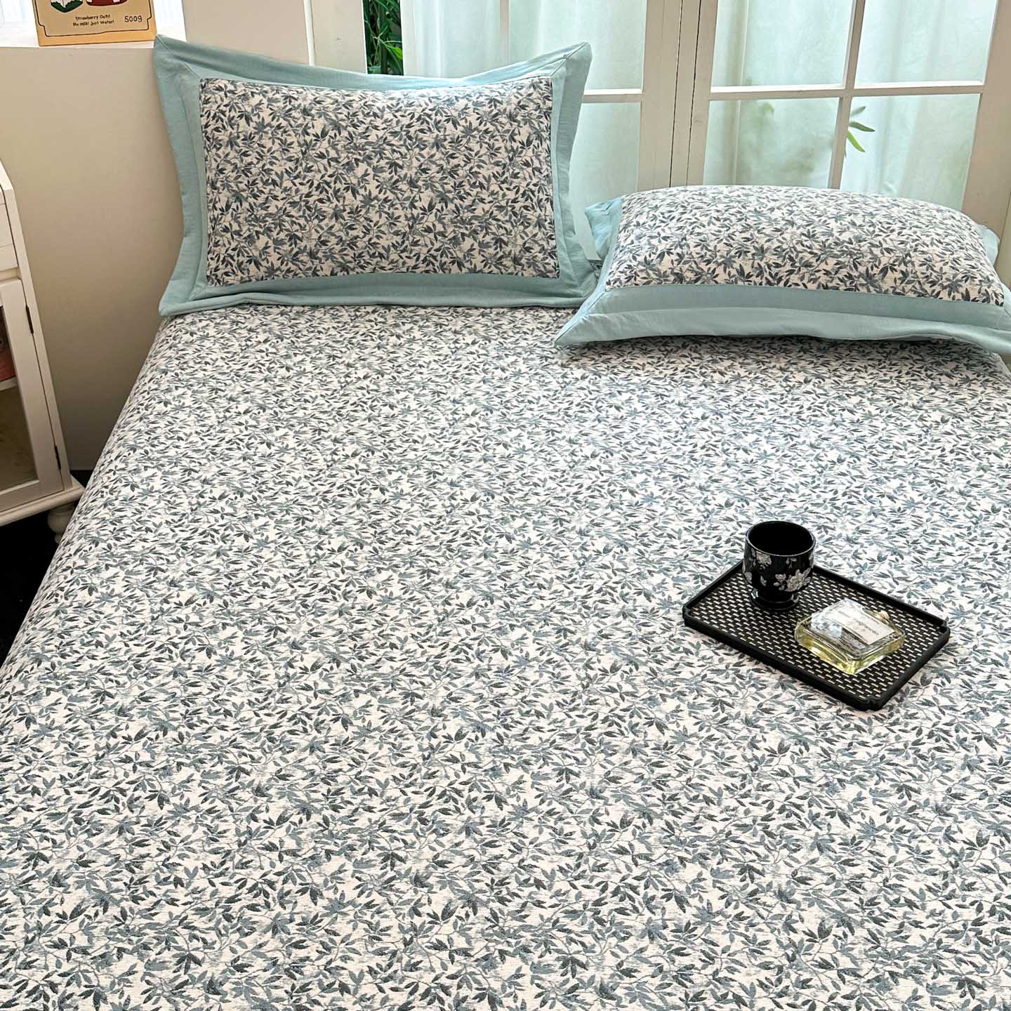 (总)紫碧螺2025新款多层纱夏被床盖四件套,淡蓝,浅灰,浅绿,浅驼