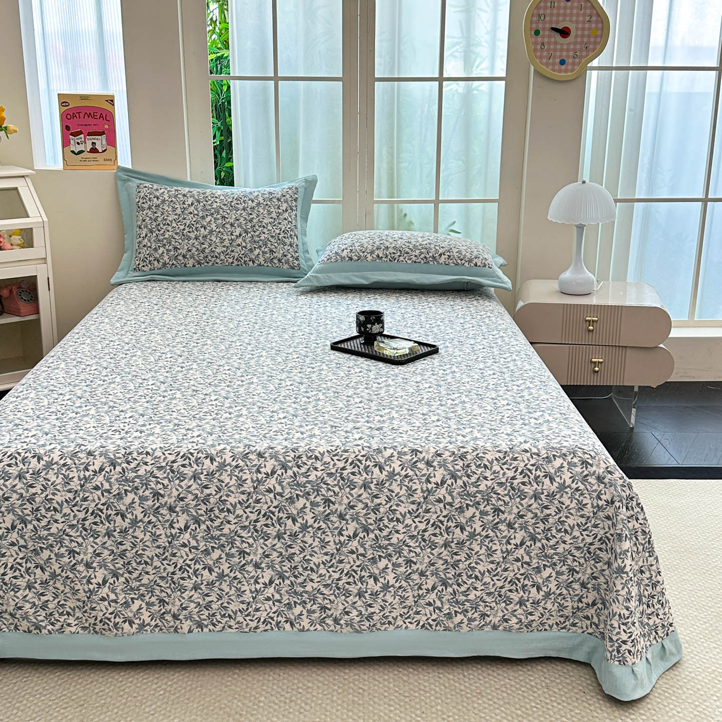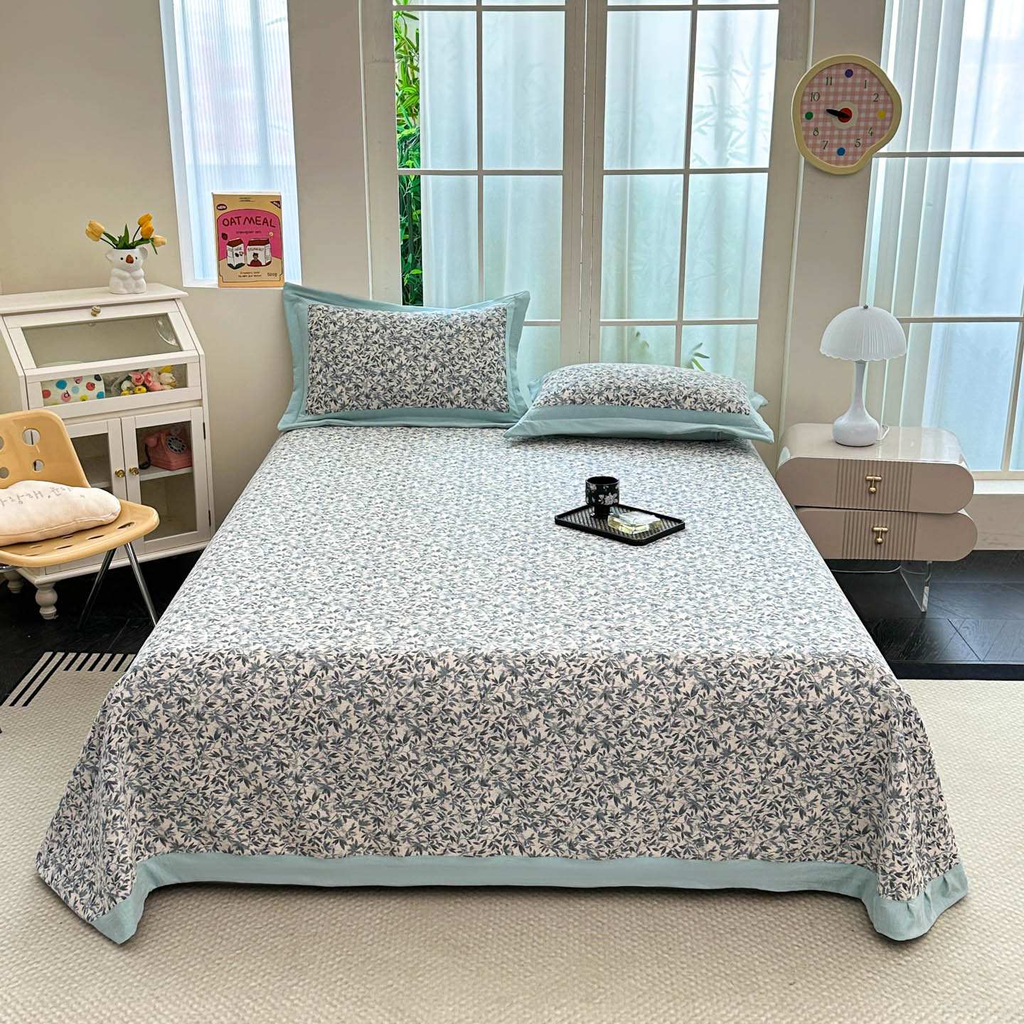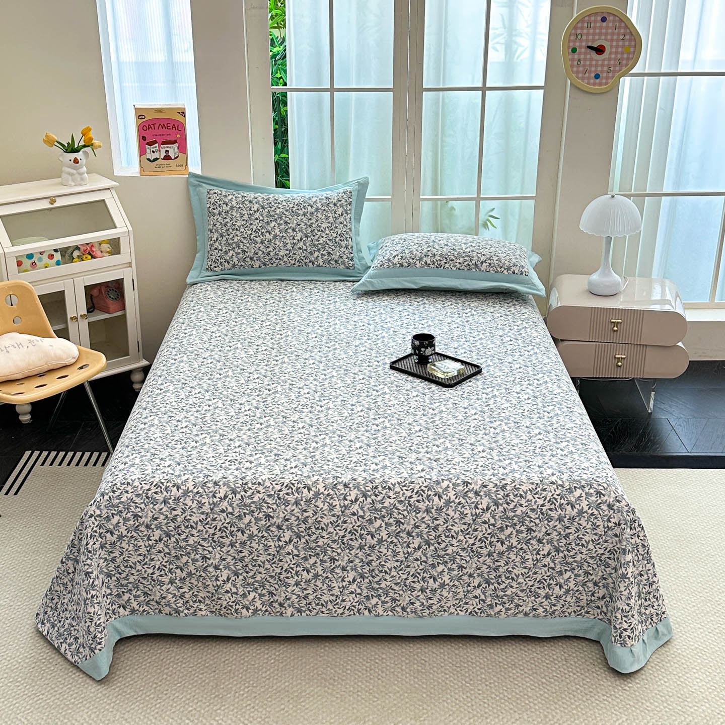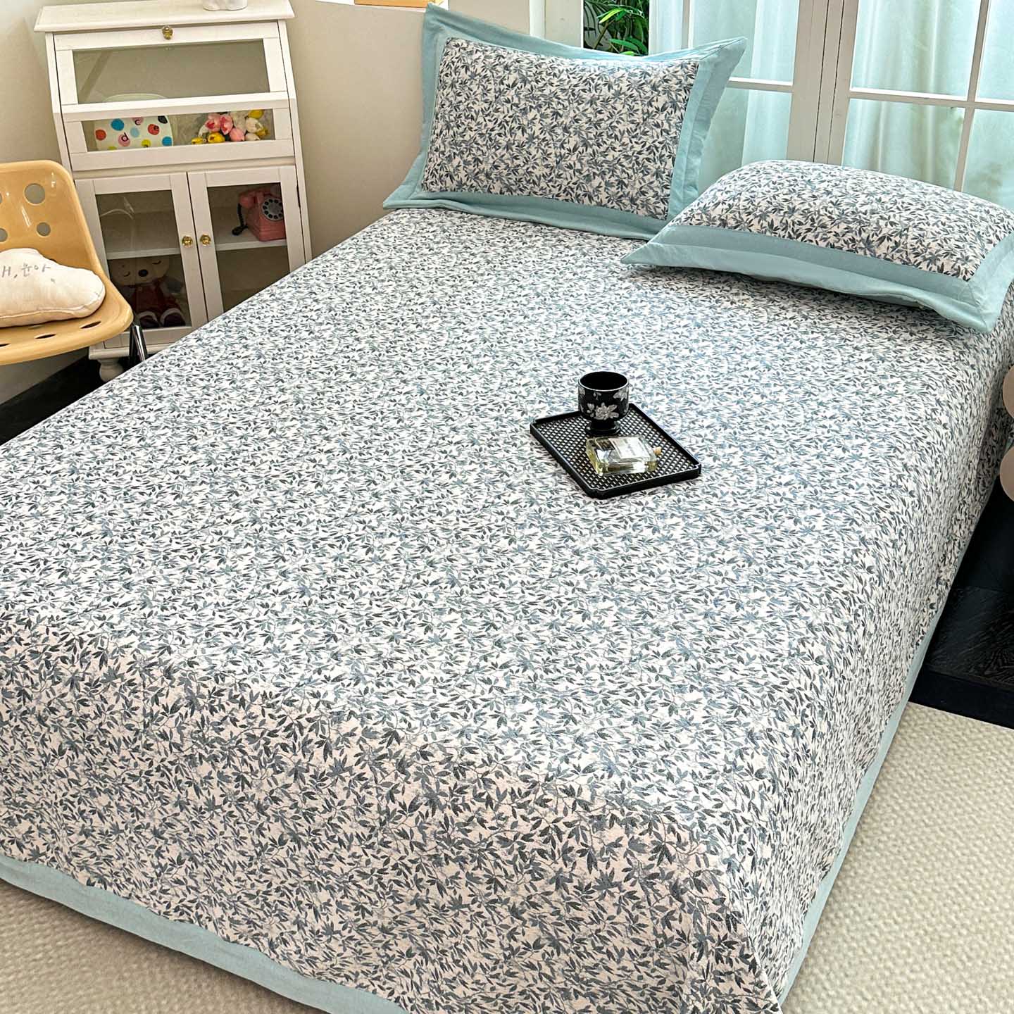 (总)紫碧螺2025新款多层纱夏被床盖四件套,淡蓝,浅灰,浅绿,浅驼