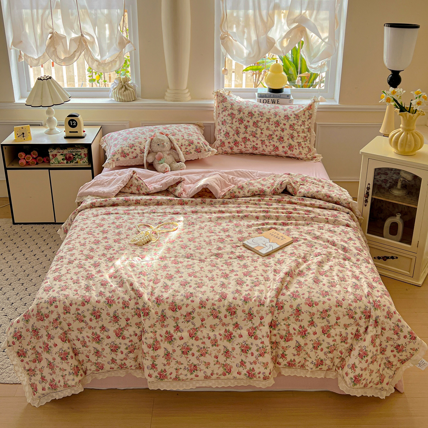 (总)繁花家居 2026新款韩系花边小碎花泡芙棉云感邹邹纱费尔岛风四件套,春日温柔,春樱漫时,费尔岛猫,风信晚歌,萝莉小兔,马儿踏青,秋日盛果,日落星马,小花兔兔,小马奔腾,星星乖猫,紫藤蝶舞