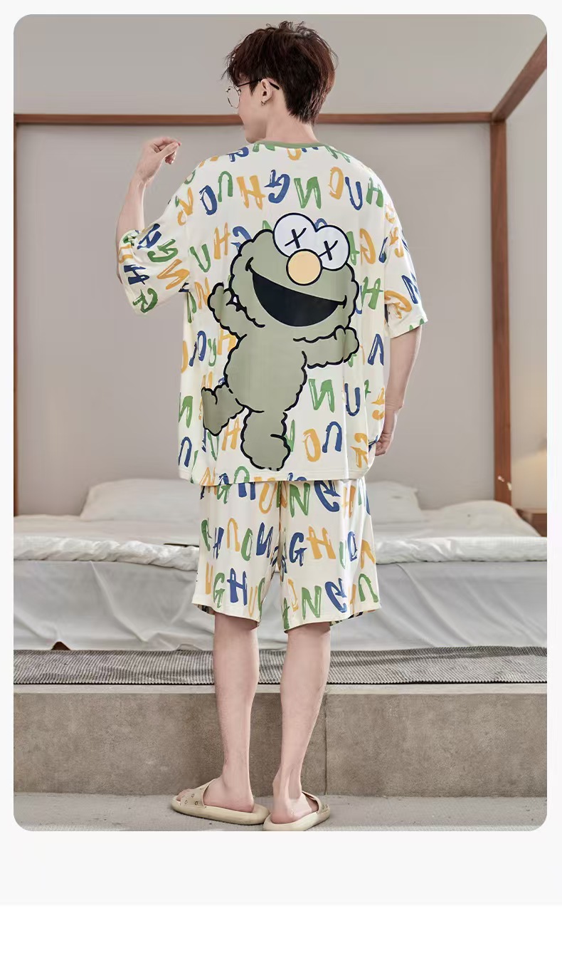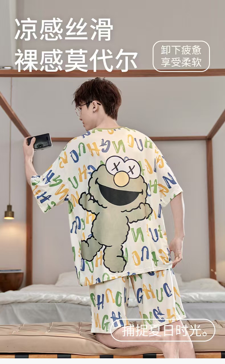 当前位置: 91家纺网 > 商品网购 > 居家日用 > 睡衣/家居服套装 > 洛兰沙家居馆【只代发】【只代发】 2025新款莫代尔凉感柔软男士睡衣夏季薄款卡通动漫大男孩可外穿宽松男款家居服套装 ls1718