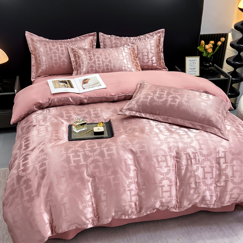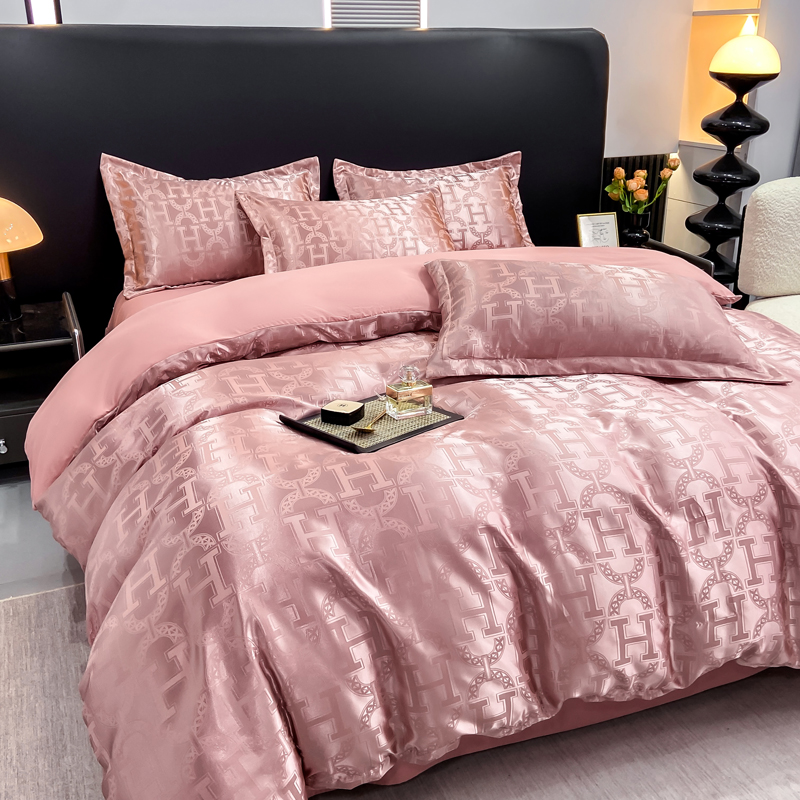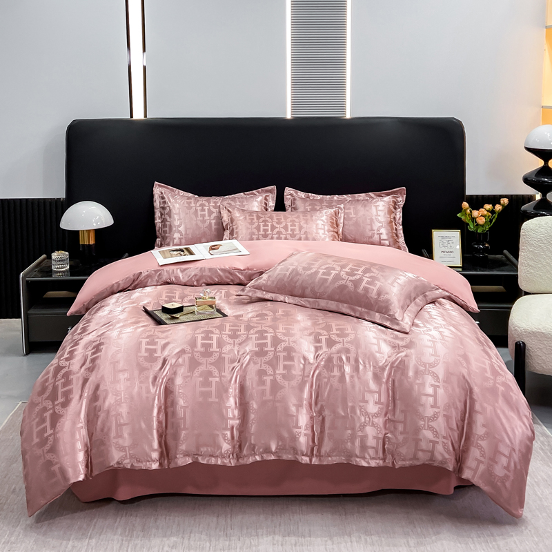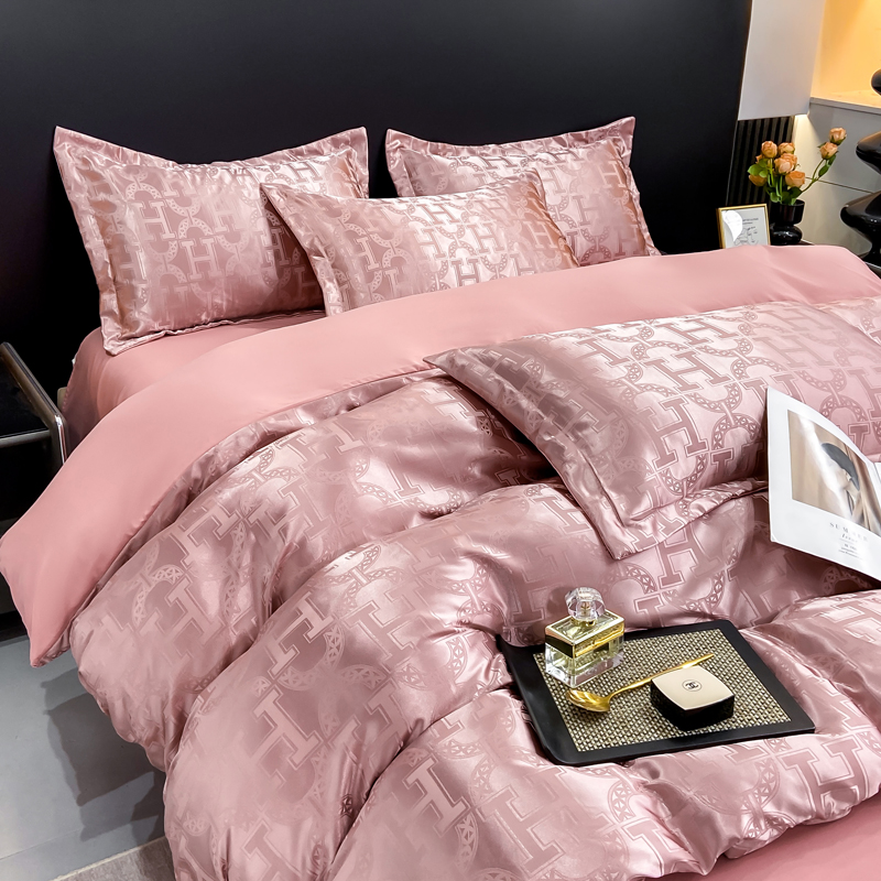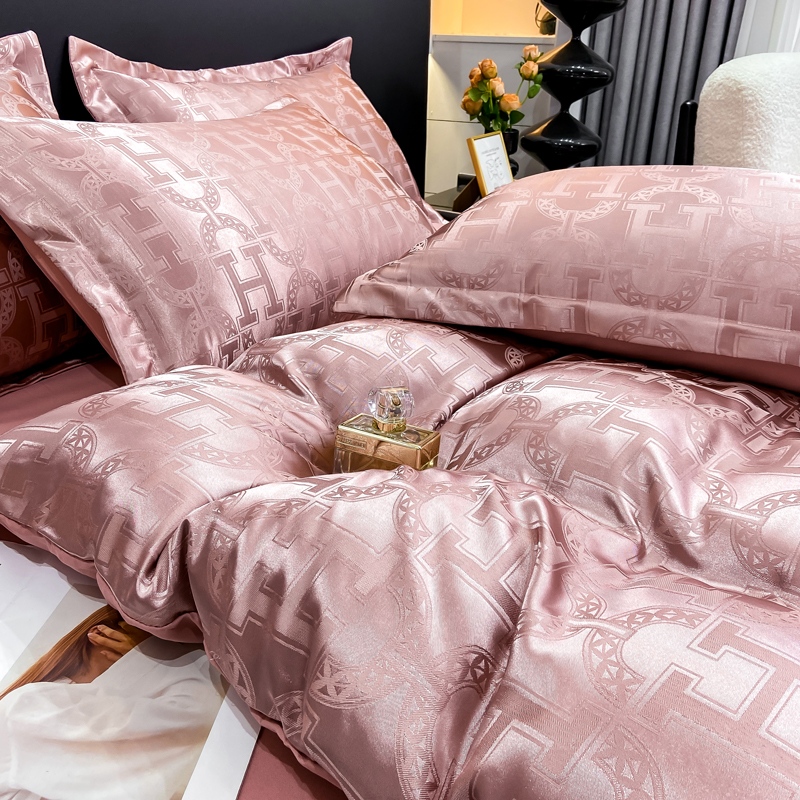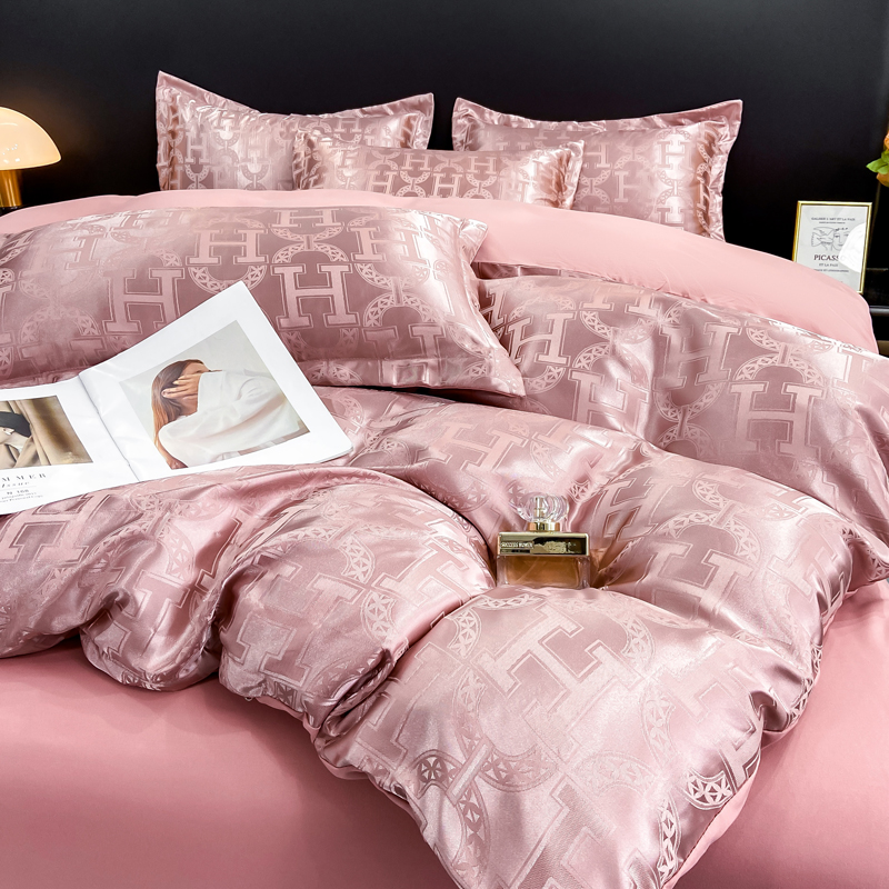 (总)莱欧纳家纺 2025新款提花夏被四件套,豆沙,灰色,香槟,紫色