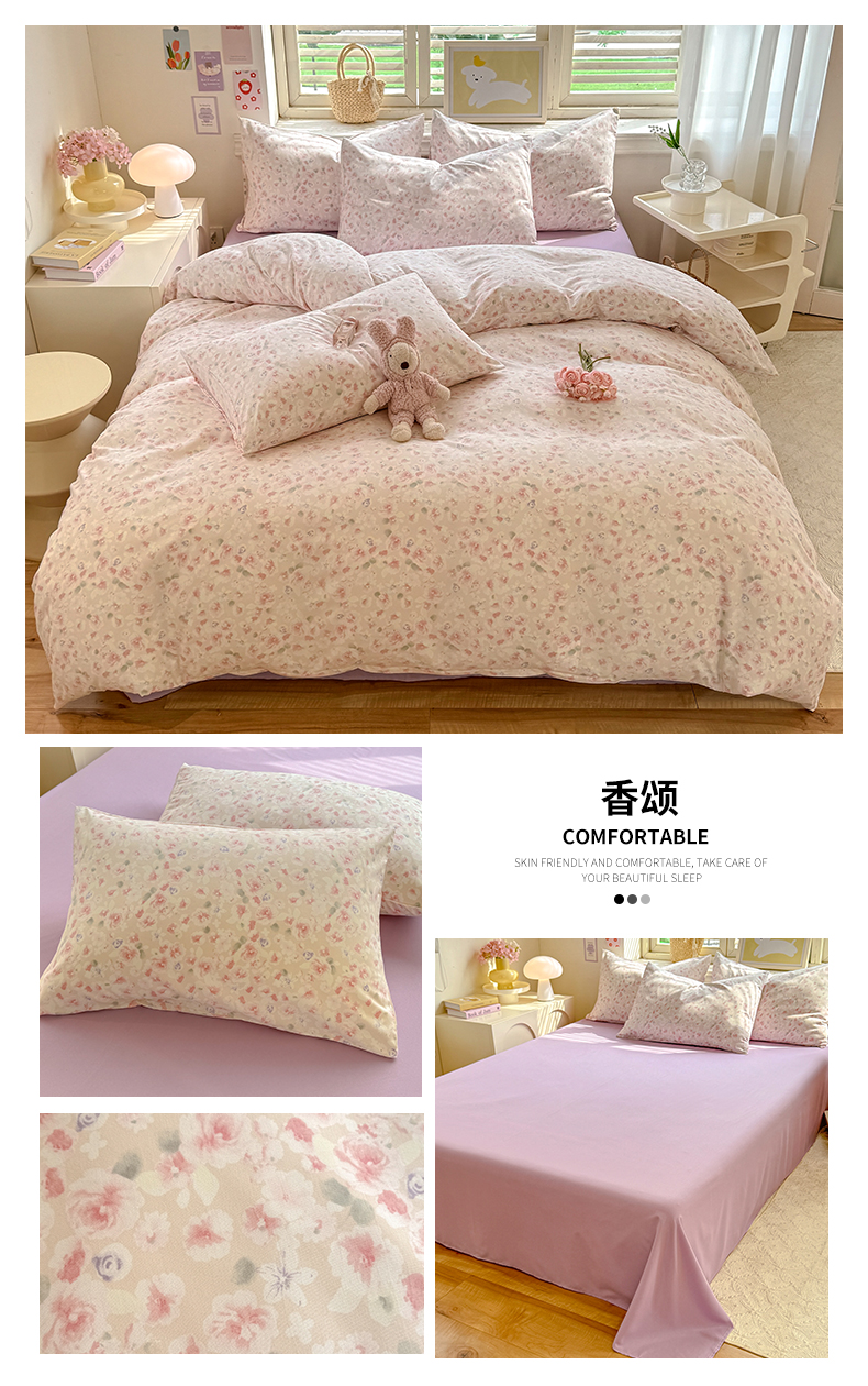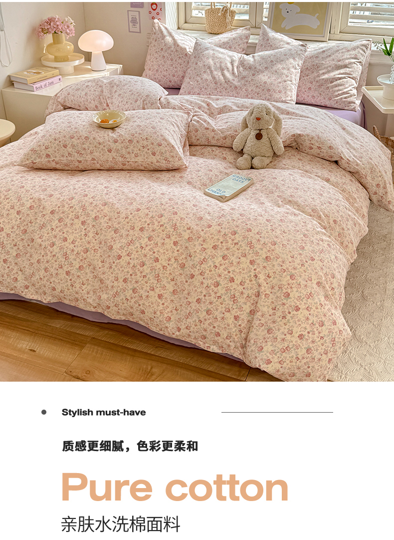 当前位置: 91家纺网 > 商品网购 > 床品套件 > 四件套 > 水洗棉四件套 > 多品家纺 2025春夏新款超柔云感水洗棉四件套 春风觅影