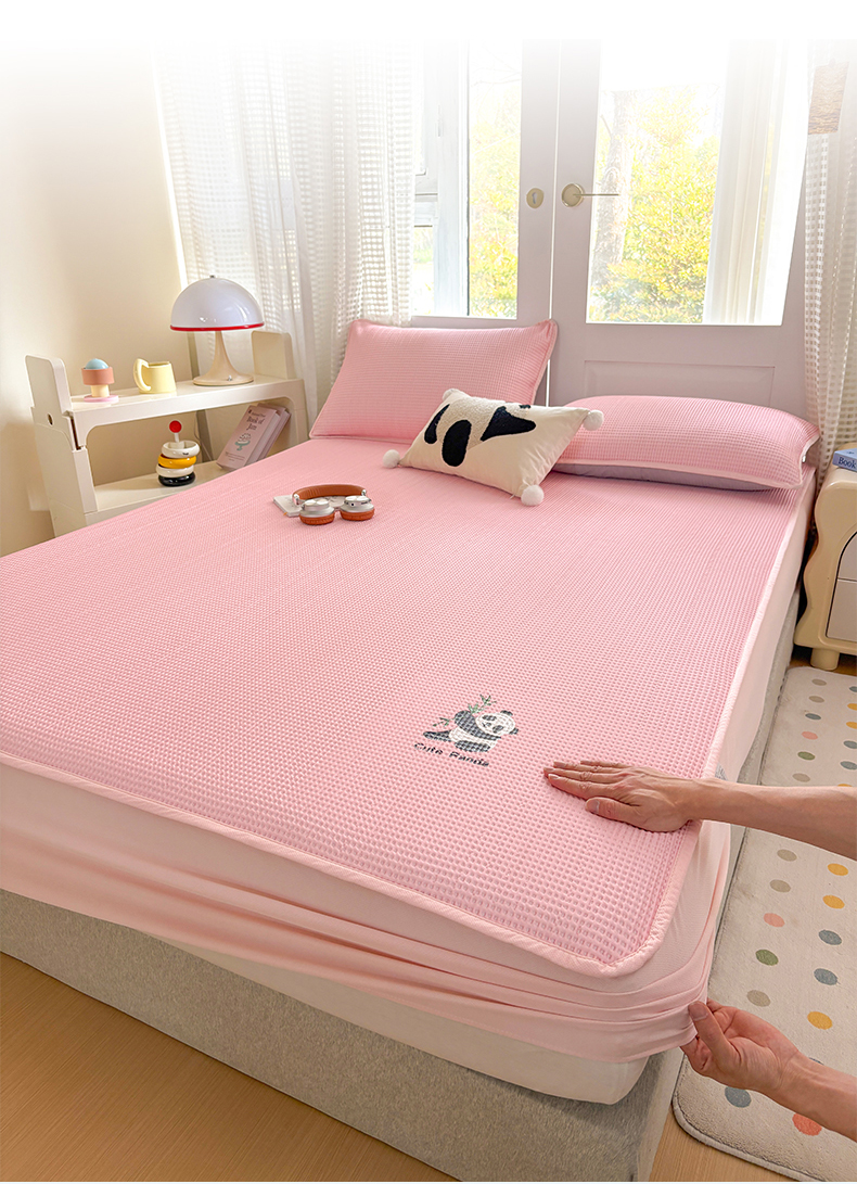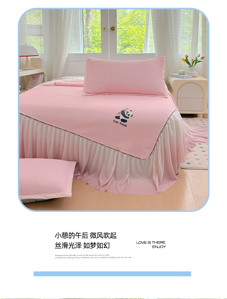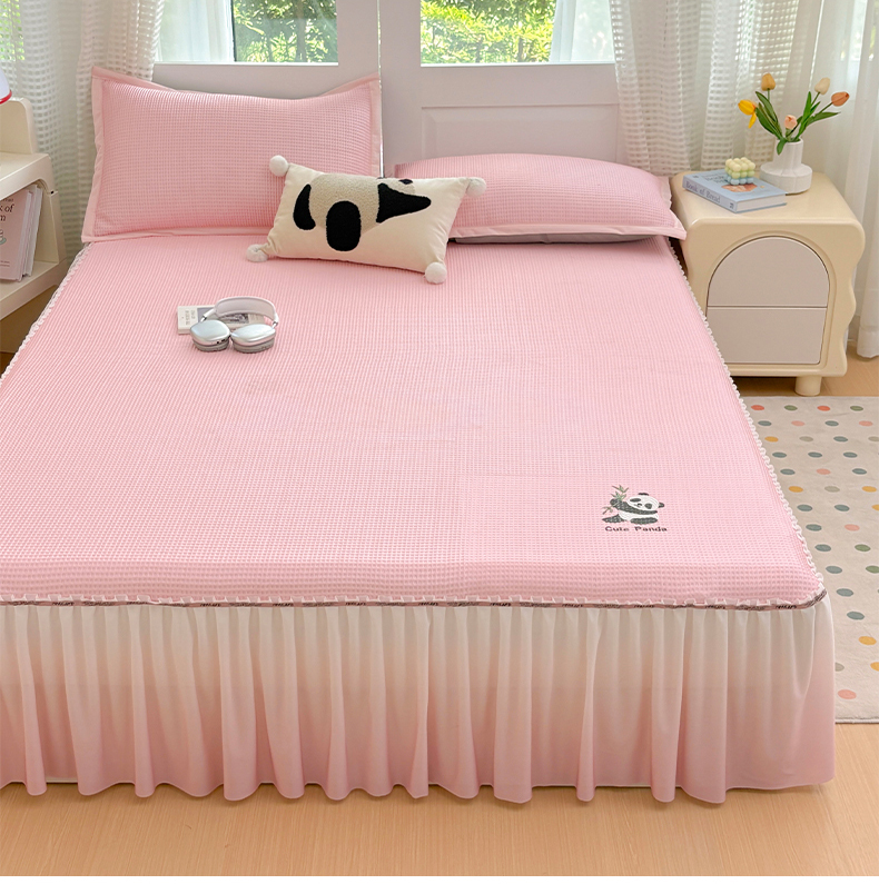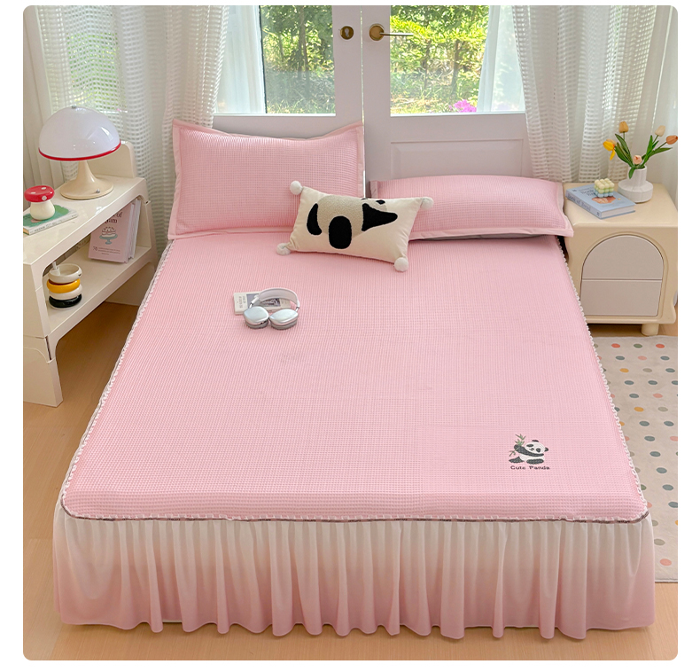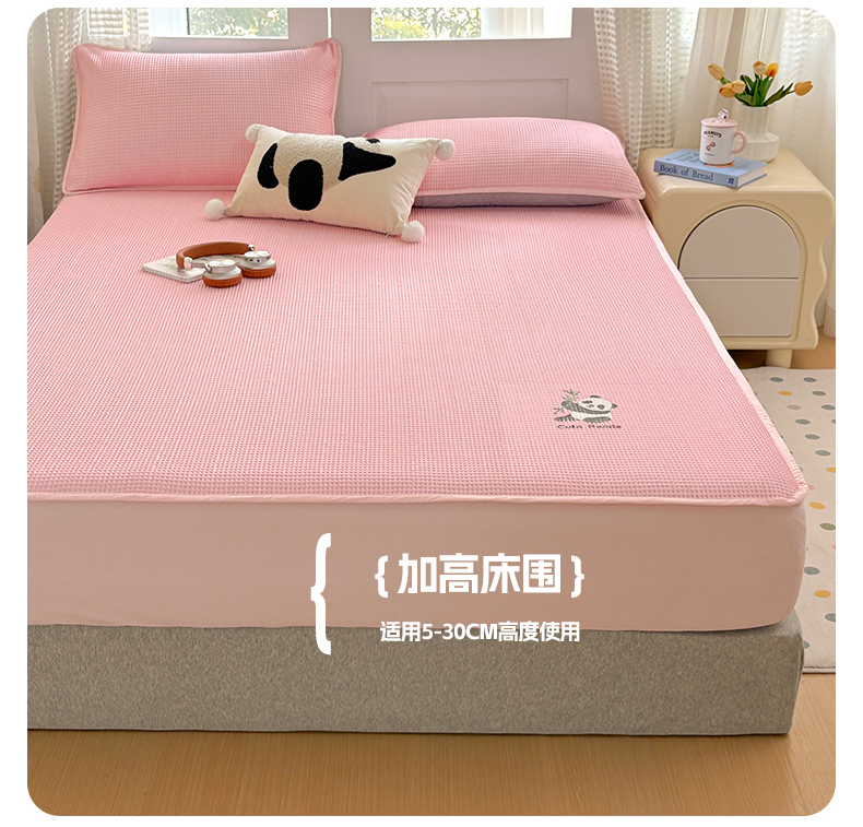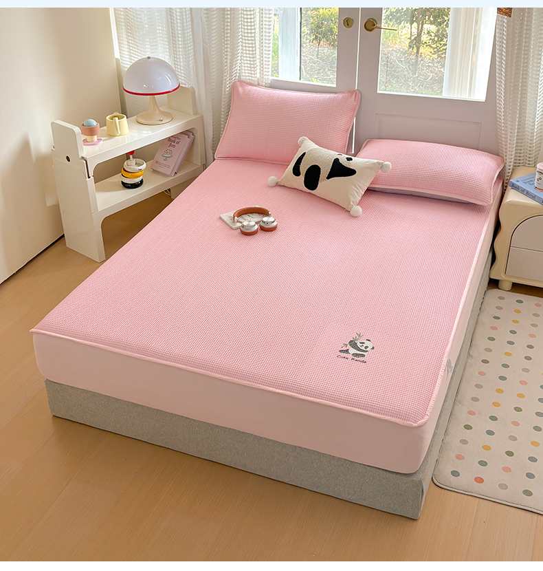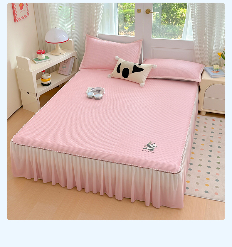 宜派家纺 2025新款高分子凉感丝床裙凉席三件套系列 可爱熊-粉 床笠款