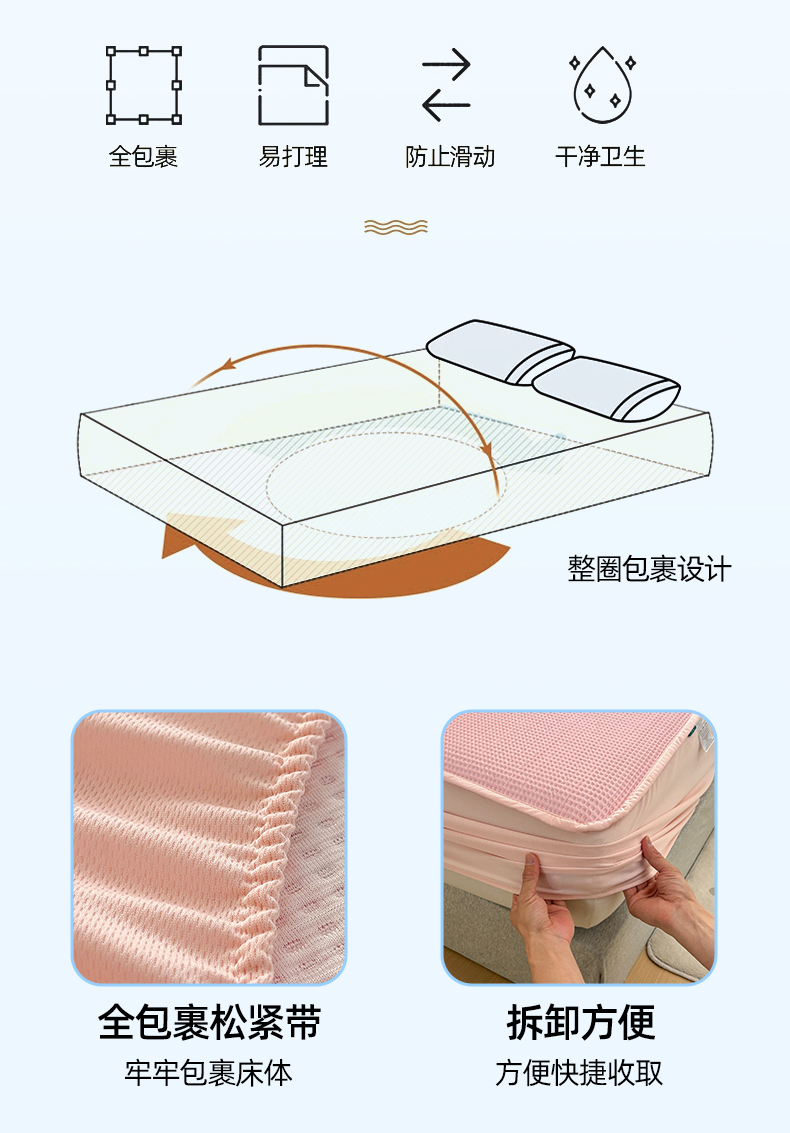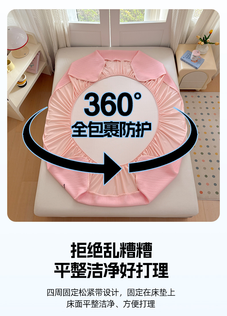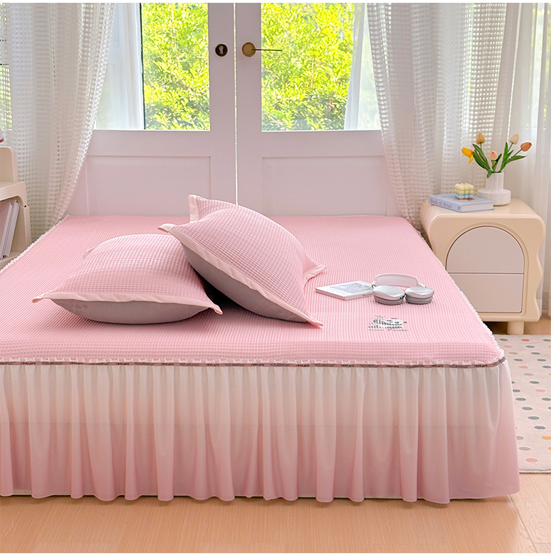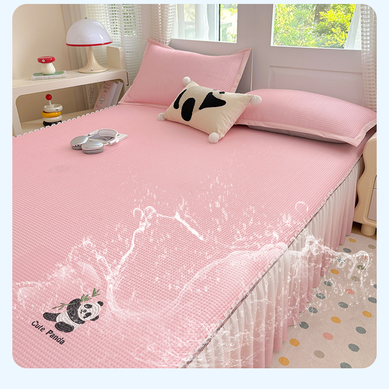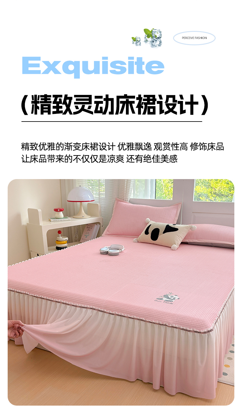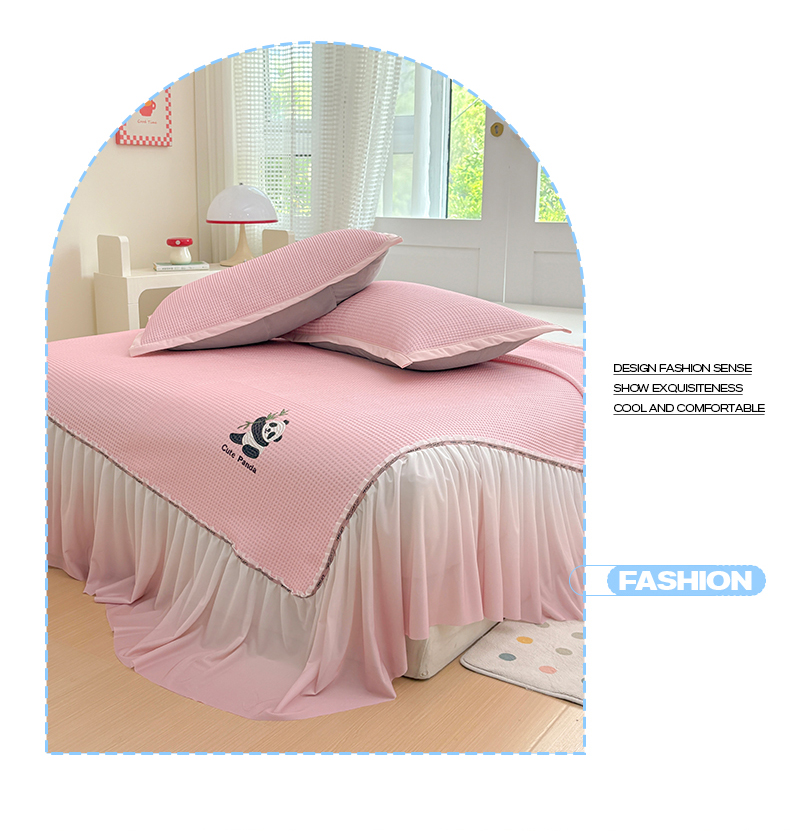 宜派家纺 2025新款高分子凉感丝床裙凉席三件套系列 可爱熊-粉 床笠款