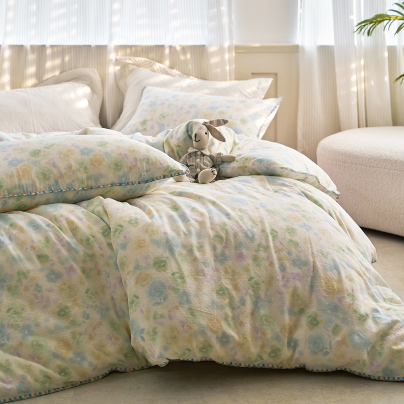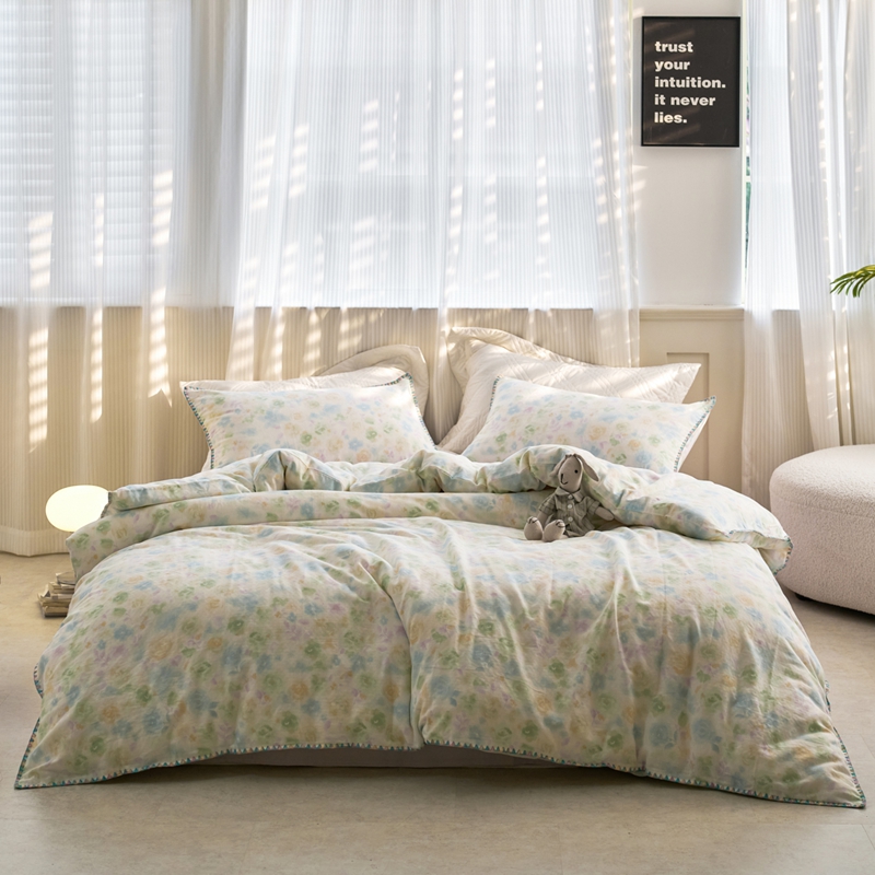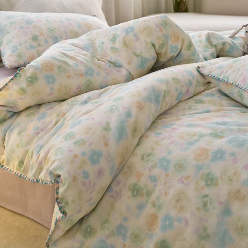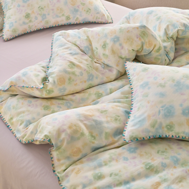 洋铭区(原狠狠爱) 2025新款全棉彩边双层四件套 仙花朵朵