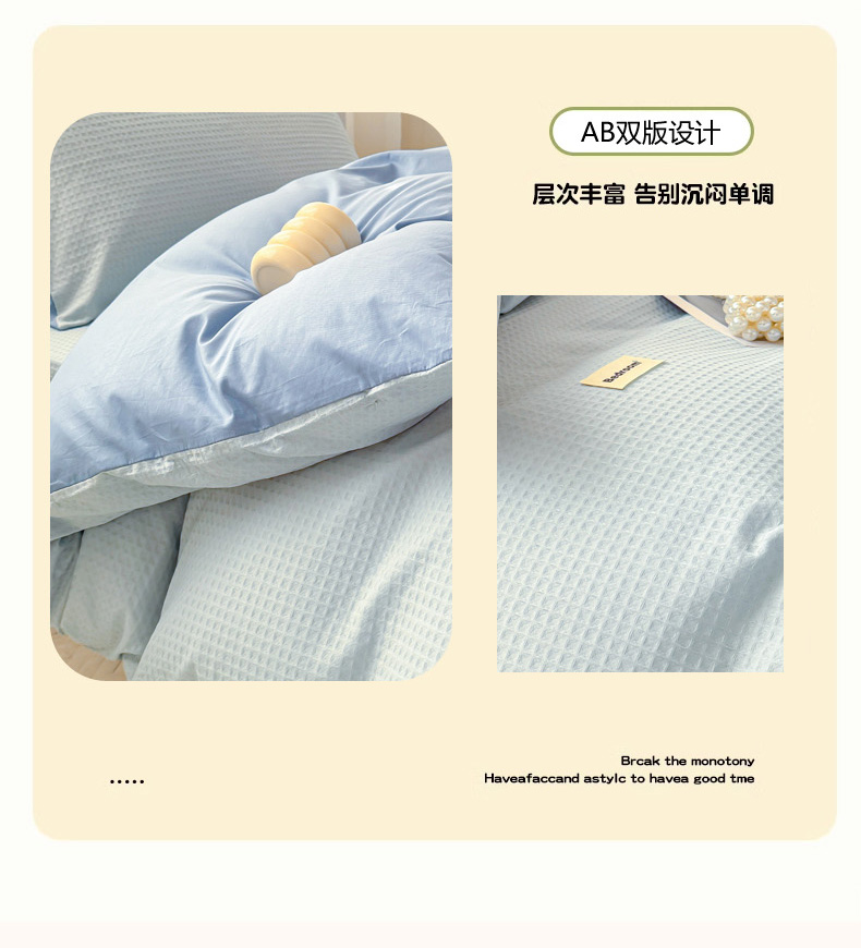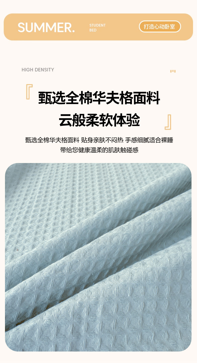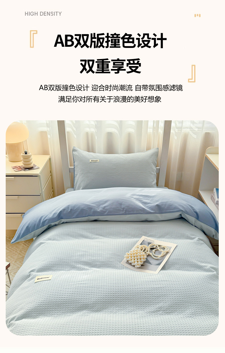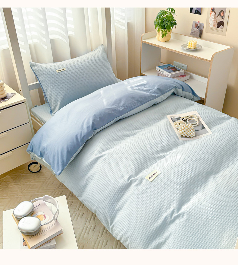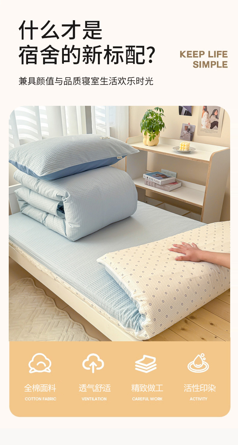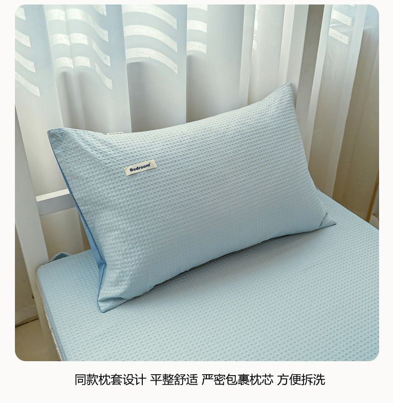 当前位置: 91家纺网 > 商品网购 > 床品套件 > 四件套 > 全棉普通四件套 > 眠博士 2025新款全棉纯棉华夫格学生床床垫套三件套四件套 华夫格床垫套 套件 雾蓝色