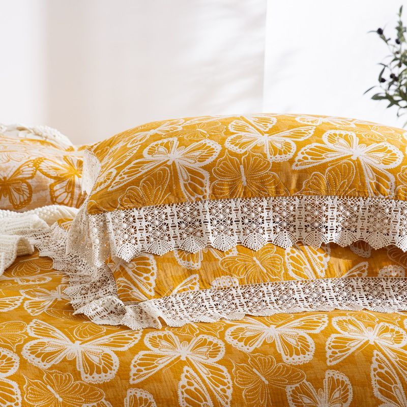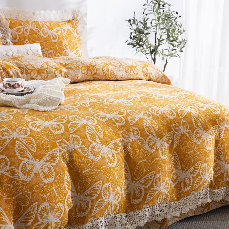 商品名称:(总)仰望棉麻双层纱供应链 2025新款梦蝶AA版拉链花边款全棉色织大提花双层纱四件套