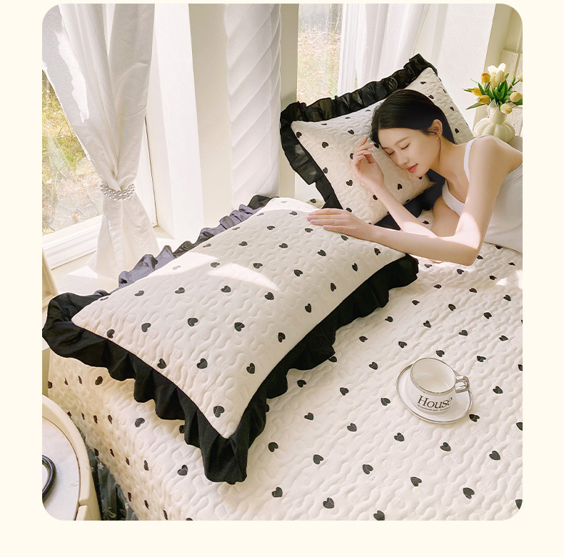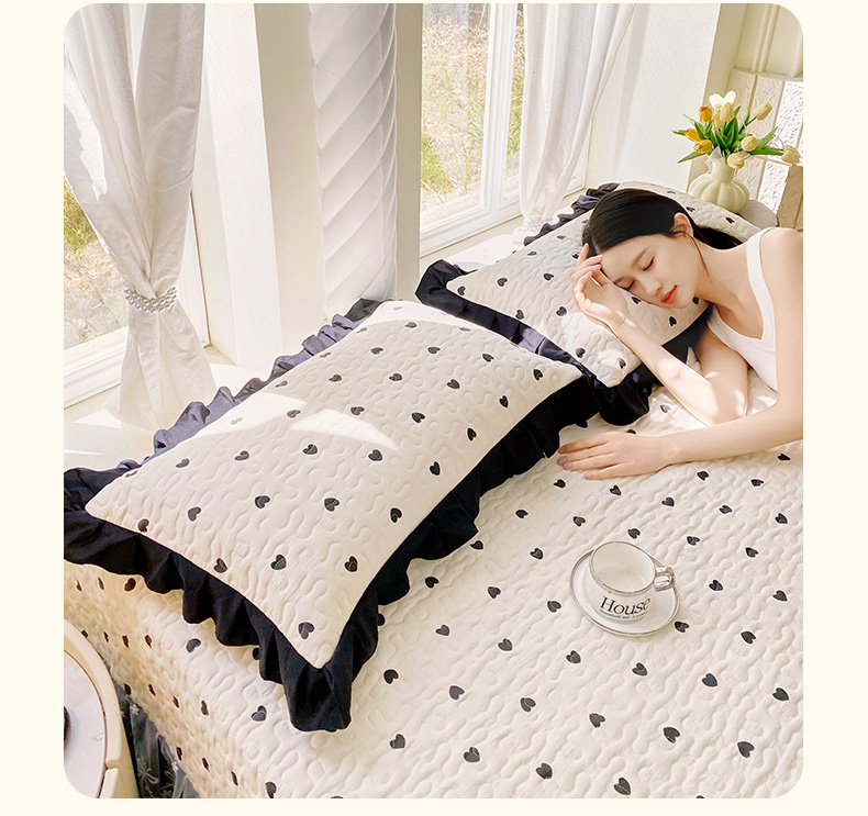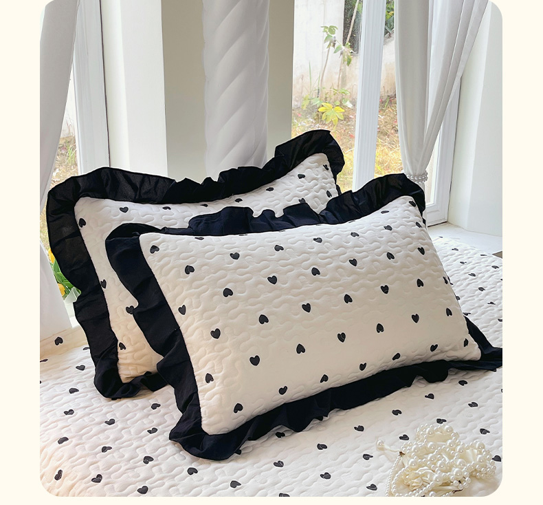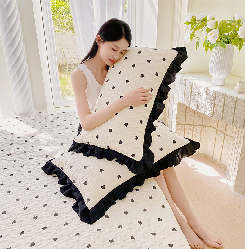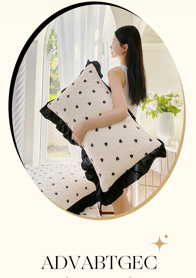 雨彤家纺2025新款赫本风水洗棉夹棉花边枕套 爱心