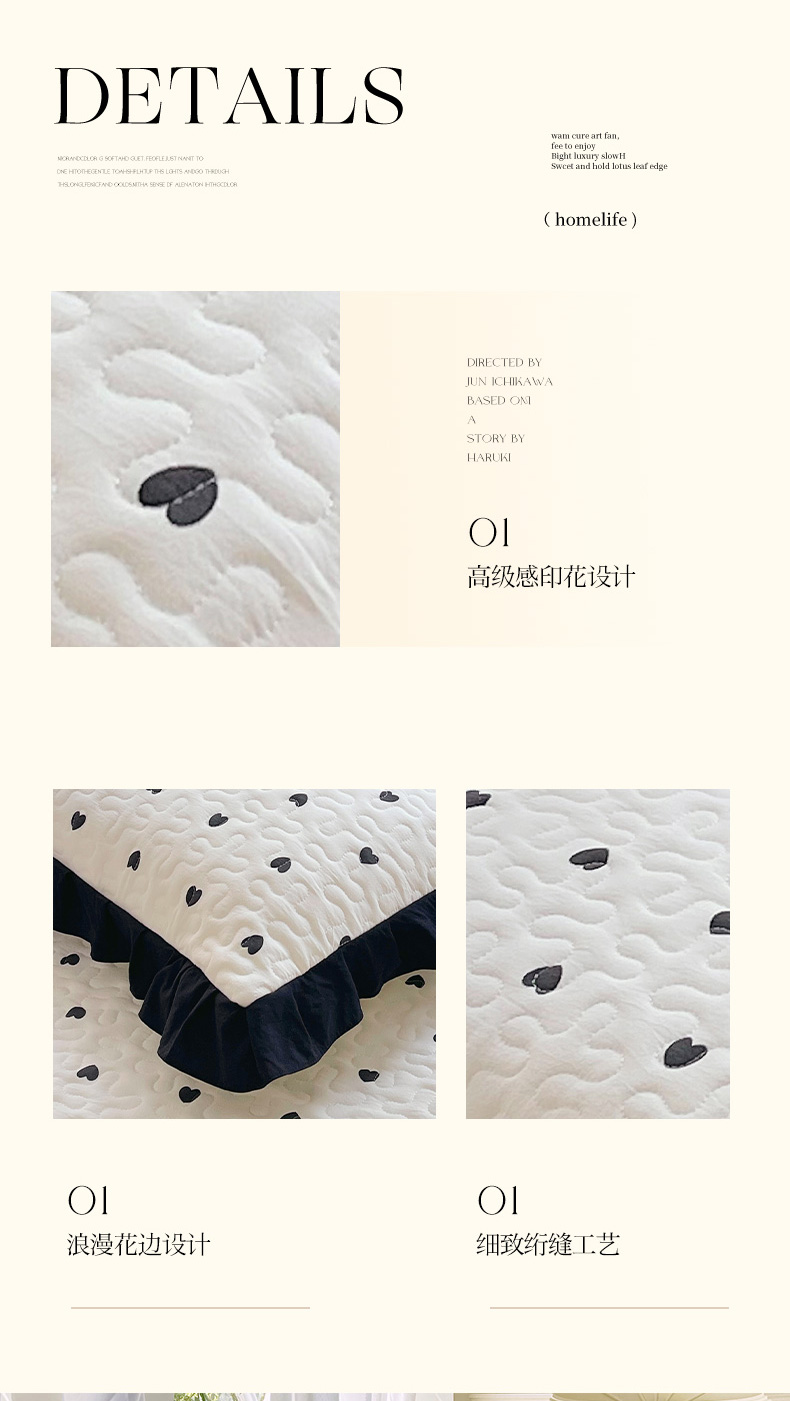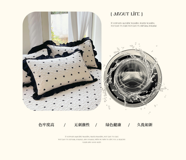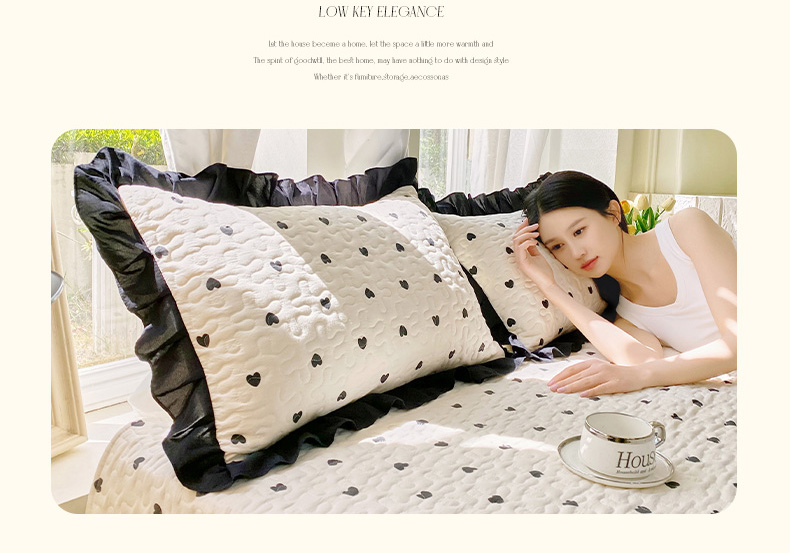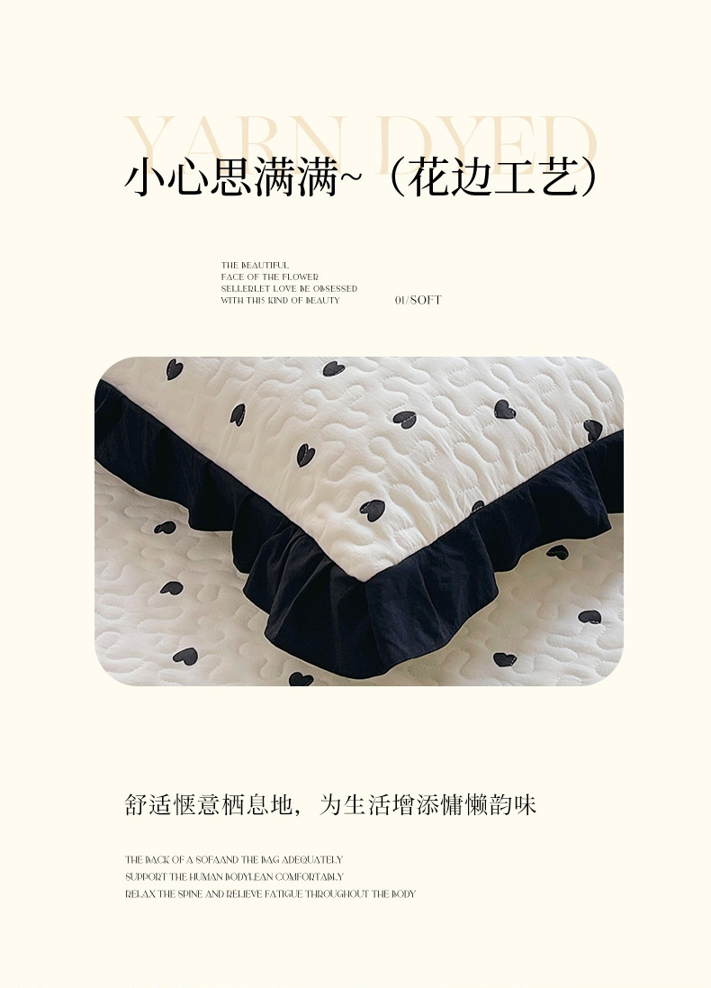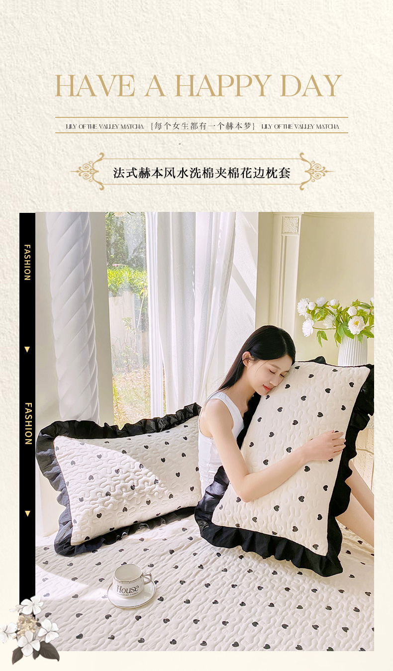 商品名称:雨彤家纺2025新款赫本风水洗棉夹棉花边枕套 爱心