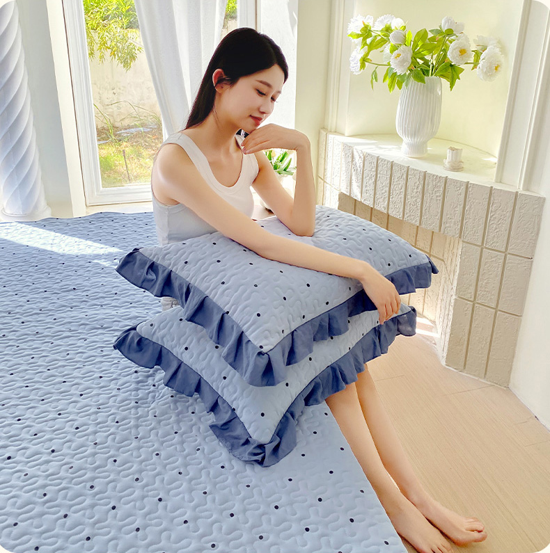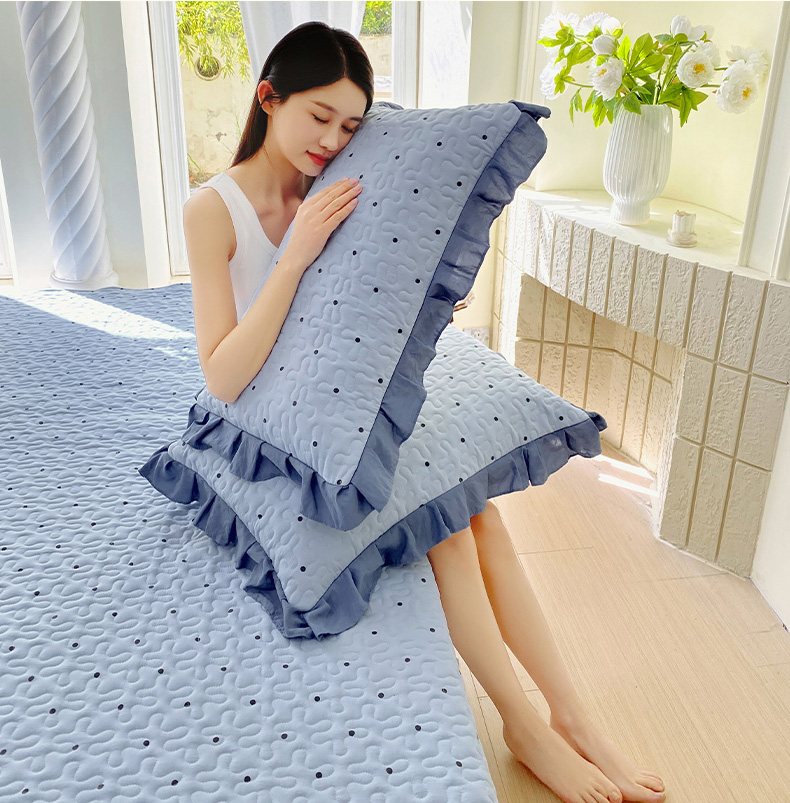 雨彤家纺2025新款赫本风水洗棉夹棉花边枕套 芋艿波波-兰