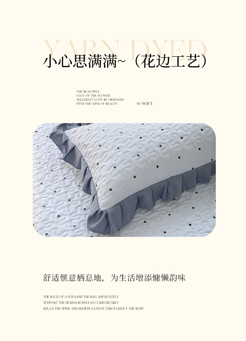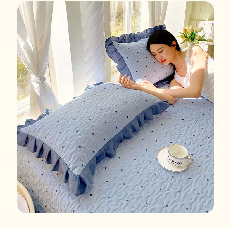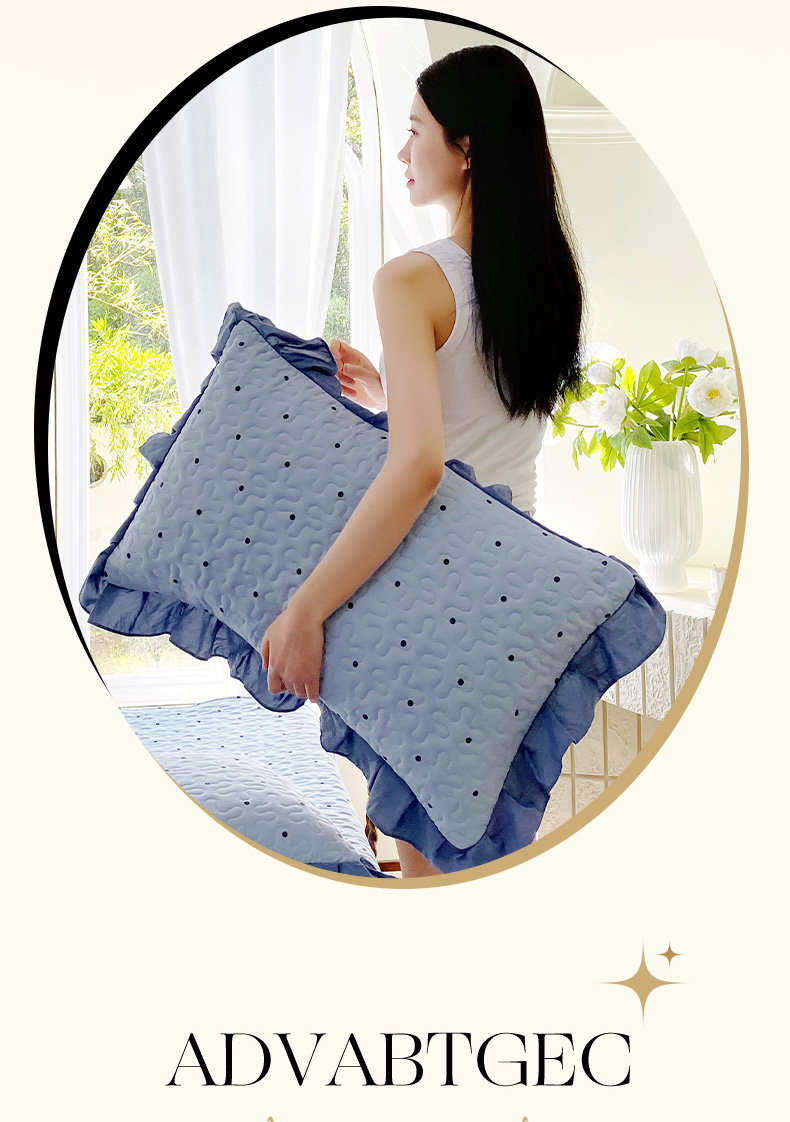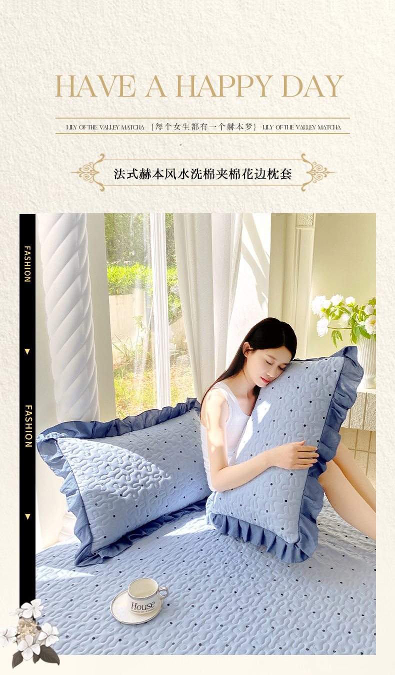 商品名称:雨彤家纺2025新款赫本风水洗棉夹棉花边枕套 芋艿波波-兰