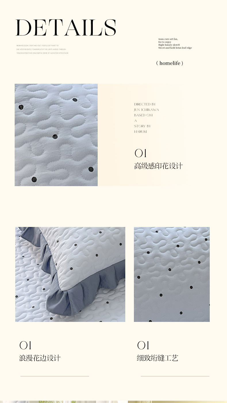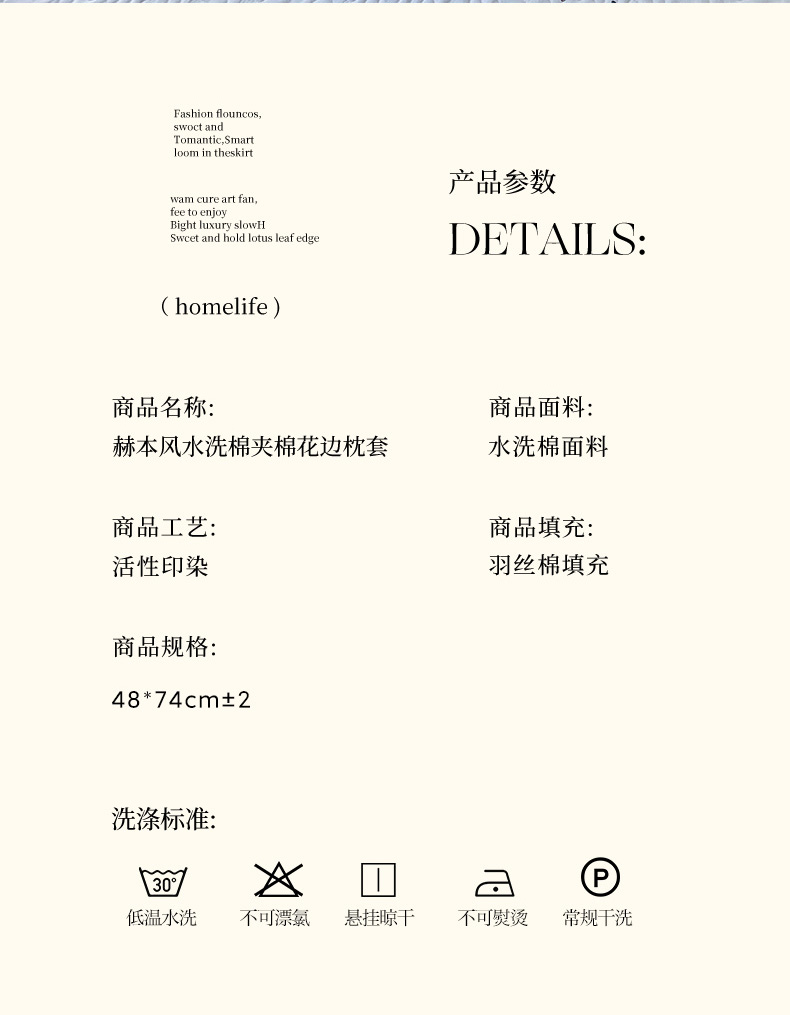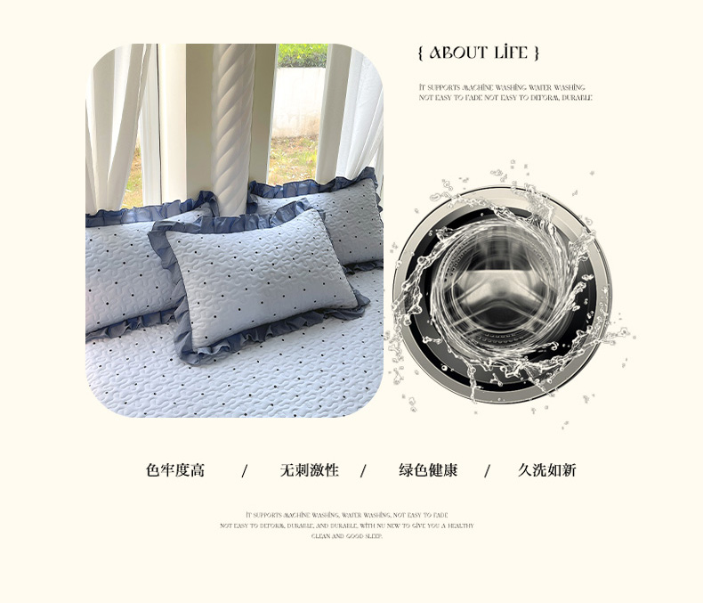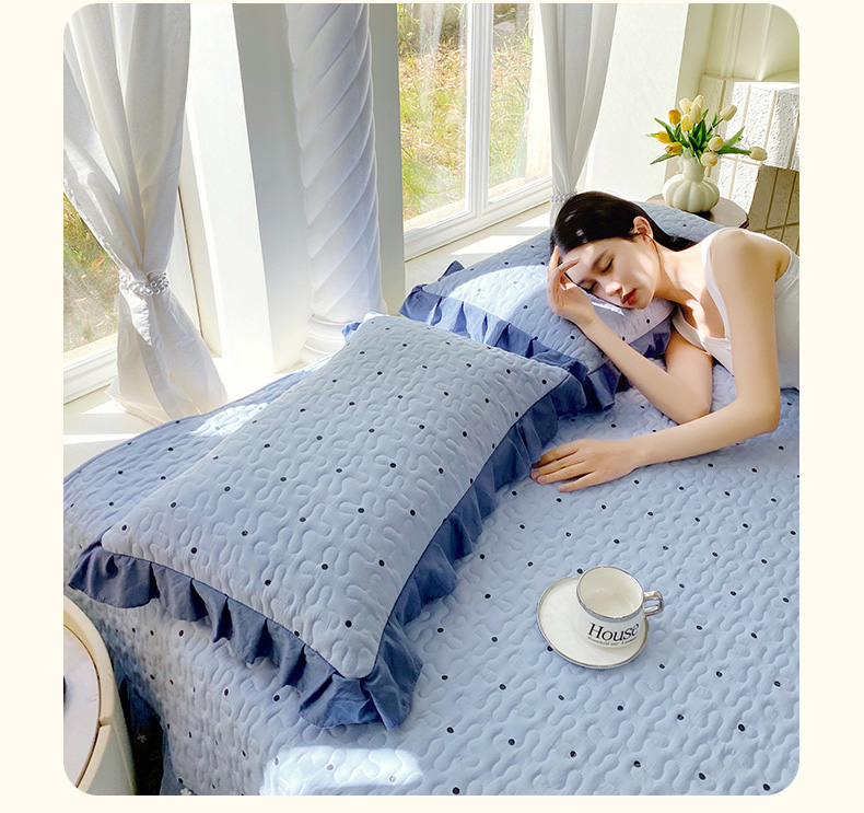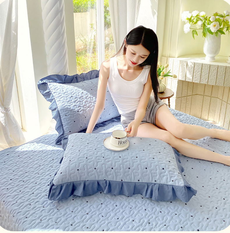 商品名称:雨彤家纺2025新款赫本风水洗棉夹棉花边枕套 芋艿波波-兰
