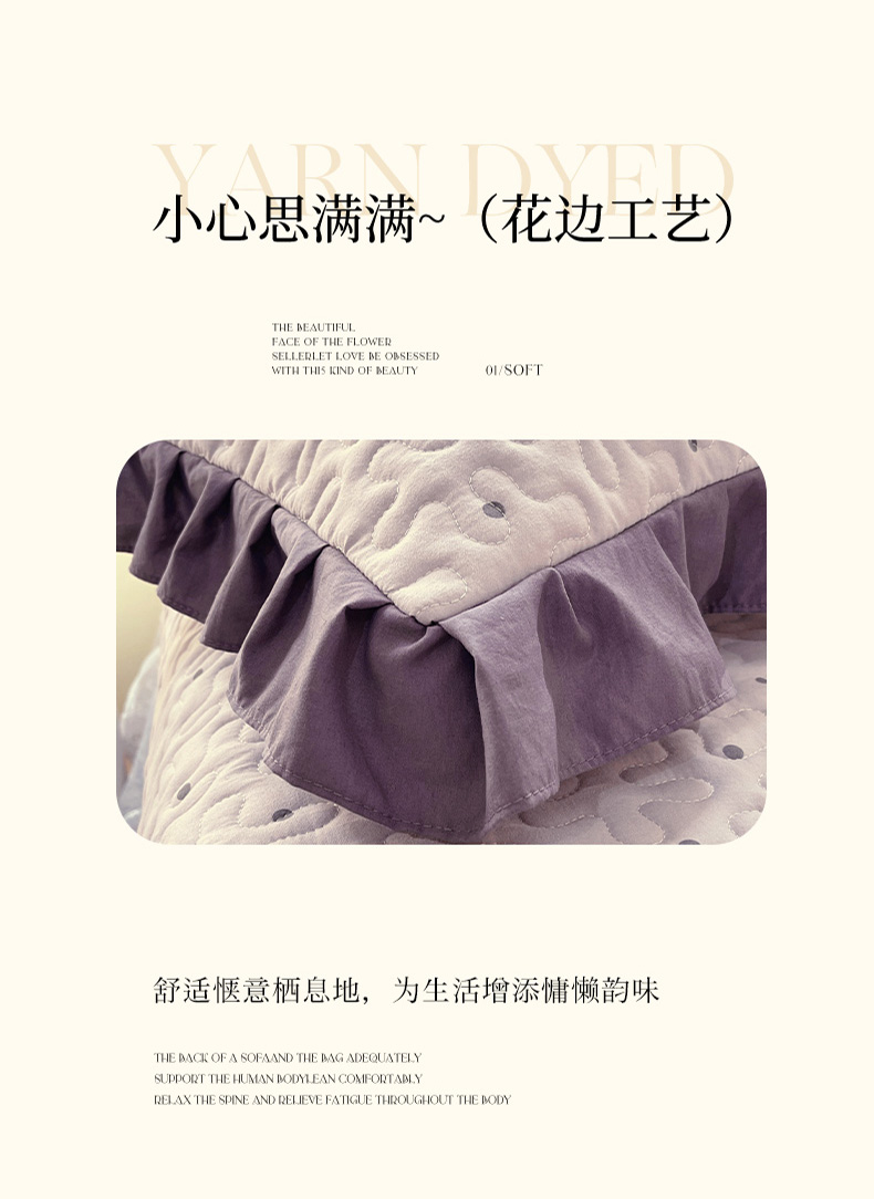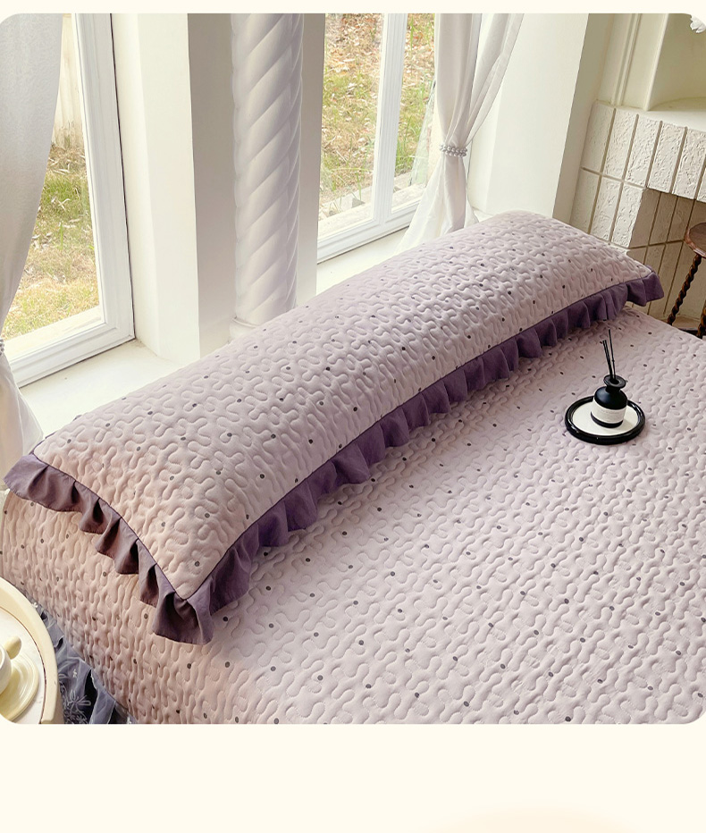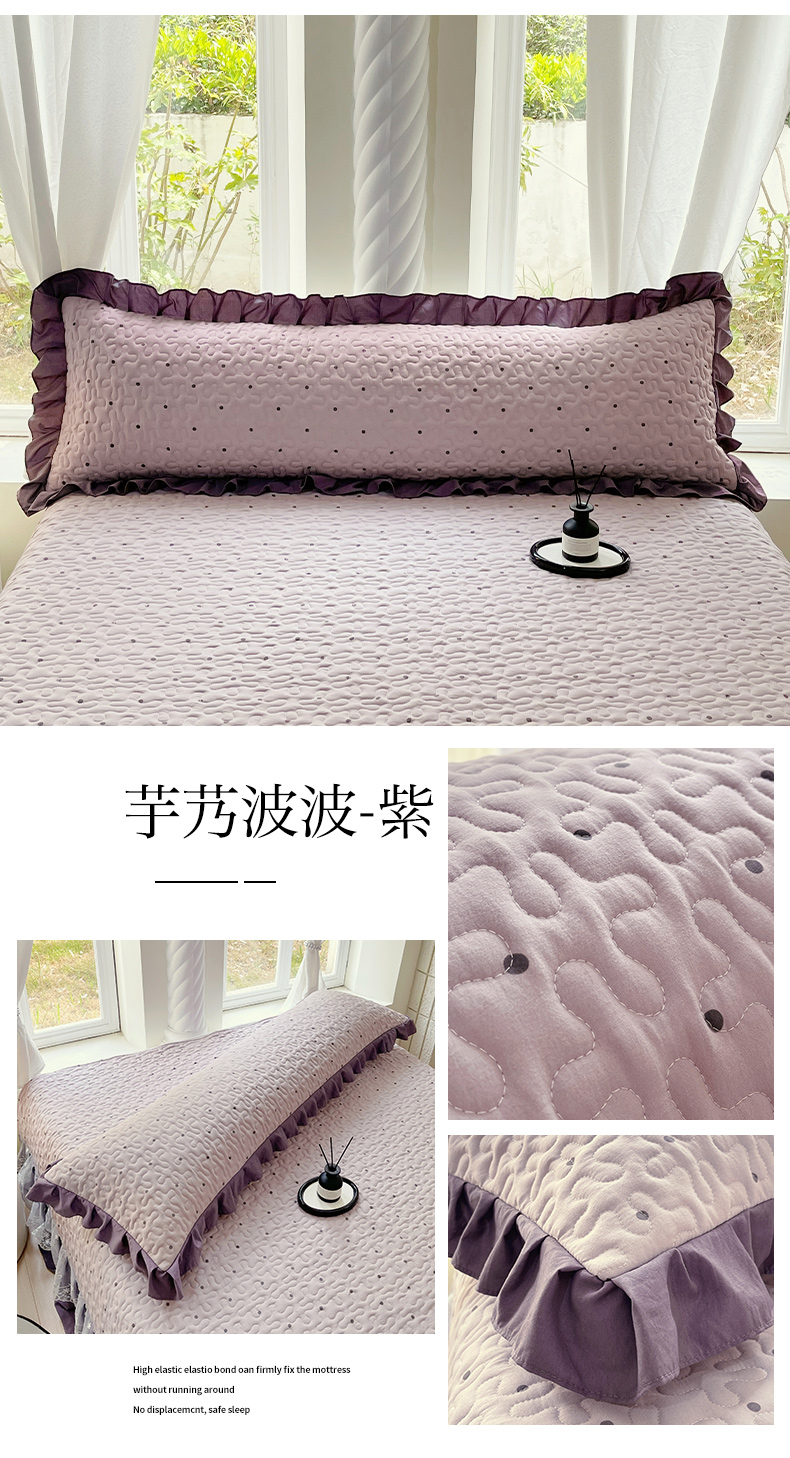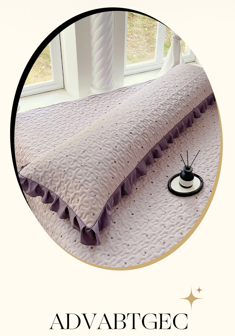 商品名称:雨彤家纺2025新款赫本风水洗棉花边夹棉枕套双人款 芋艿波波-紫